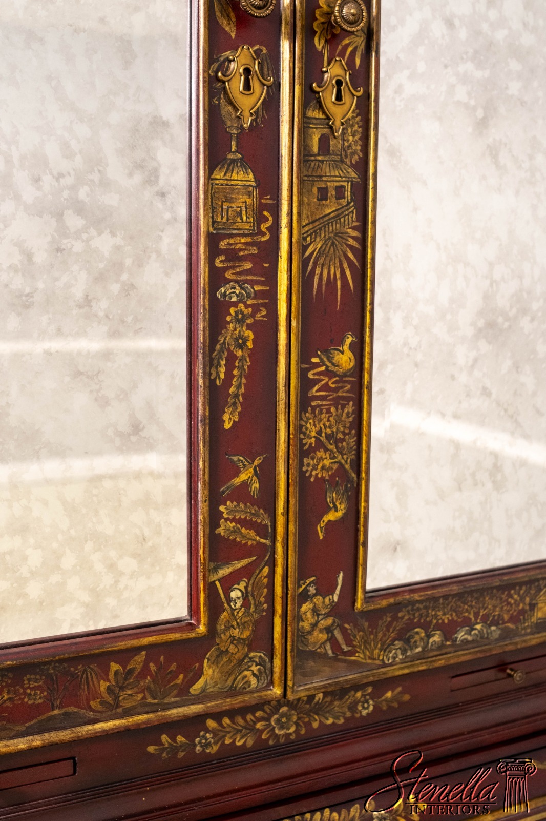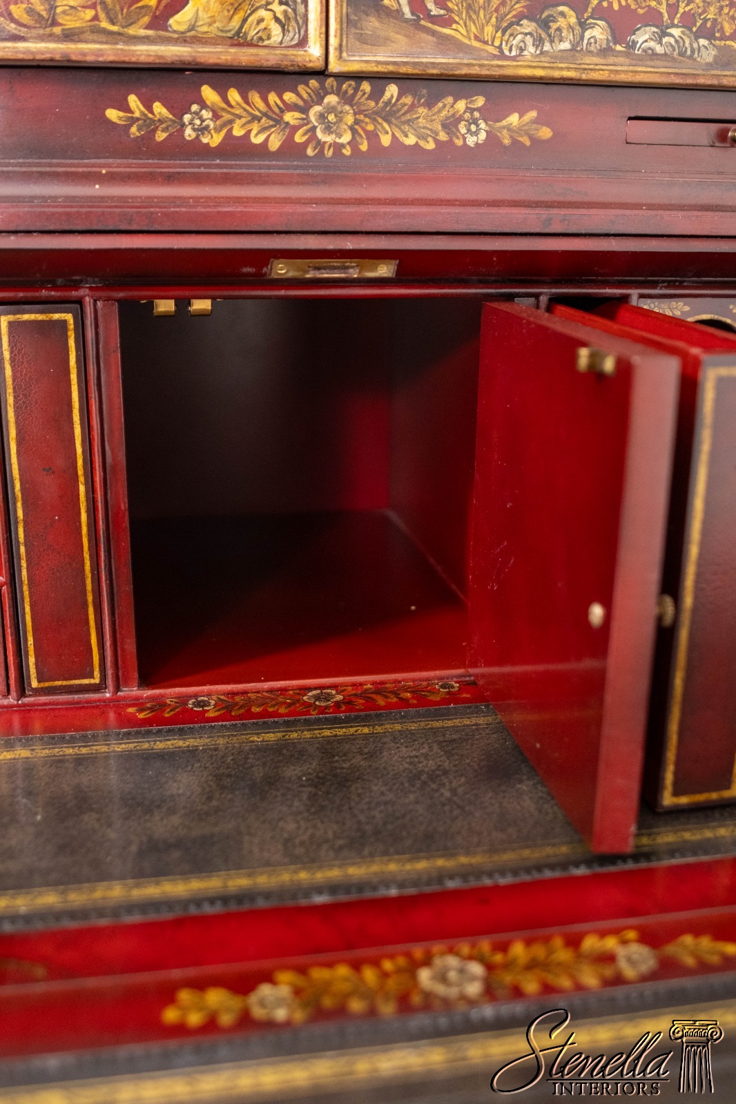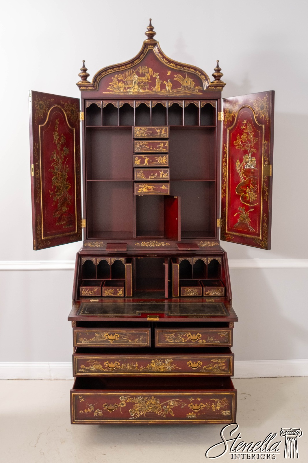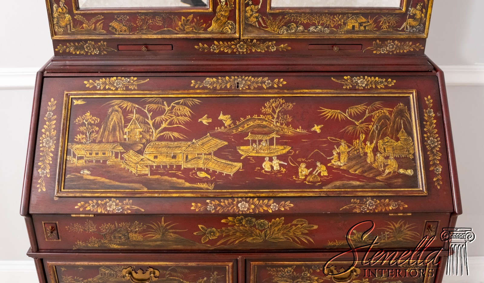 L71325: MAITLAND-SMITH Chinoiserie Decorated Secretary Desk Cabinet