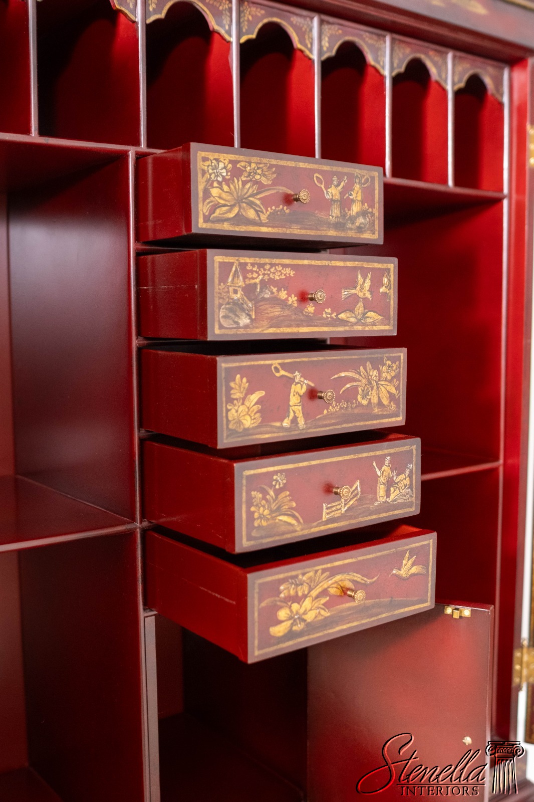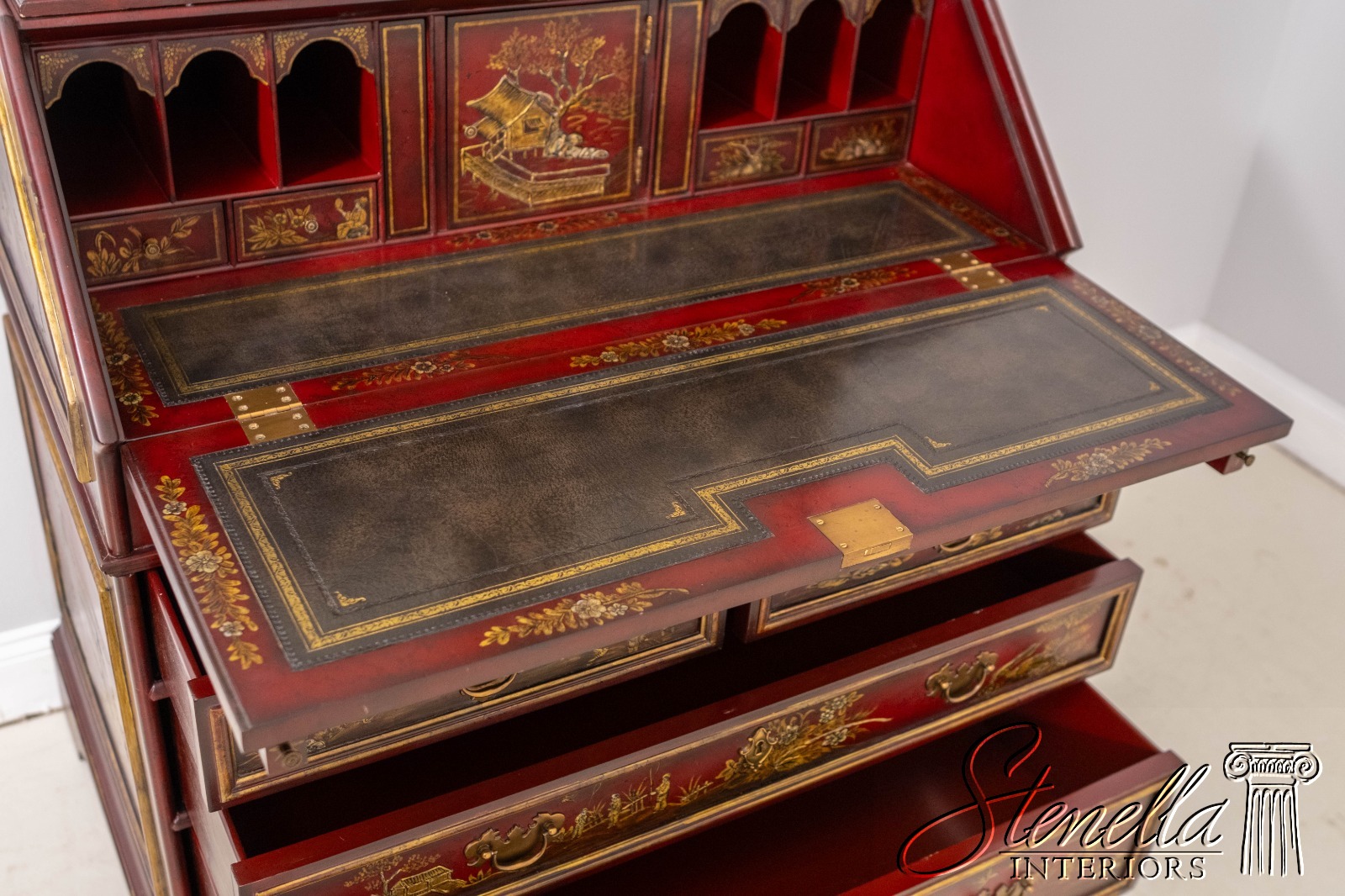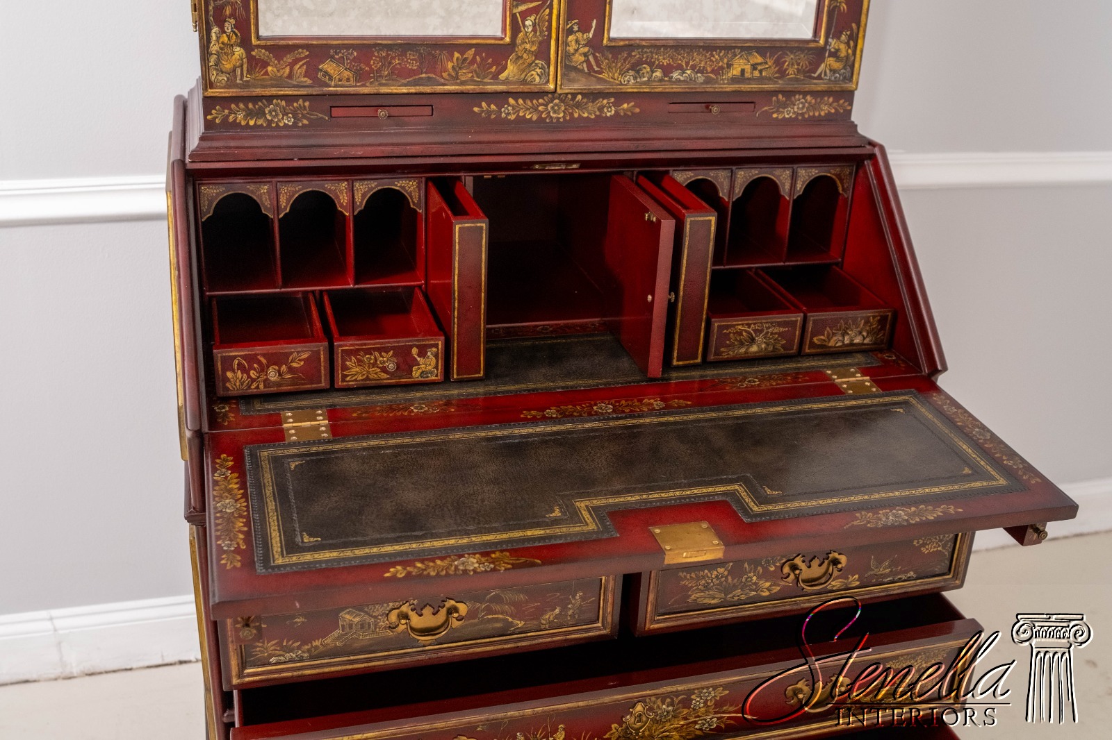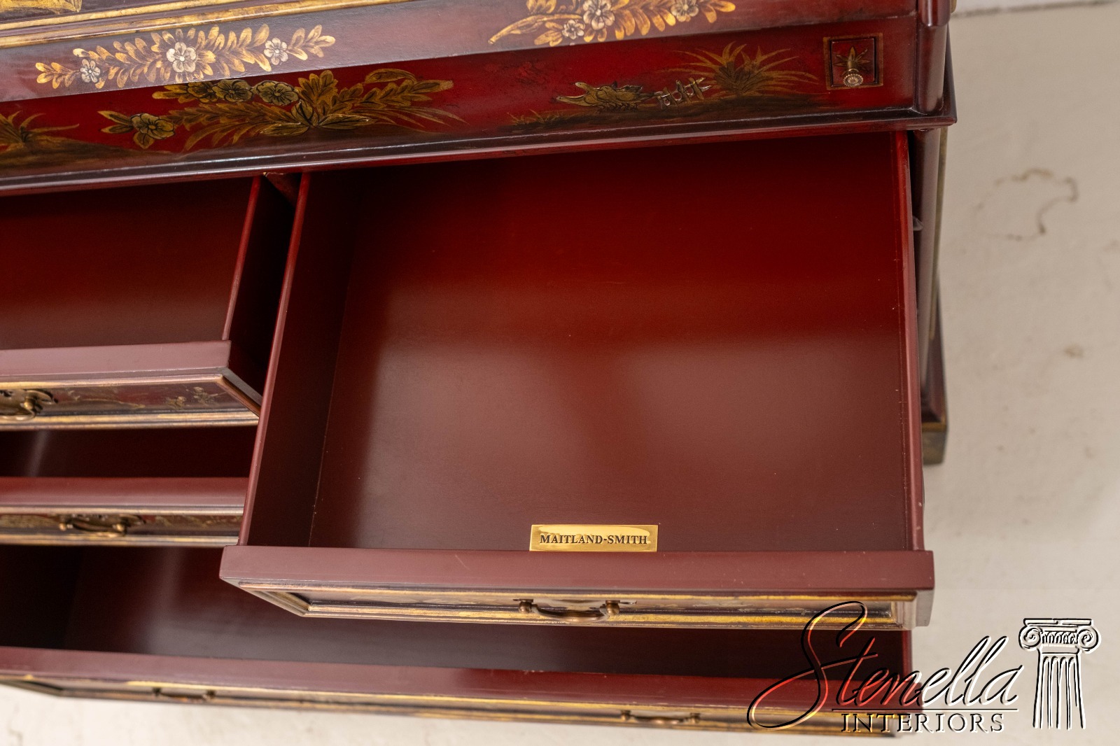 L71325: MAITLAND-SMITH Chinoiserie Decorated Secretary Desk Cabinet