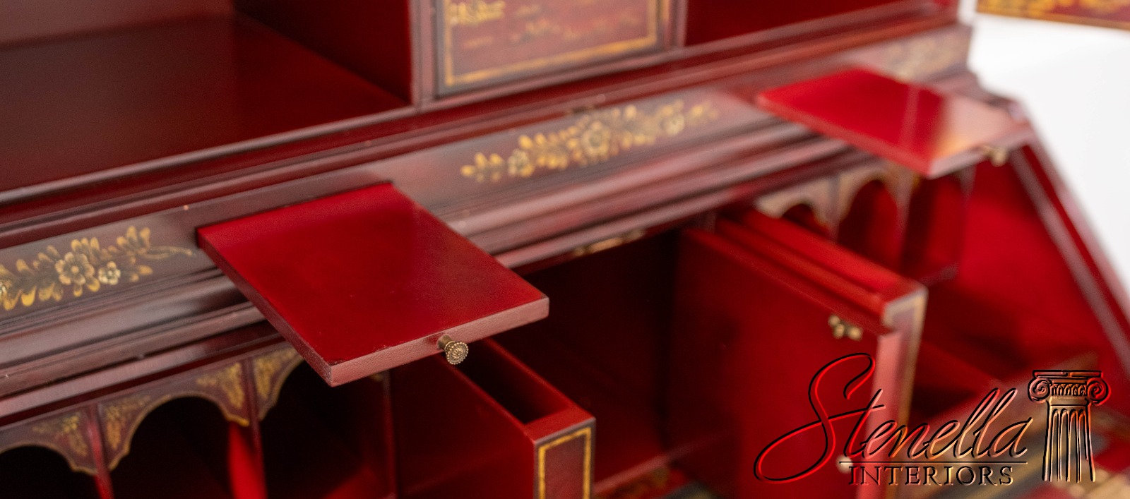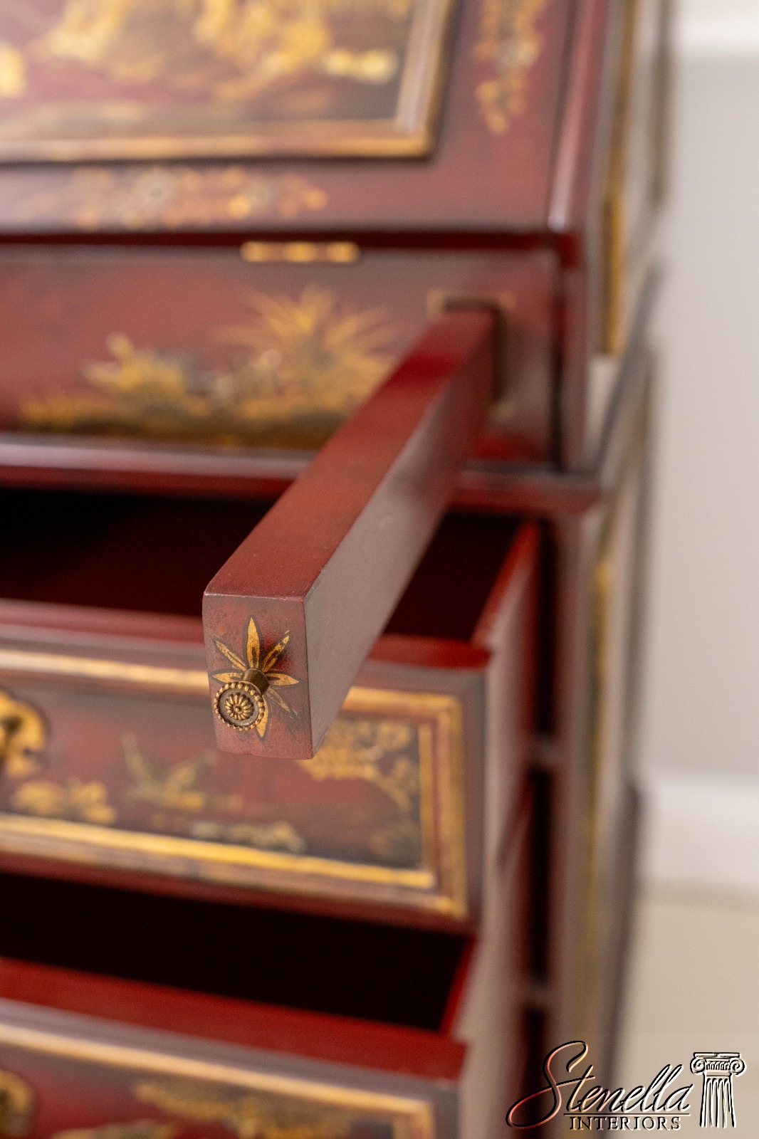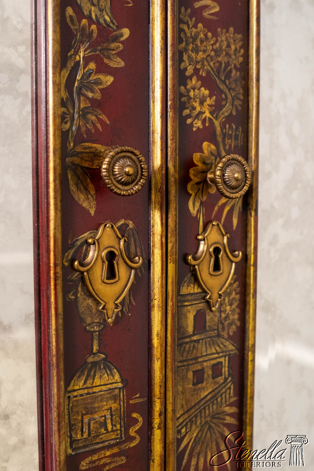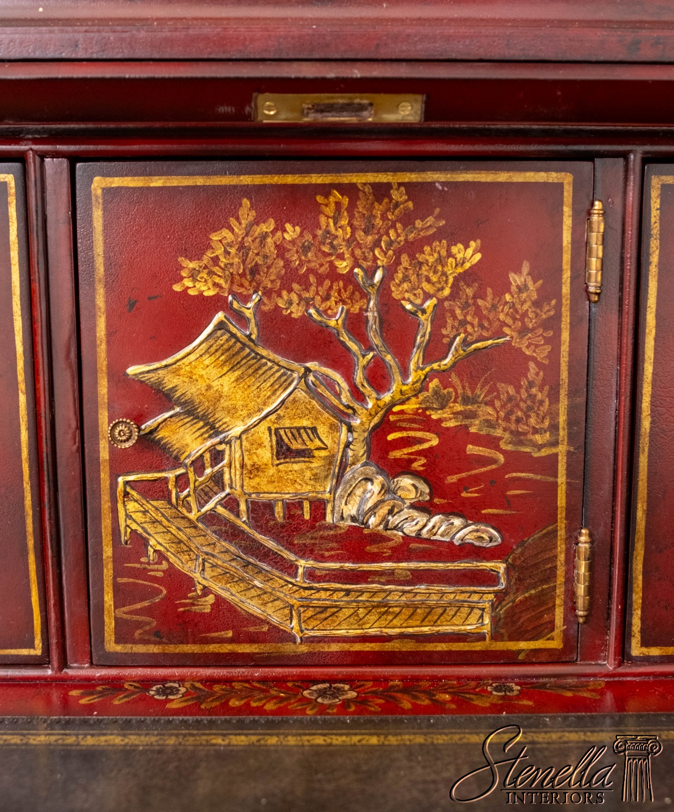 L71325: MAITLAND-SMITH Chinoiserie Decorated Secretary Desk Cabinet