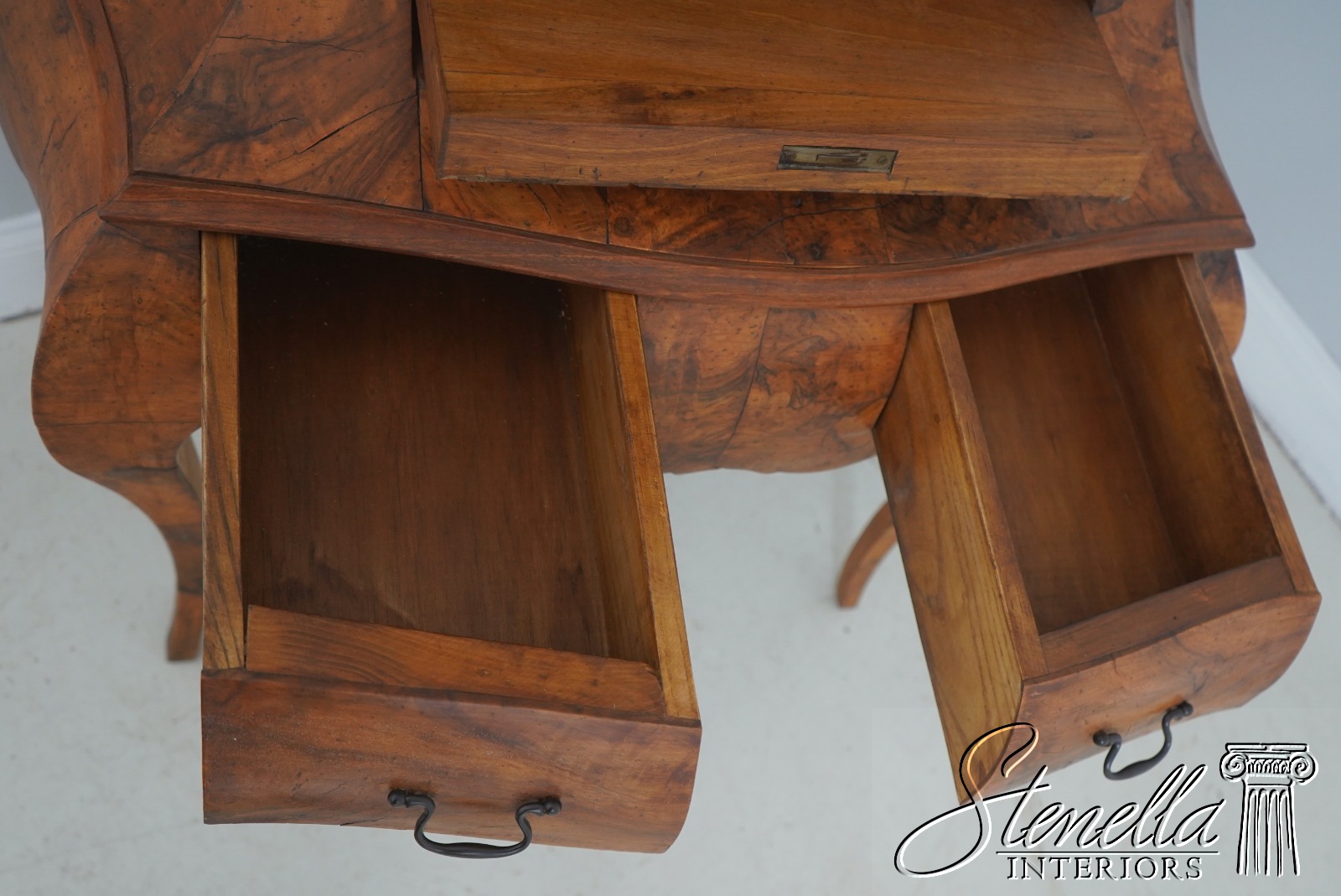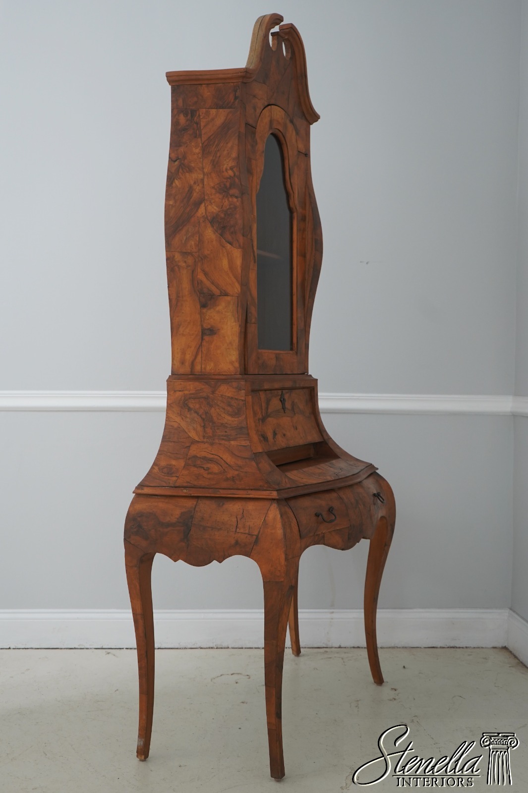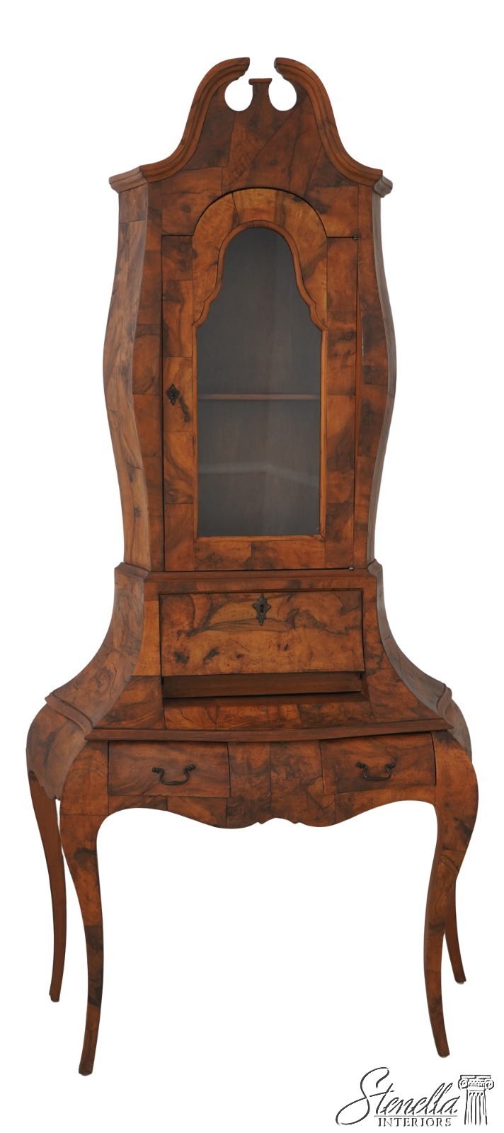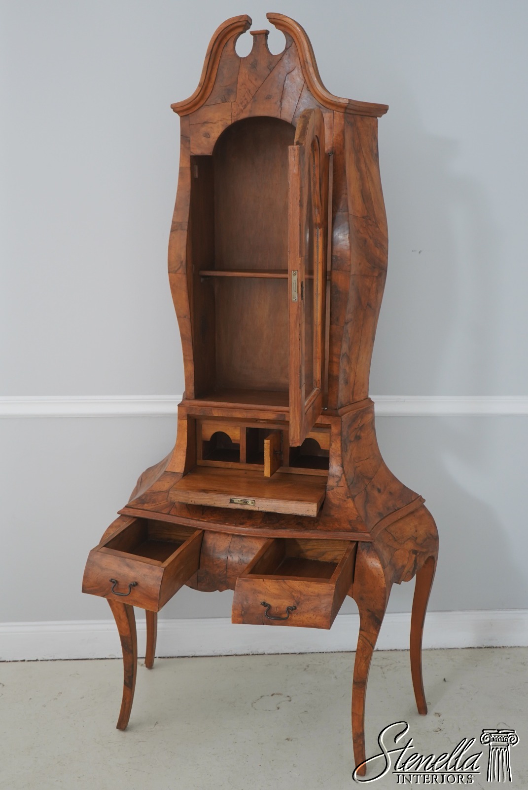L71549: Italian Rococo Style Burl Olivewood Secretary Desk