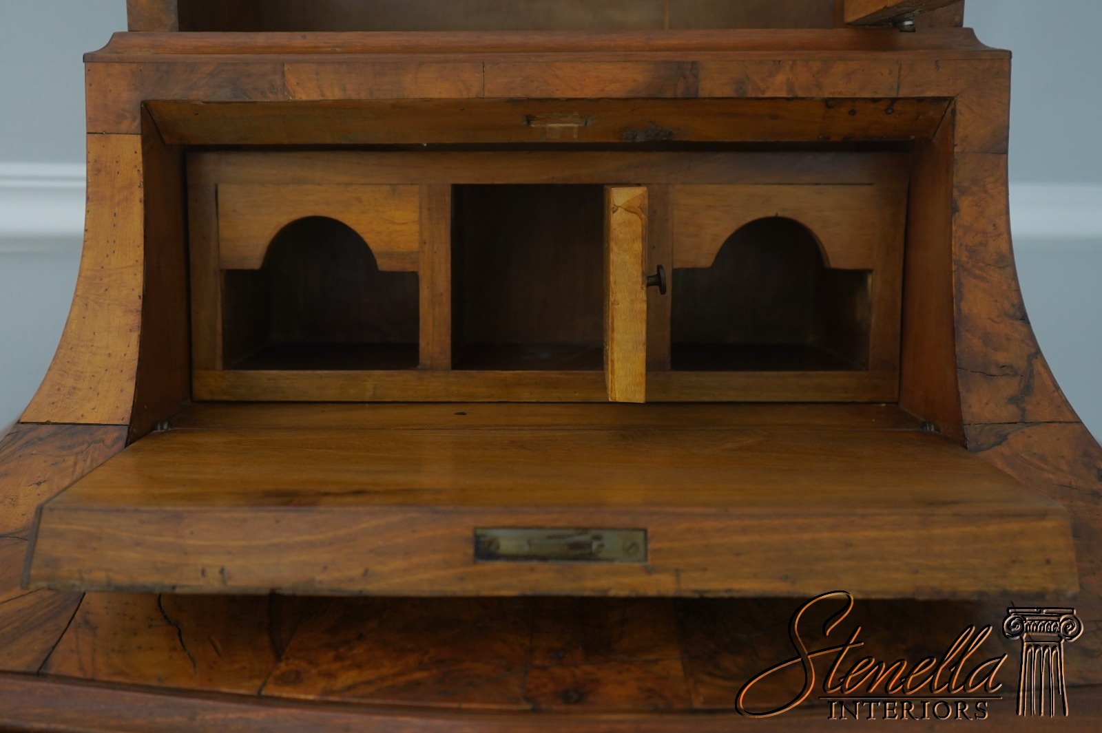 Details: High Quality Construction Stunning Vintage Desk Expected Intentional Normal Distressing To Olivewood Nice Curved Legs & Bombe Case