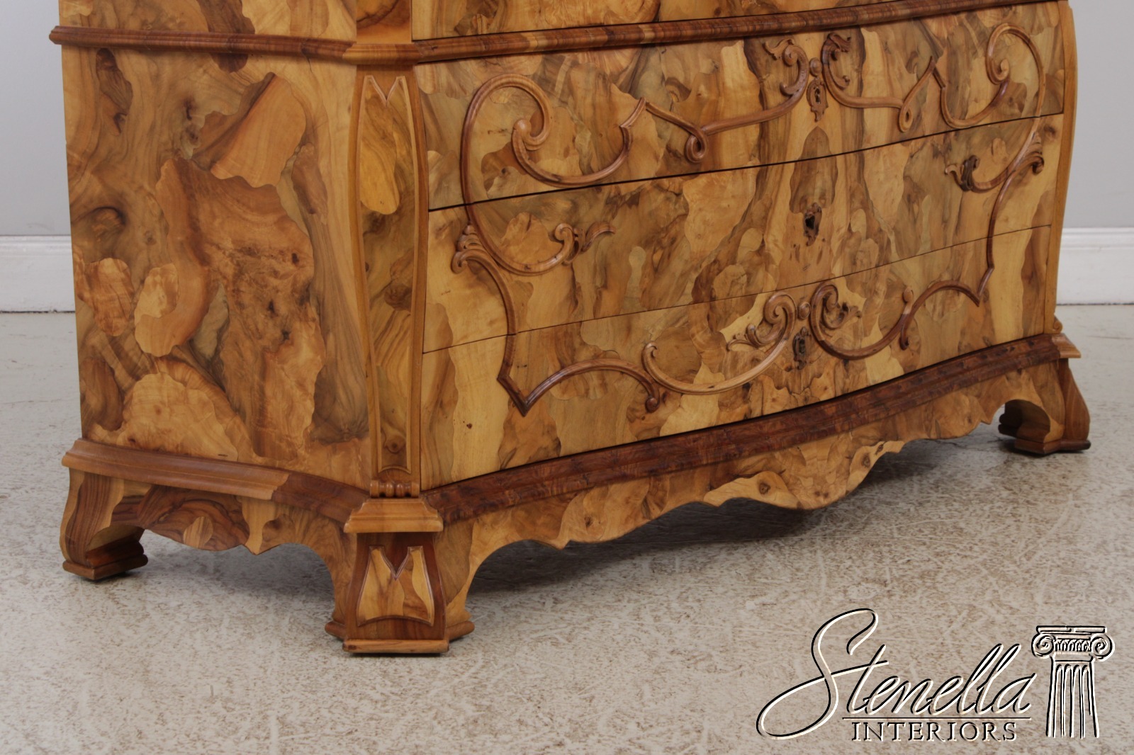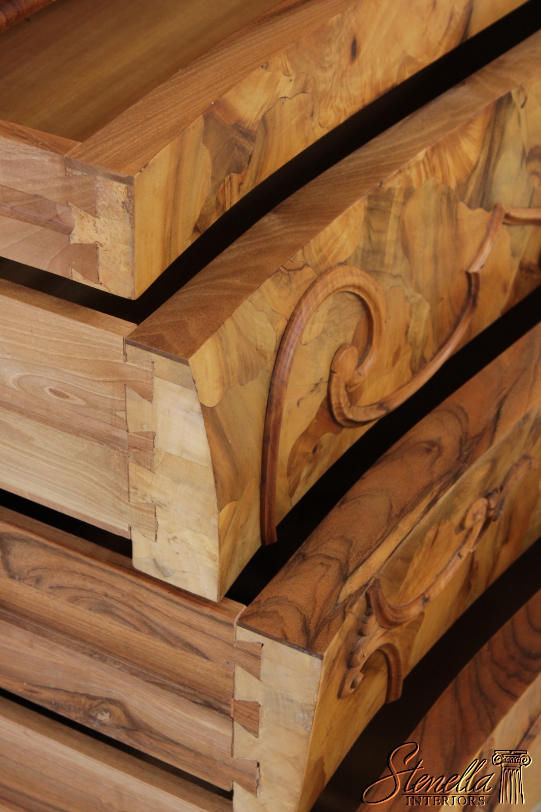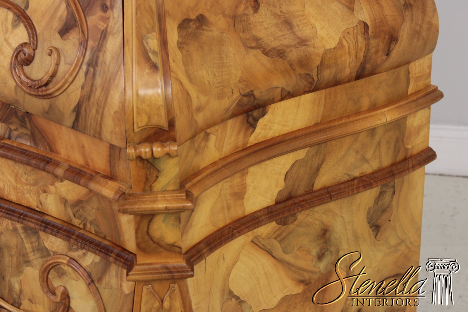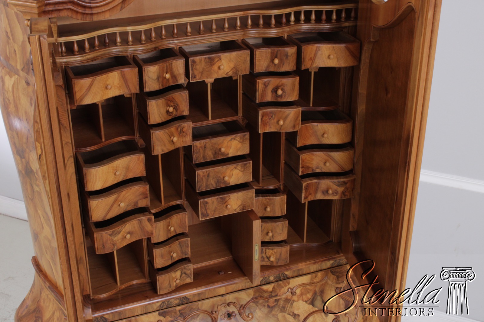 Details: Mirrored Doors Beveled Glass Dovetailed Drawer Construction Fine Carved Details High Quality Construction Large Impressive Cabinet Nice Inlay Work Throughout Traditional Style Three-Piece Construction Multiple Cubby Storage Nice Fitted Interior Ornate Details Throughout Key Locking With Key Gorgeous Olive Wood Construction