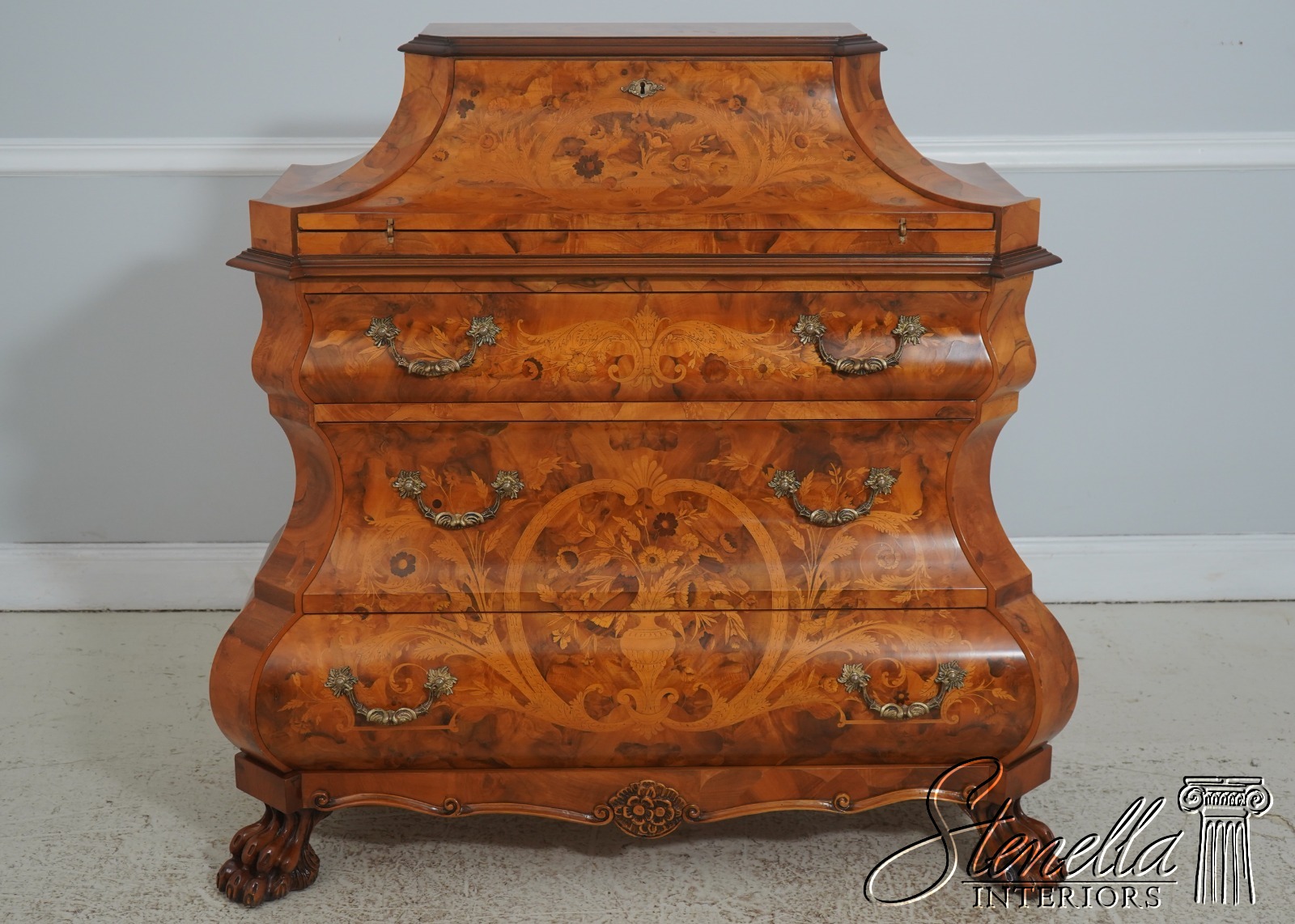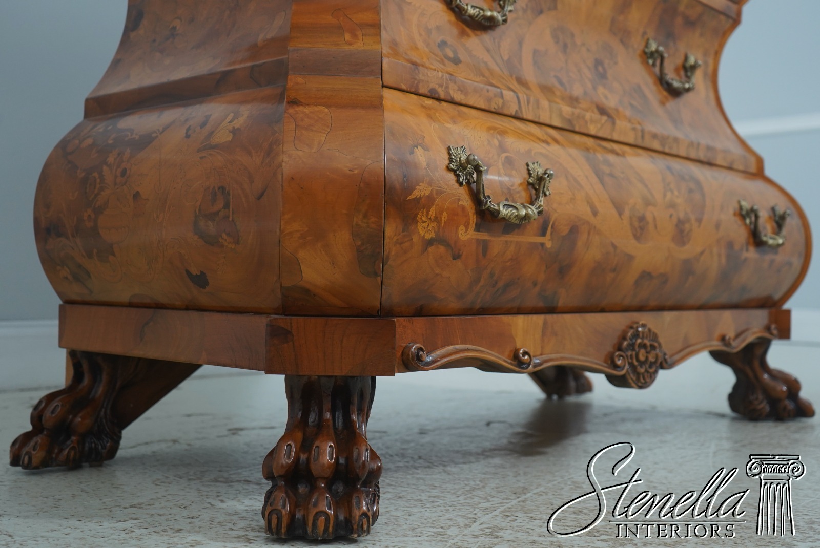 Details: High Quality Construction Nice Inlay Work Throughout Carved Paw Feet Solid Brass Hardware Italian Continental Style Nice Carved Case
