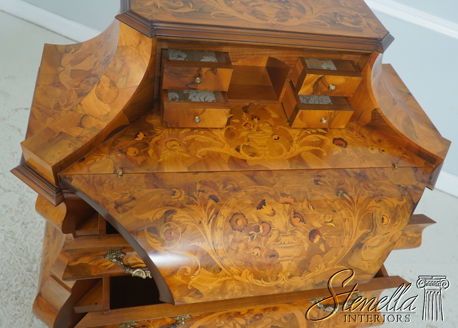 L72205: Italian Highly Inlaid Olivewood Fall Front Desk