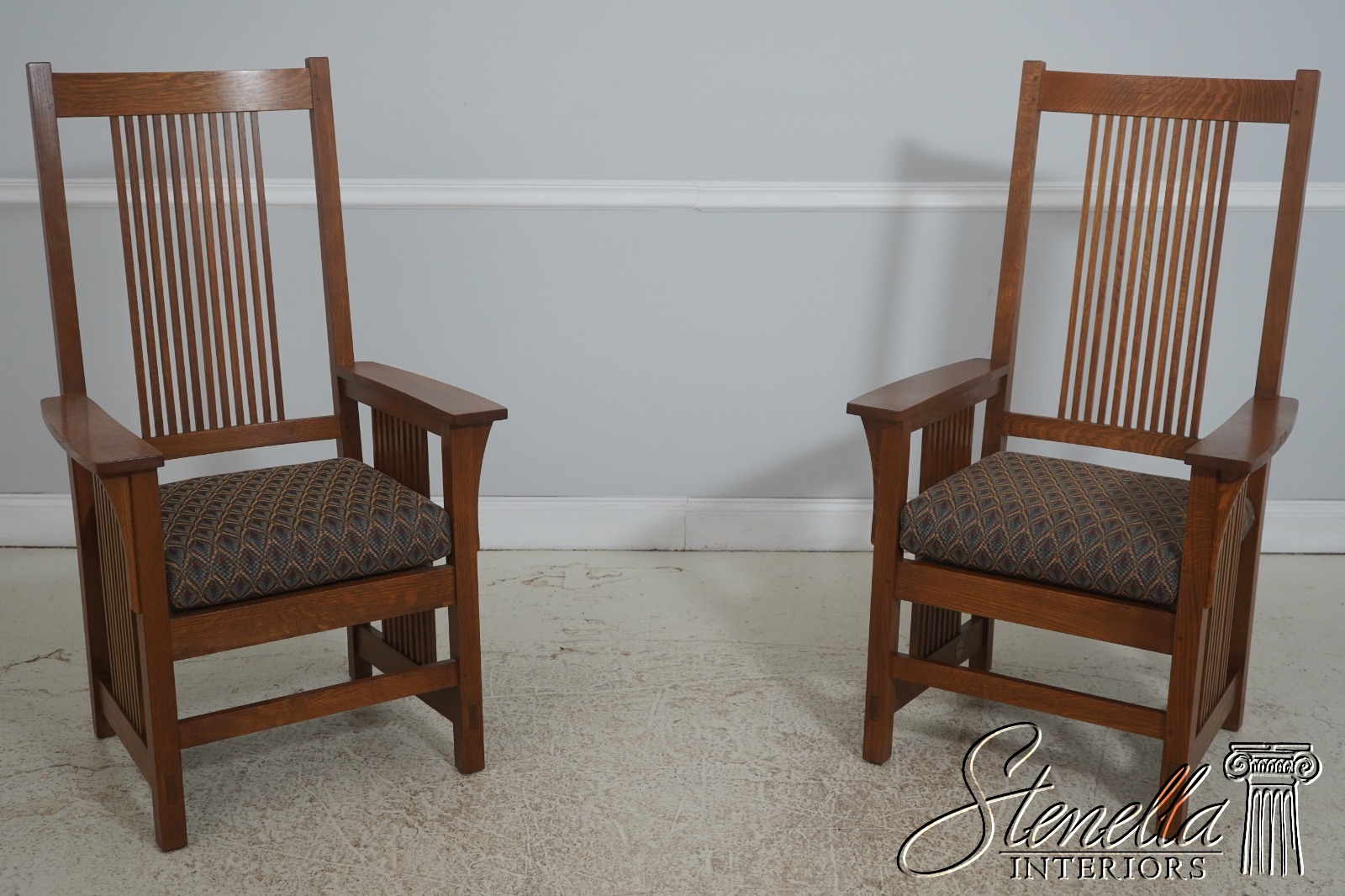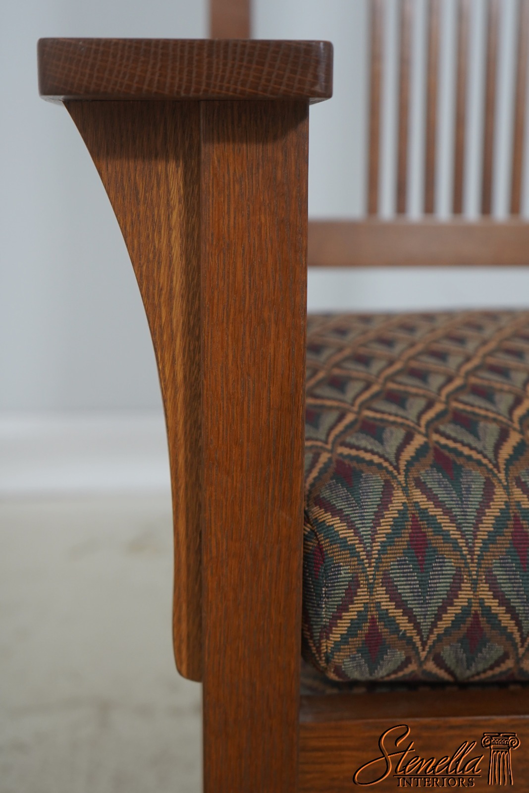 Details: Finish no.35 High Quality Construction Solid Oak Arts & Crafts Style Prairie Design Clean Well Cared For Upholstery Offered @ Fraction Original Retail Cost