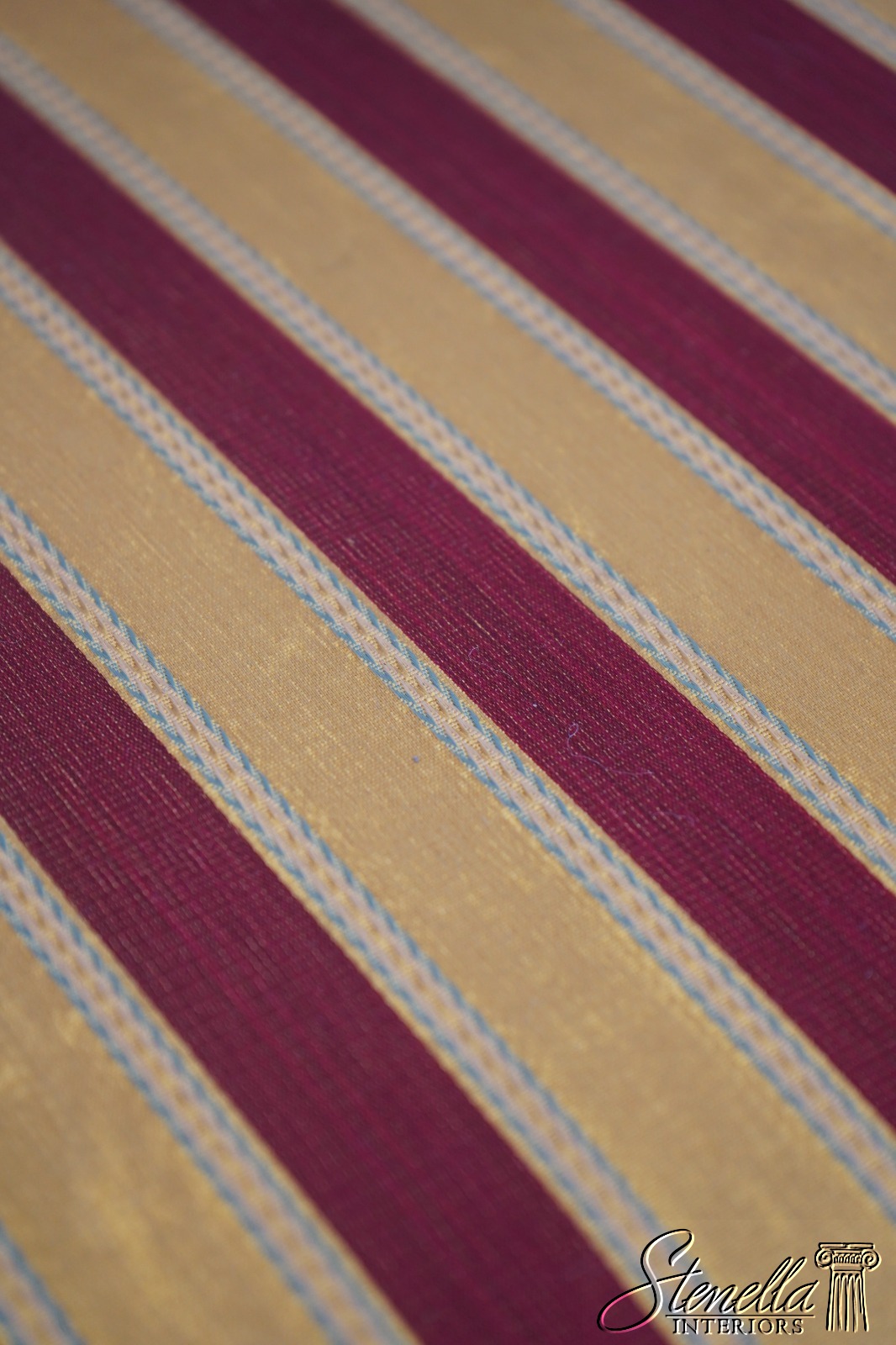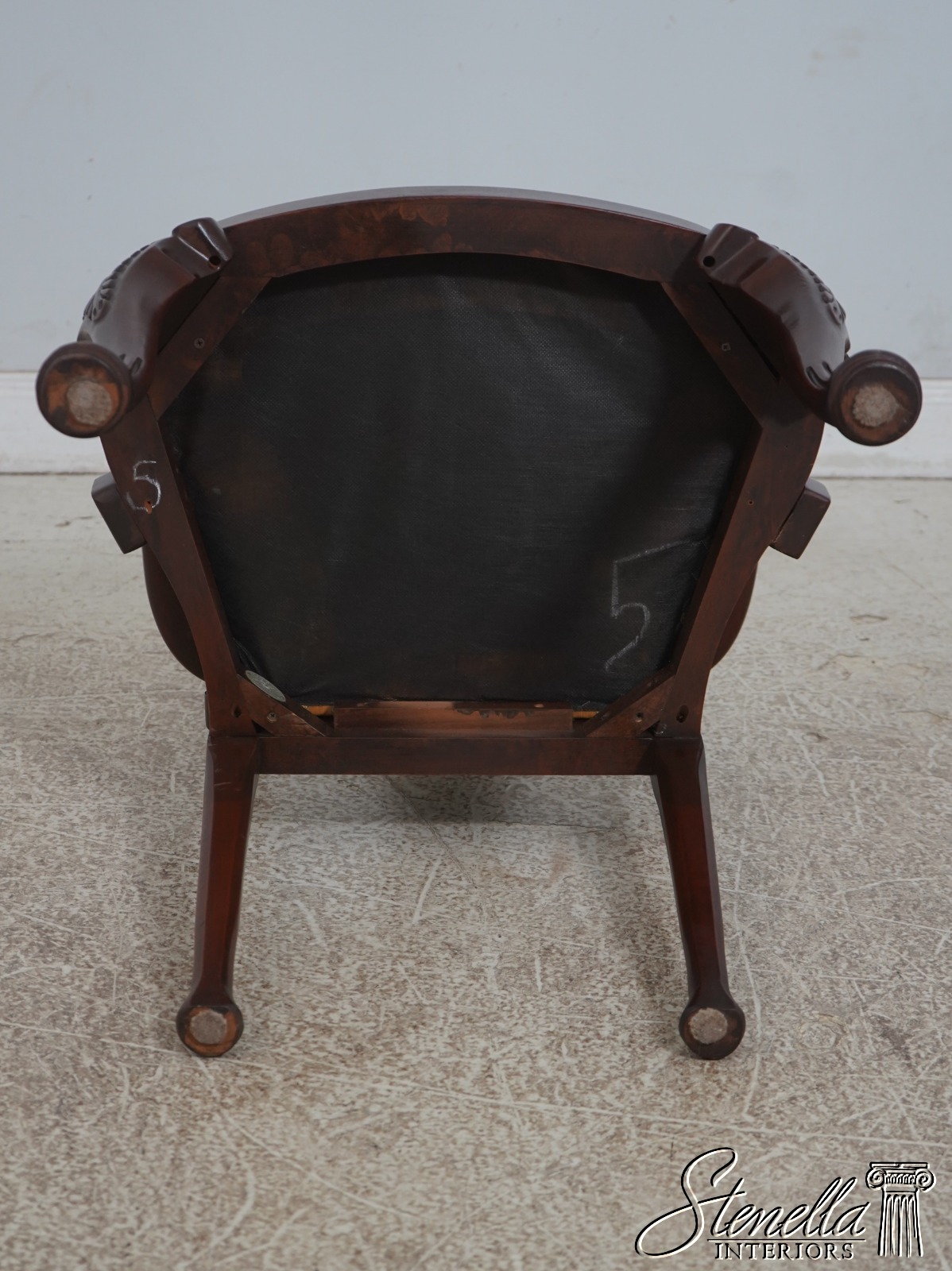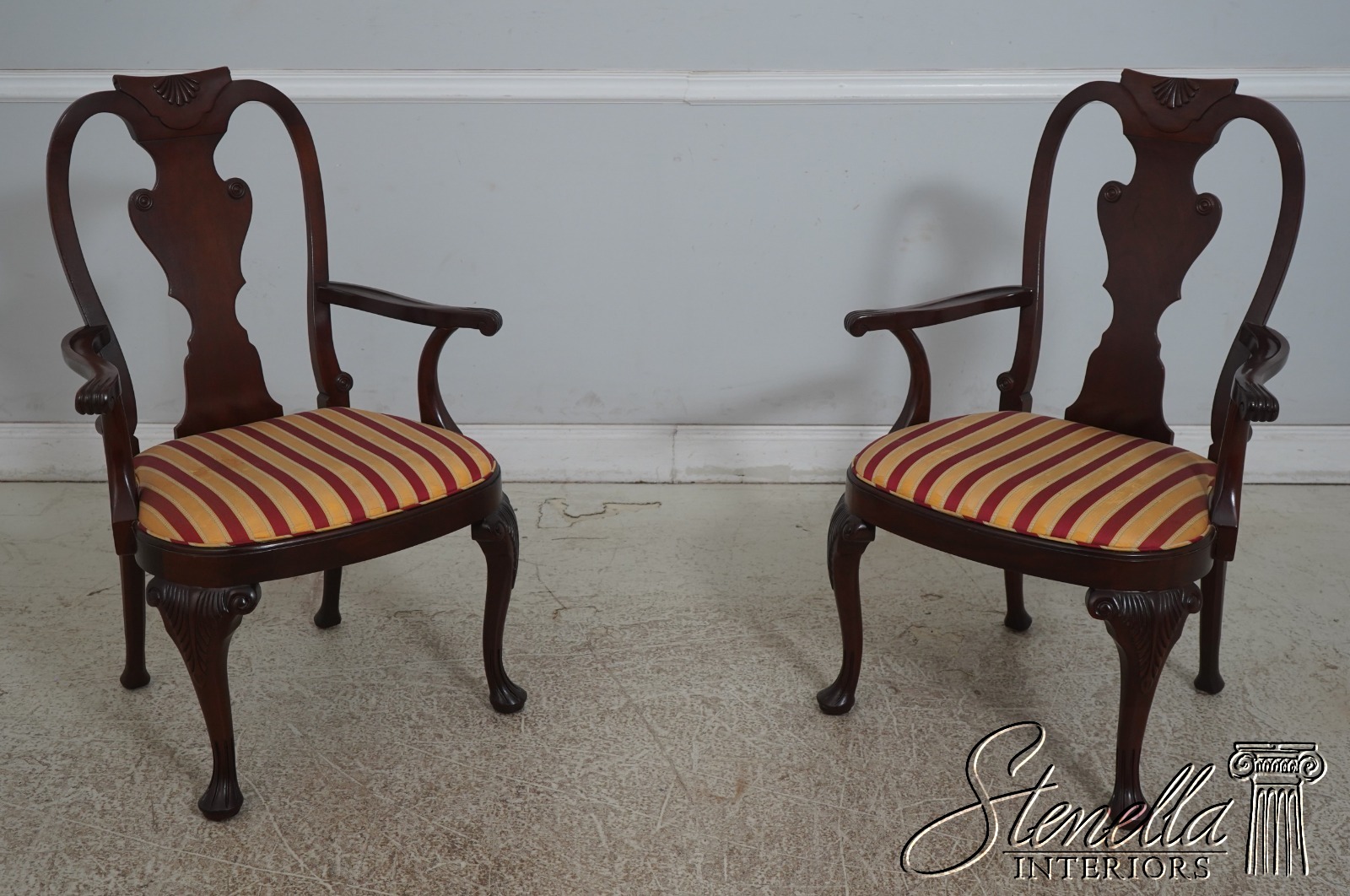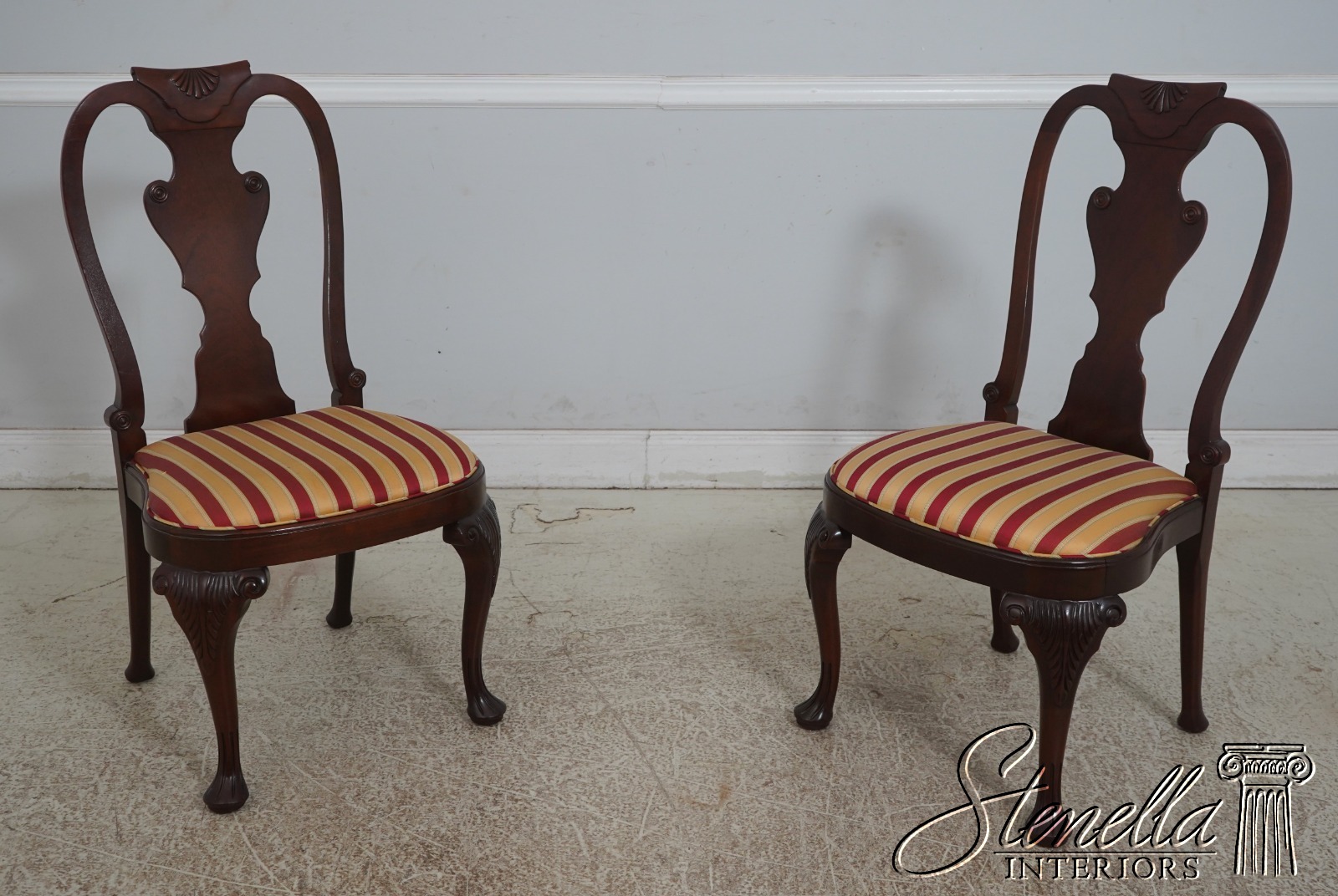 Details: Nice Striped Upholstery w. Minor Light Soiling Quality Construction Queen Anne Legs & Pad Feet Carved Knees Reddish Mahogany Finish Offered @ Fraction Original Retail Cost
