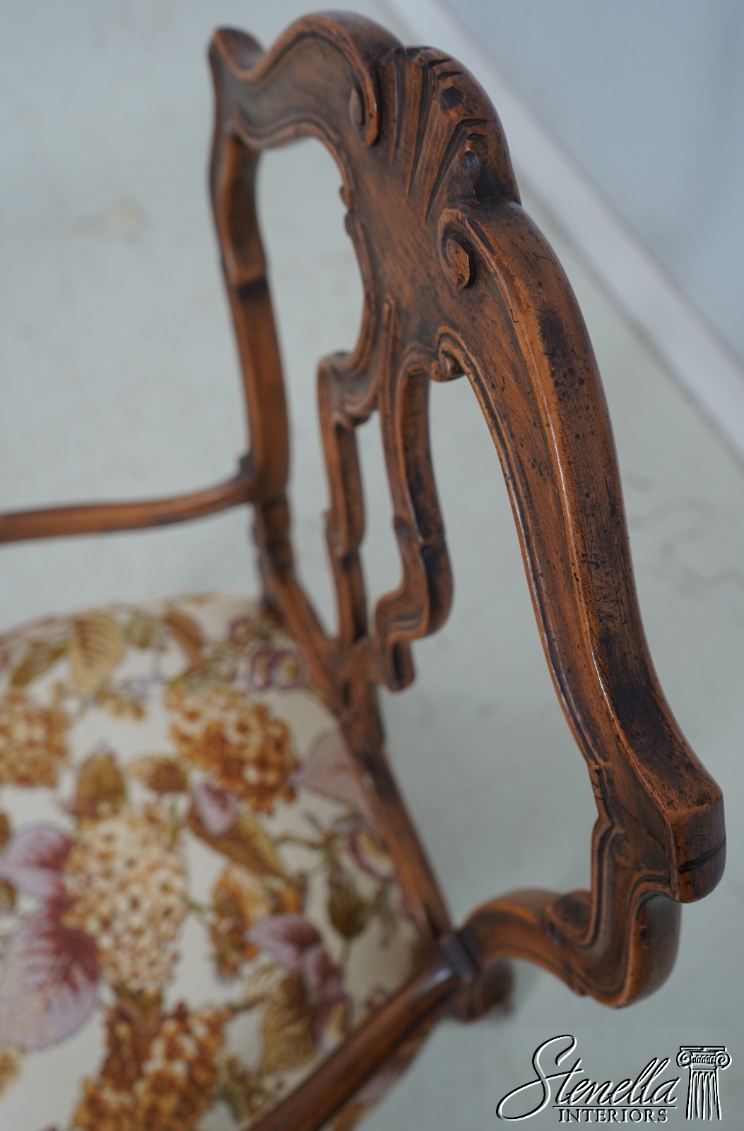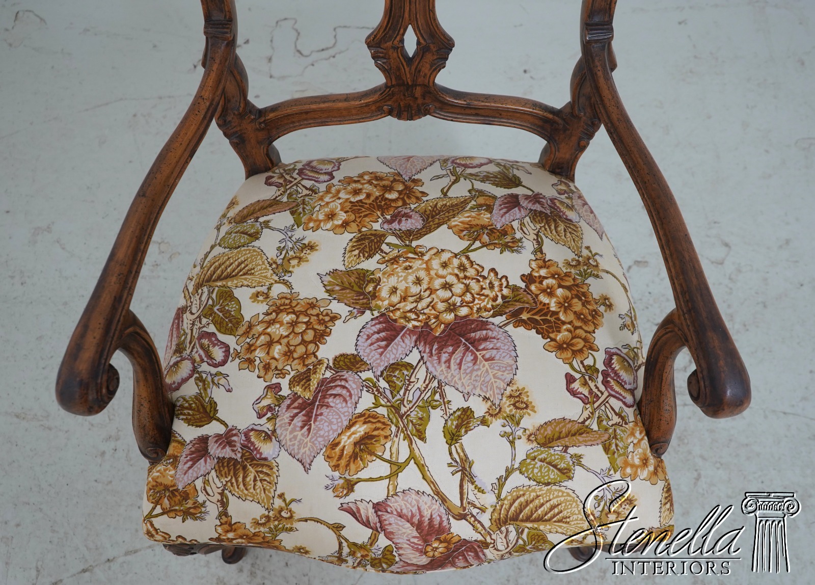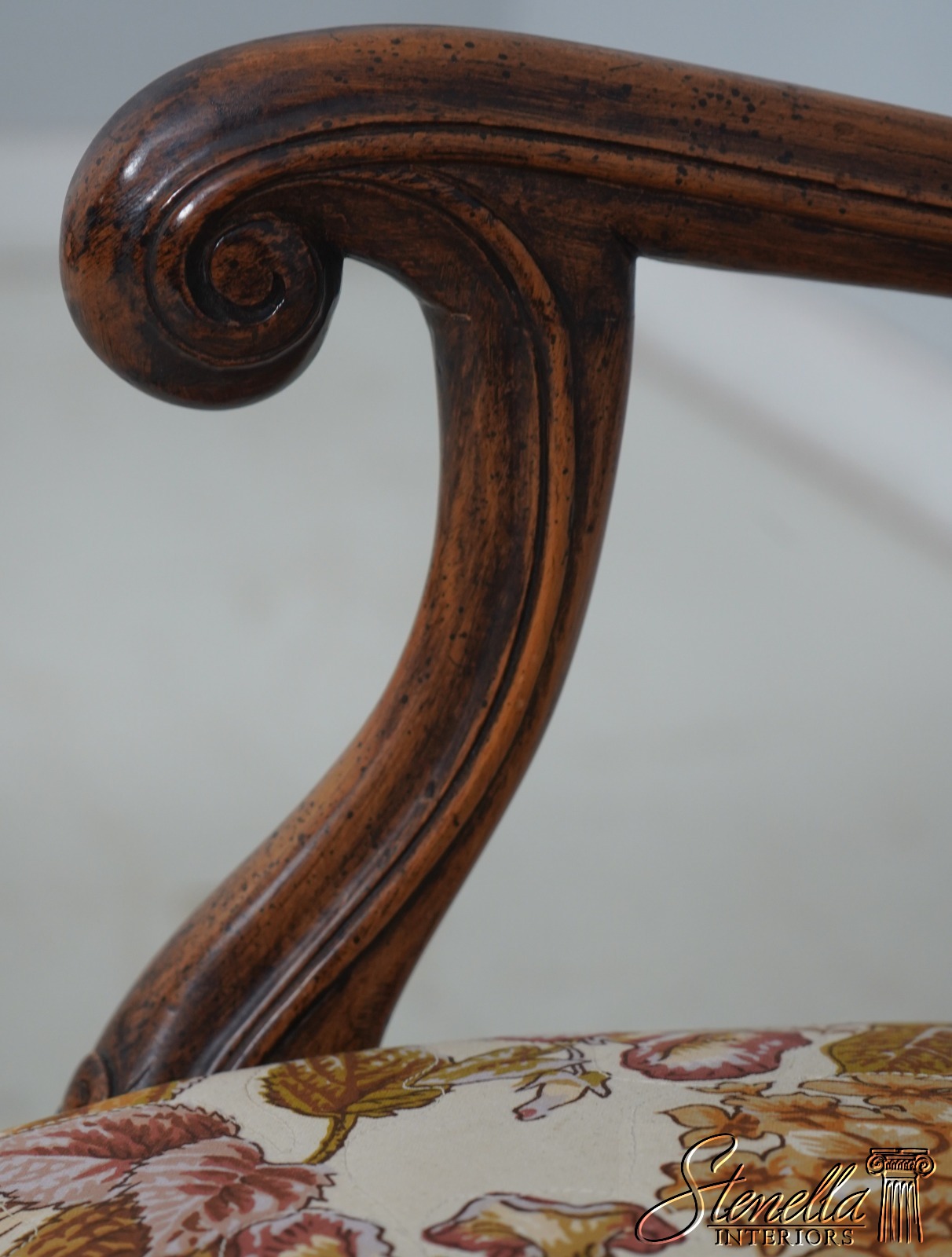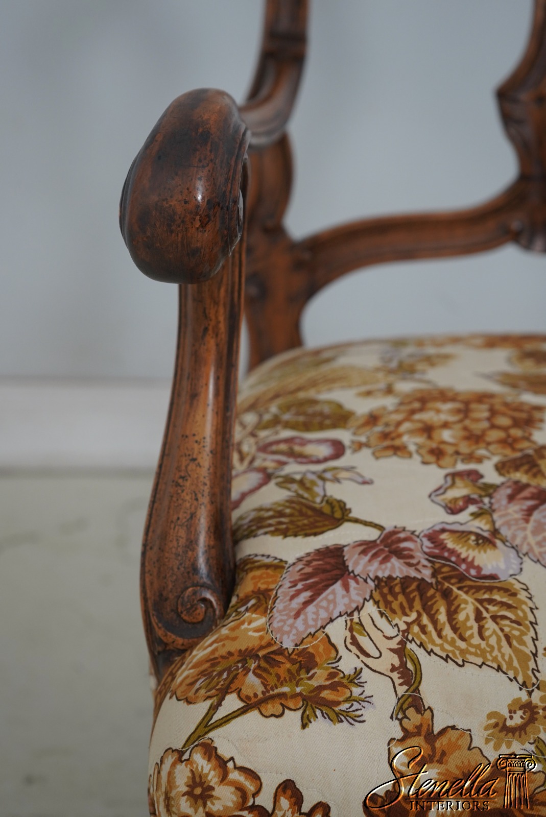 Details: Factory Distressed Fine Carved Details High Quality Construction Shell Carved Crest Pierced Back Splats French Style Cabriole Legs w. Knee Carvings Scroll Arms Floral Upholstery Un-Marked As To Manufacture Offered @ Fraction Original Retail Cost