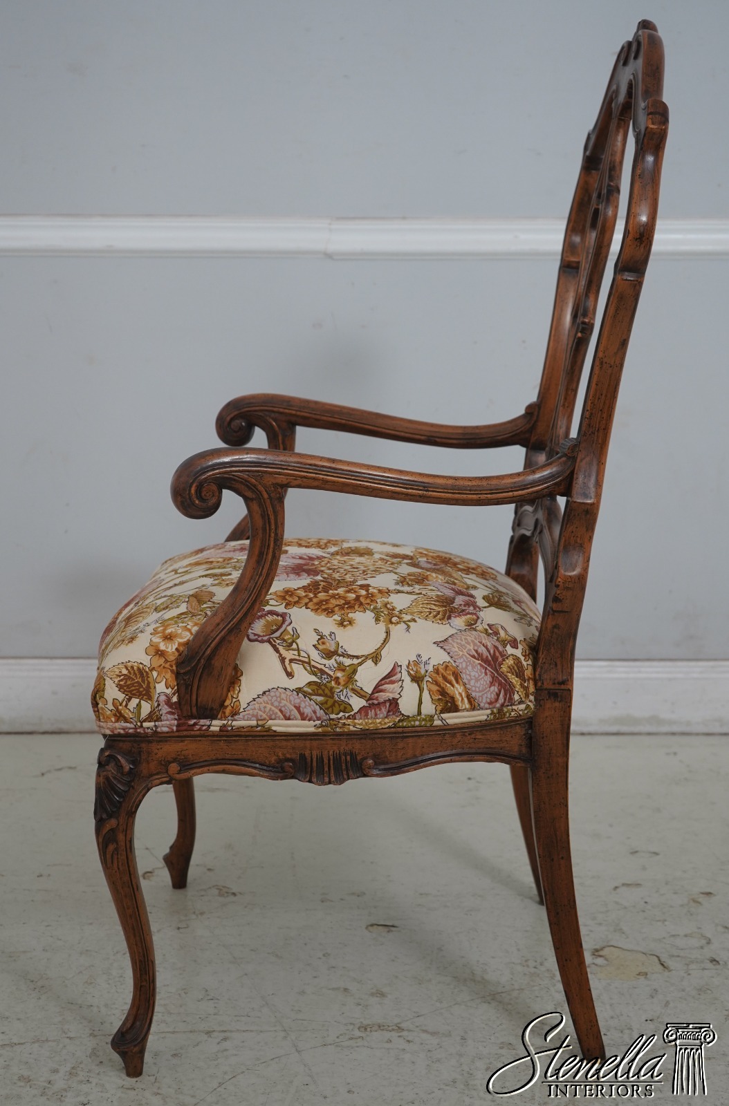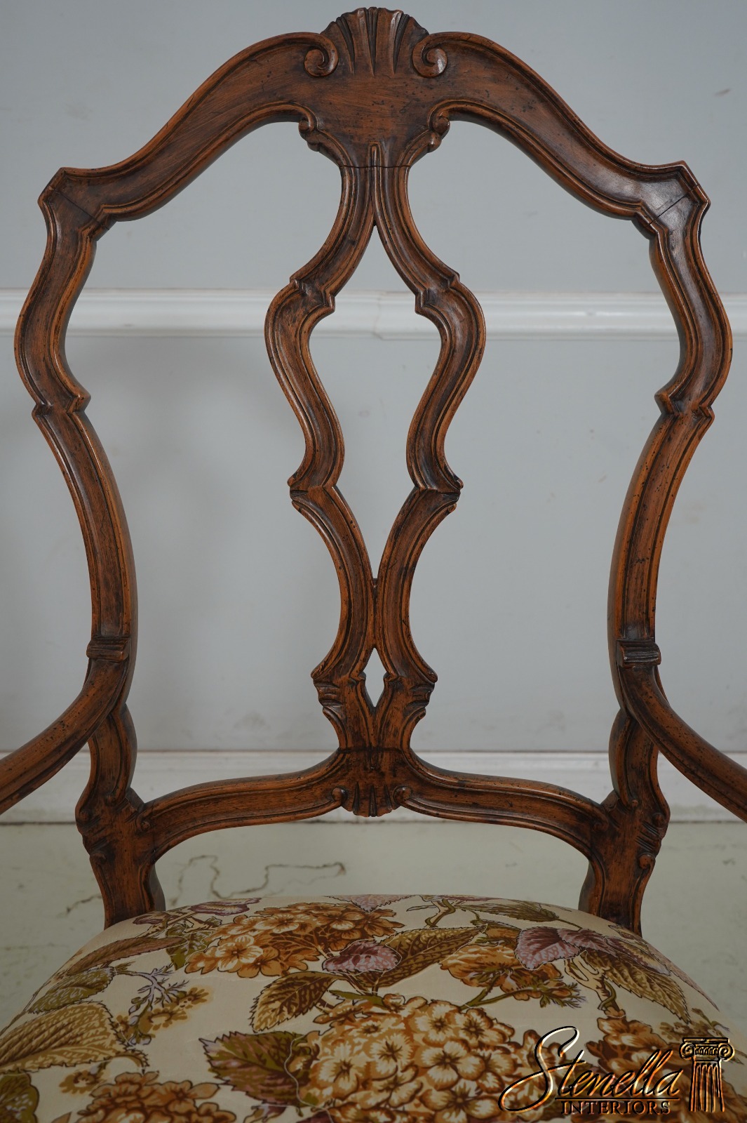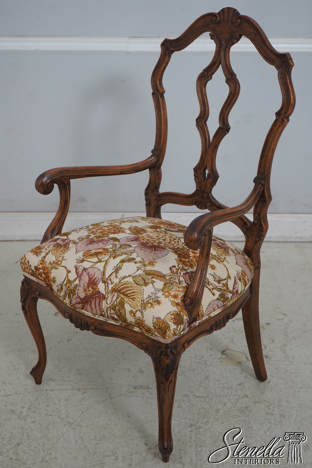 Details: Factory Distressed Fine Carved Details High Quality Construction Shell Carved Crest Pierced Back Splats French Style Cabriole Legs w. Knee Carvings Scroll Arms Floral Upholstery Un-Marked As To Manufacture Offered @ Fraction Original Retail Cost