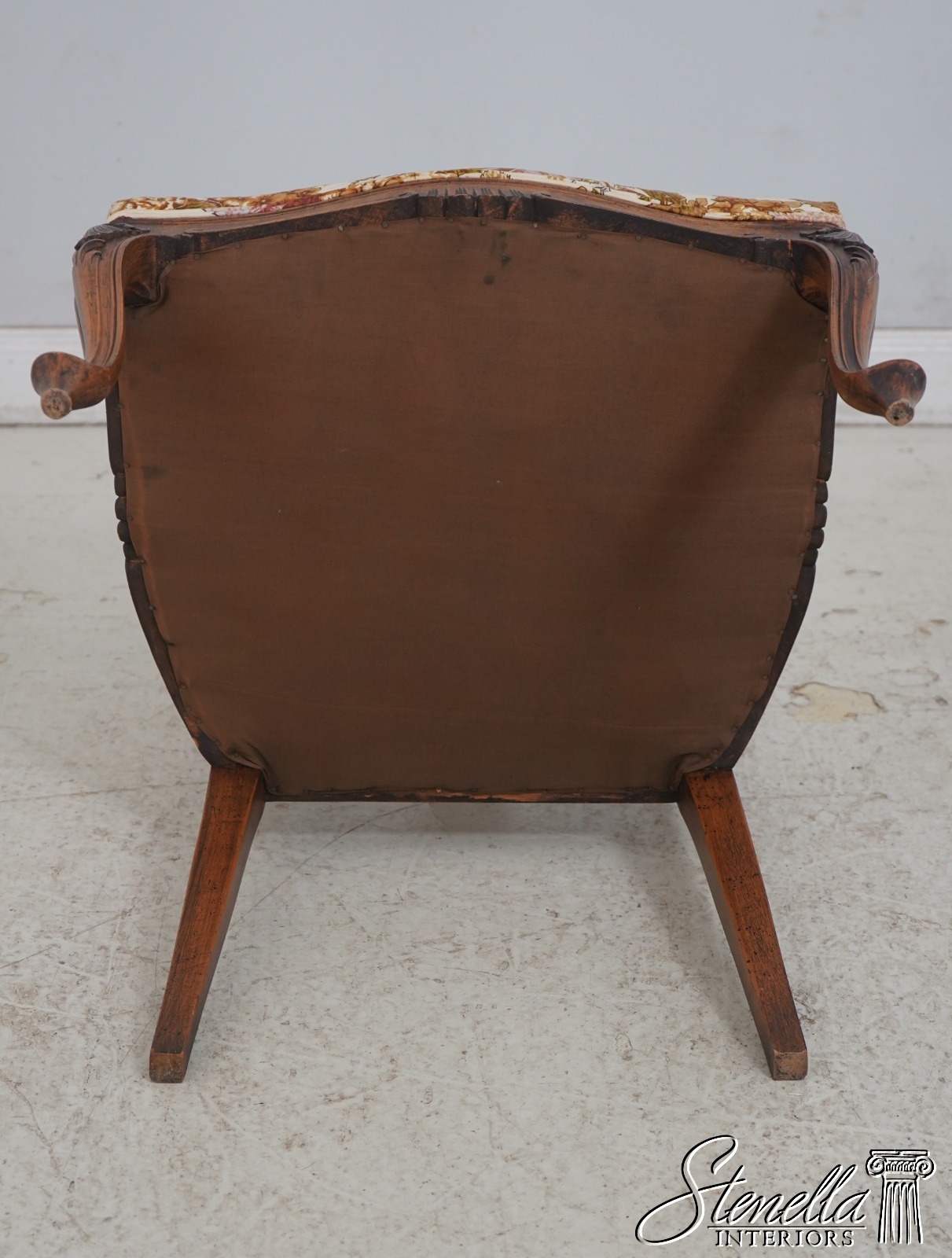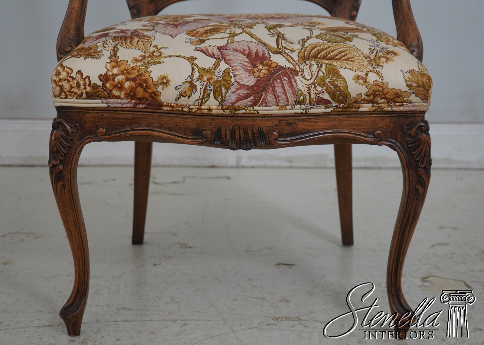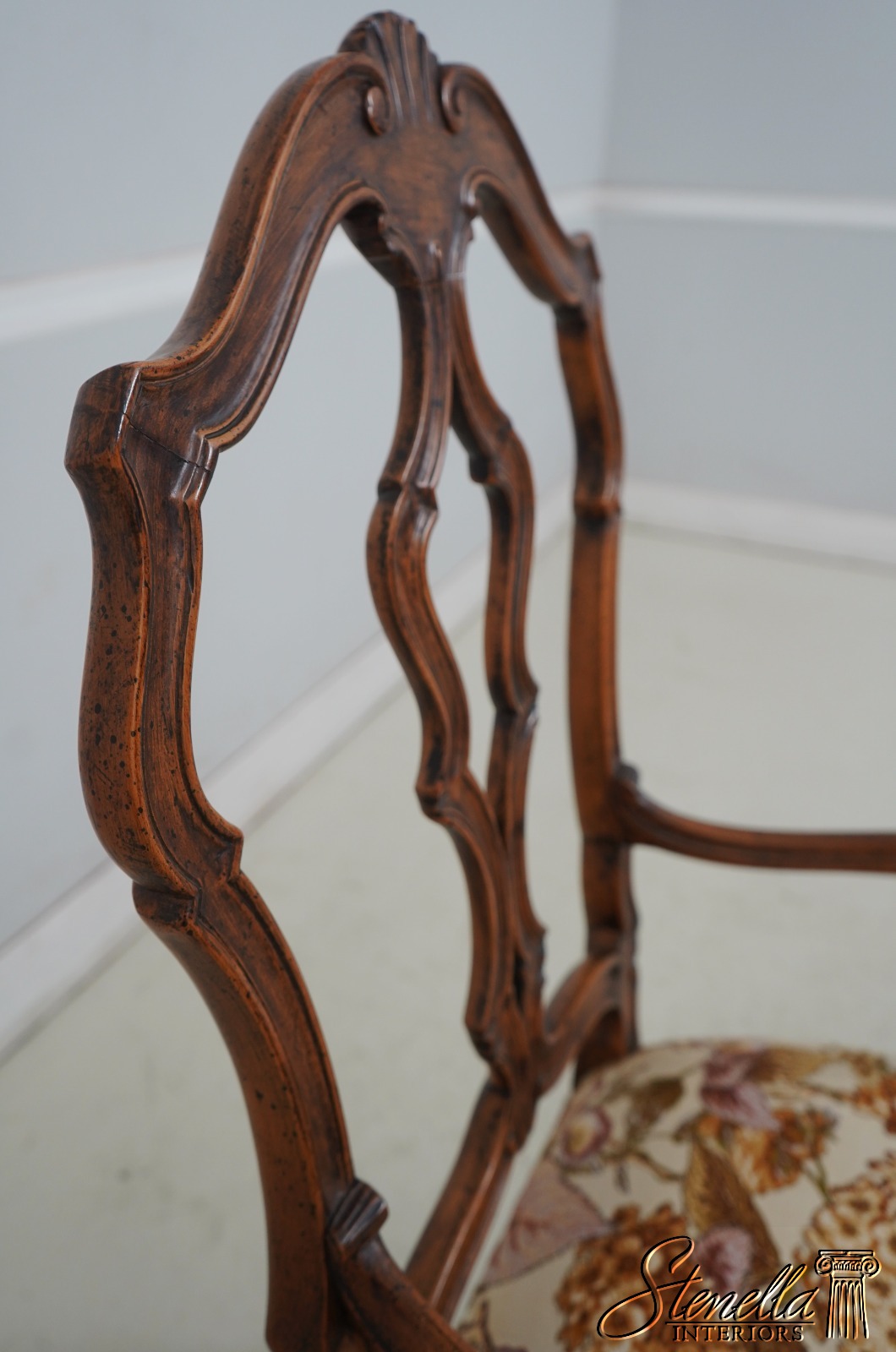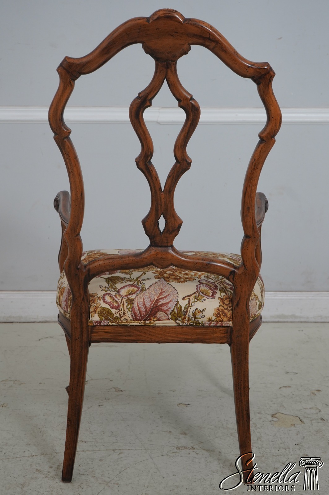 Details: Factory Distressed Fine Carved Details High Quality Construction Shell Carved Crest Pierced Back Splats French Style Cabriole Legs w. Knee Carvings Scroll Arms Floral Upholstery Un-Marked As To Manufacture Offered @ Fraction Original Retail Cost
