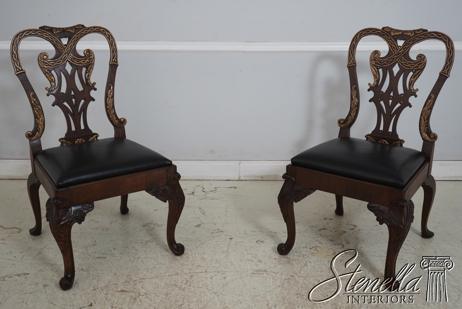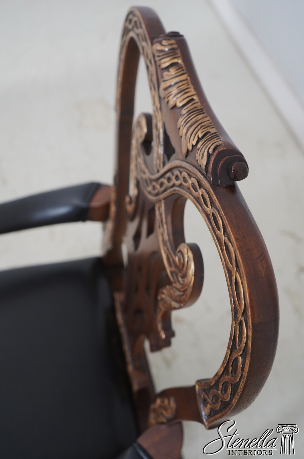 Details: Historic Mansions Collection Solid Mahogany Nice Gold Highlights Fine Carved Details High Quality Construction Quality Black Leather Seats Nice Scrolled Legs