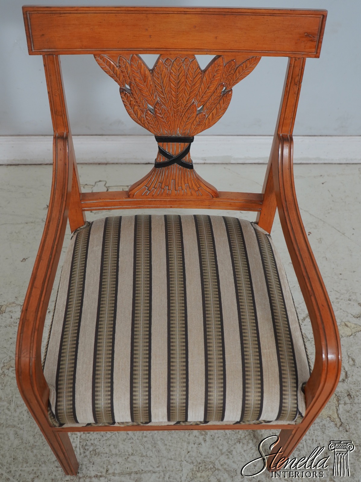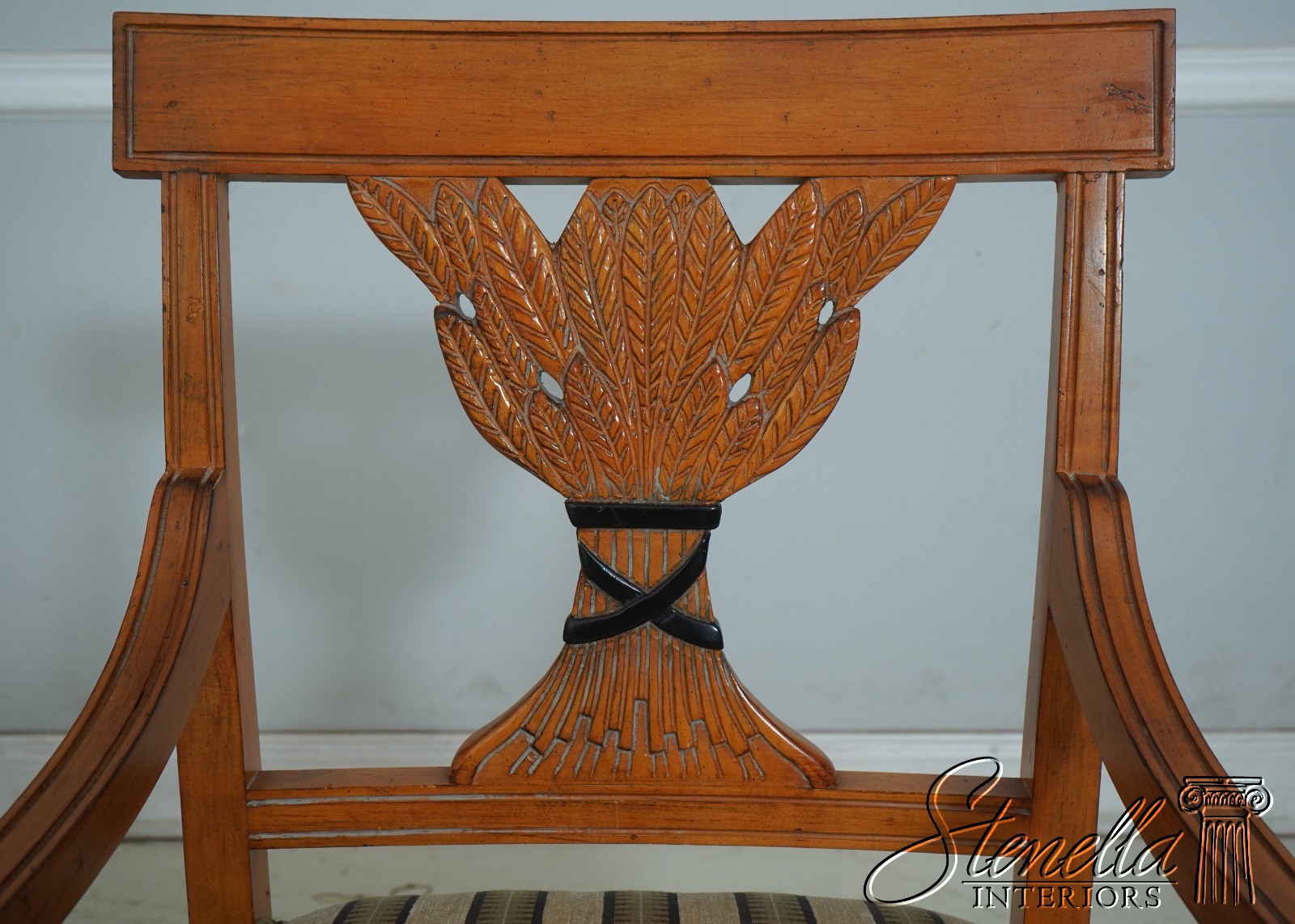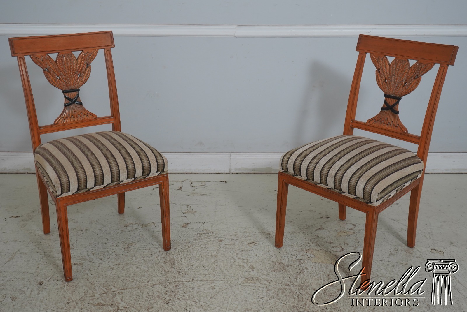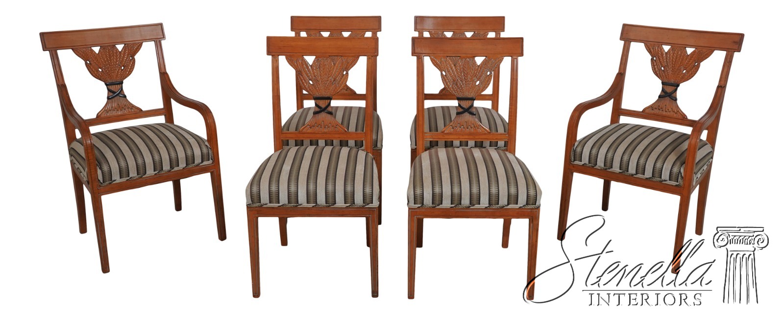 L70063: Set of 6 Wheat Carved Back Neoclassical Dining Room Chairs