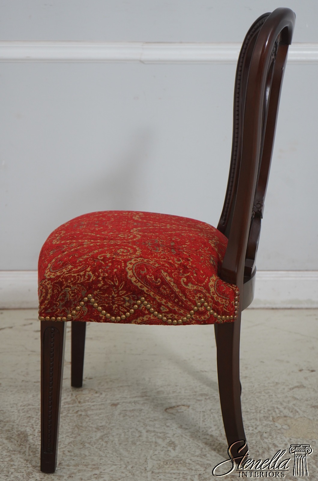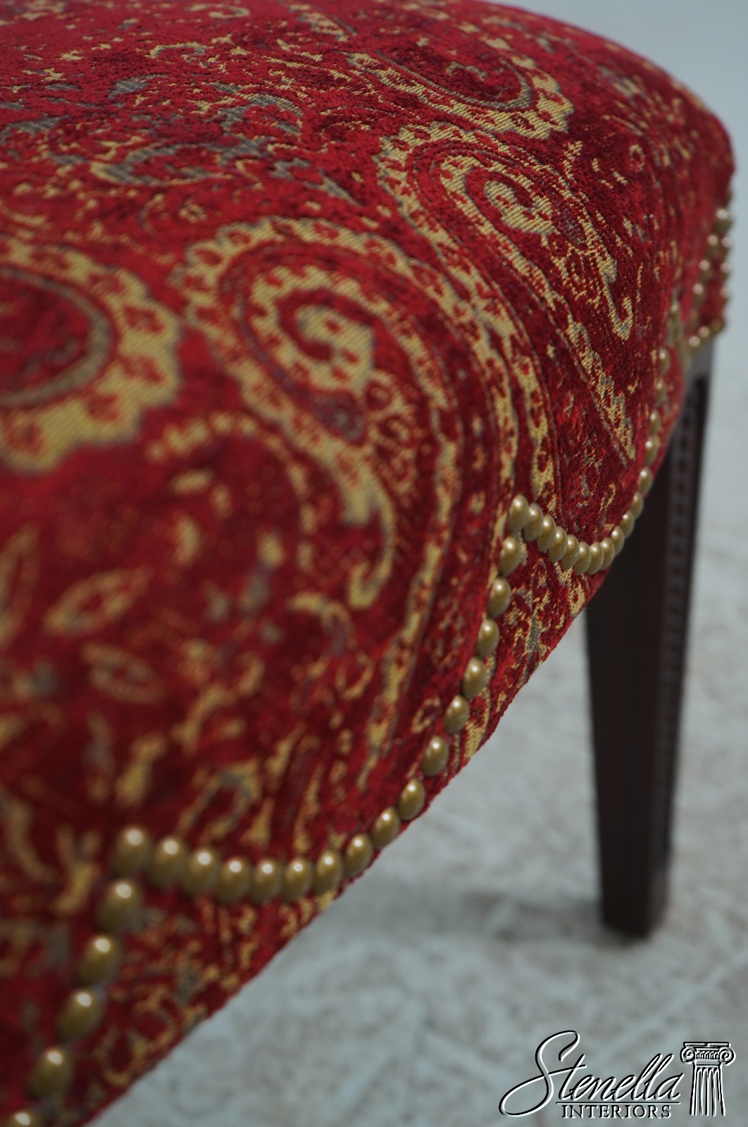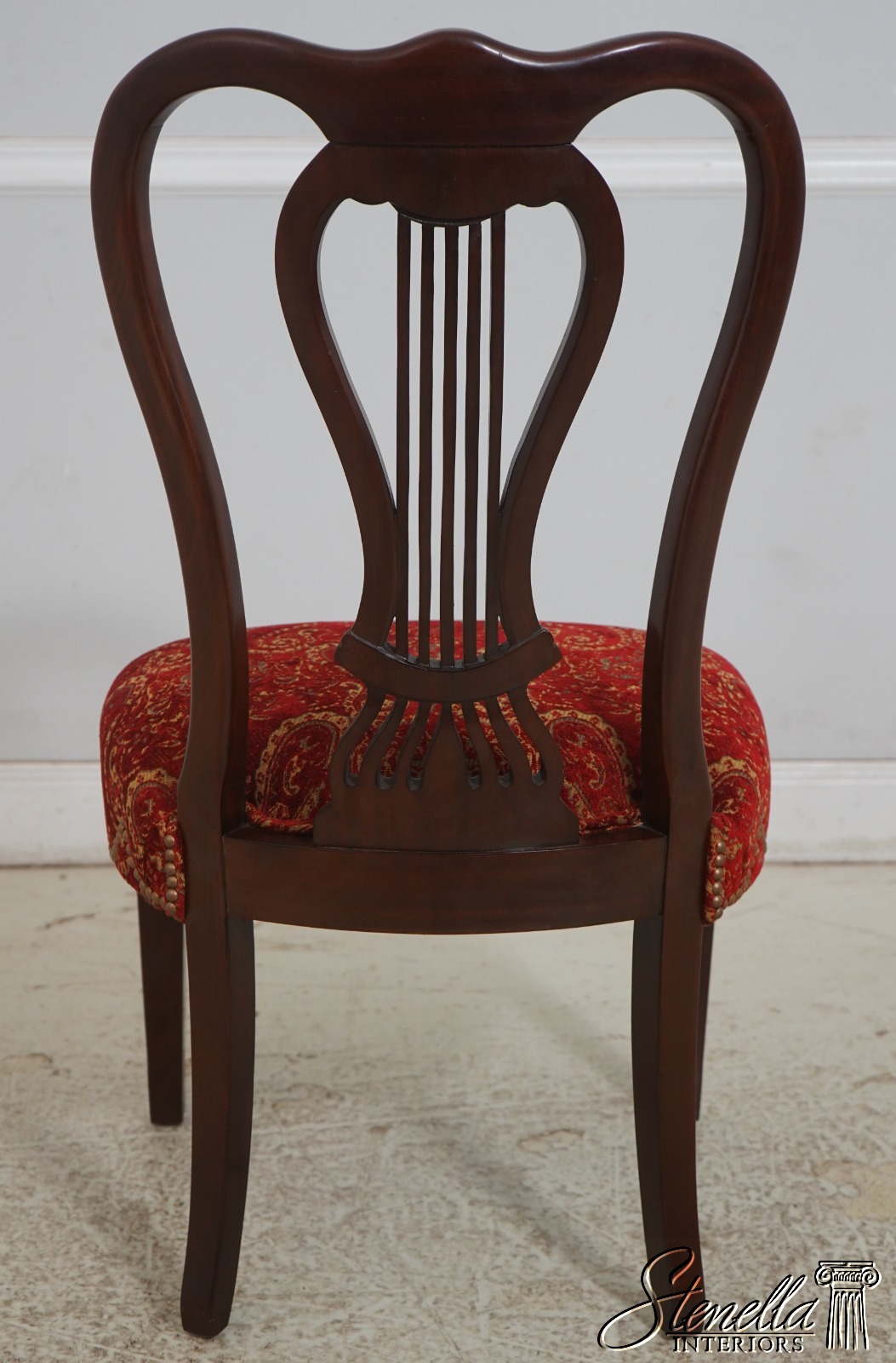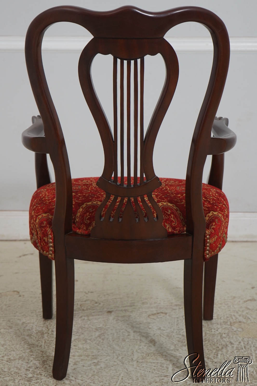 Details: Regency Style Mahogany High Quality Construction Gorgeous Chairs Ready For Your Home Nice Inlay Work Throughout New Upholstery Carved Beads & Rosettes Professionally Reupholstered Seats w. Drape Tack Trimwork Tack Head Trim Knuckle Arms Offered @ Fraction Original Retail Cost
