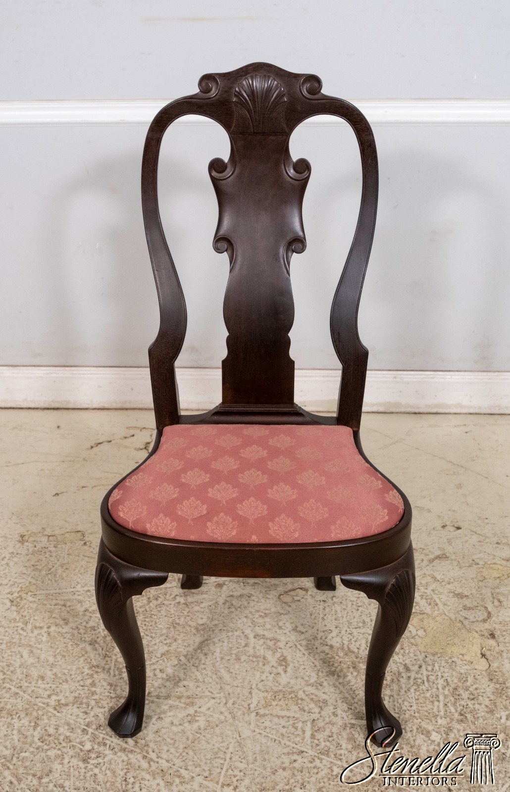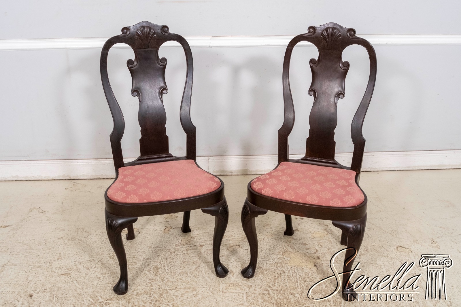 This exceptional pair of Queen Anne carved walnut compass-seat side chairs, made in Philadelphia between 1740 and 1760, represents some of the finest craftsmanship of early American furniture. Both chairs have distinguished provenance tracing to Dr. Thomas Graeme (1688–1772) of Graeme Park in Horsham, Pennsylvania. The needlework-upholstered example descended through the Graeme, Penrose, and Twining families before passing through Sotheby’s and Christie’s sales, ultimately selling for $40,000 at Christie’s in 2013. The pink-upholstered chair descended through Dr. Graeme’s lineage to Mrs. J. Insley Blair (Natalie Knowlton) and the Lorillard family, later selling for $50,000 at Christie’s in 2017. The pair, notable for their provenance, condition, and original upholstery, sold together to a private collector for $270,600. They exemplify the refined Philadelphia design tradition and relate closely to comparable examples associated with the Francis Rawle family and discussed in Alan Miller’s American Furniture (2014), as well as similar chairs held by the Metropolitan Museum of Art.