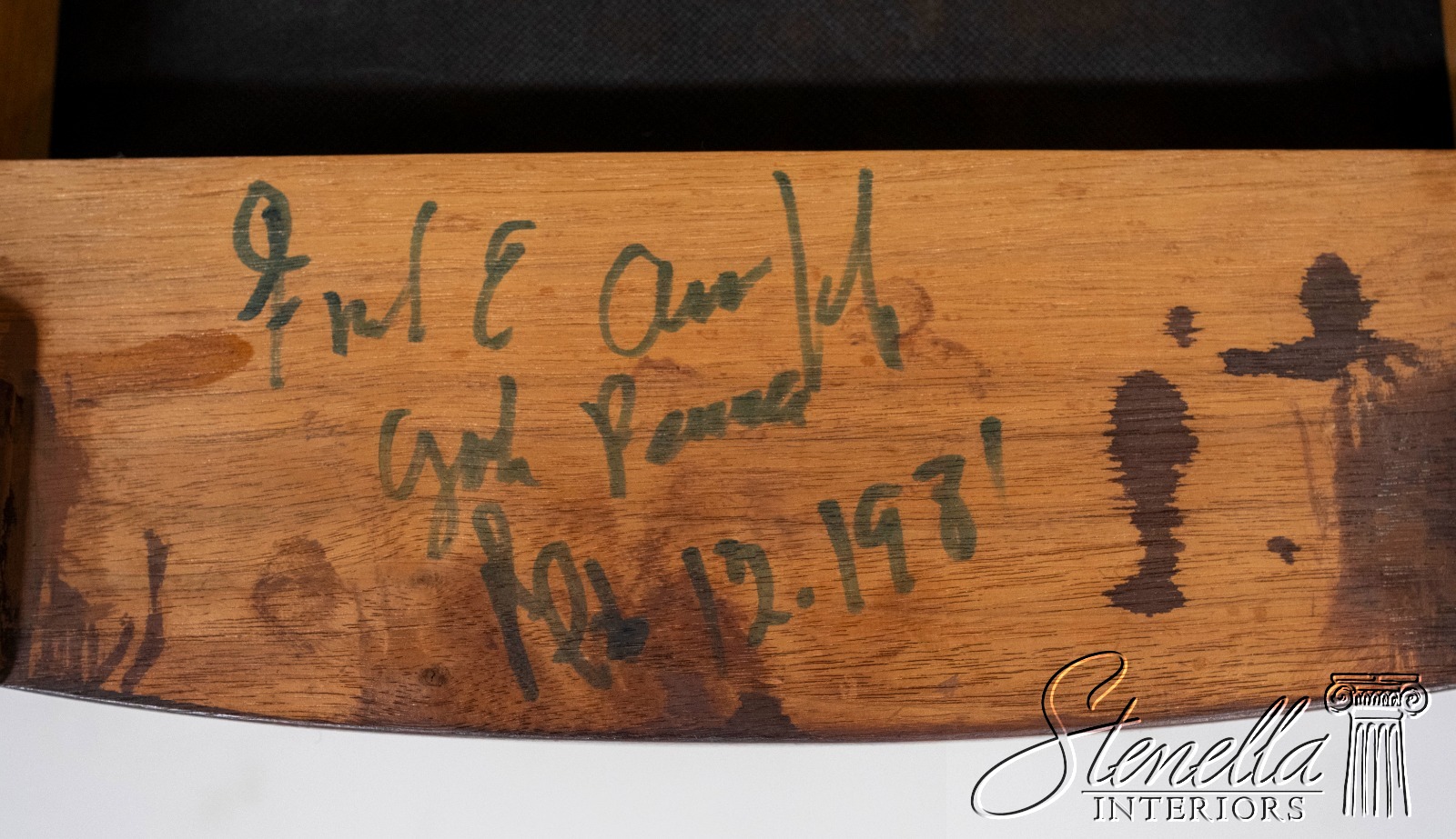 Details: Walnut Trifid Feet Signed & Dated Fine Carved Details High Quality Construction Queen Anne Style Shell Carved Crest & Knees Chairs Were Individually Commissioned To Be Made Over 10 Year Period Vintage Bench Made Reproduction Of Graeme Family Chairs Removable Slip Seats By Frank E. Auspitz Offered @ Fraction Original Retail Cost