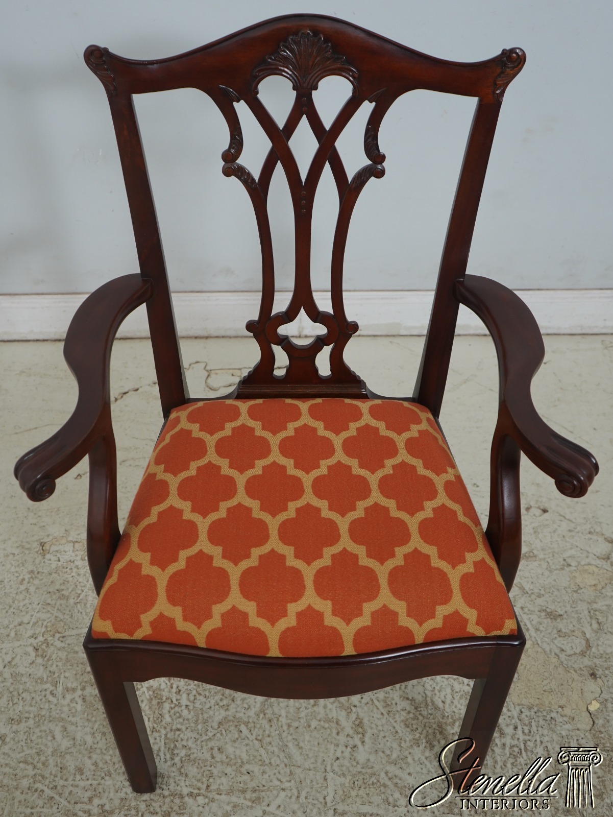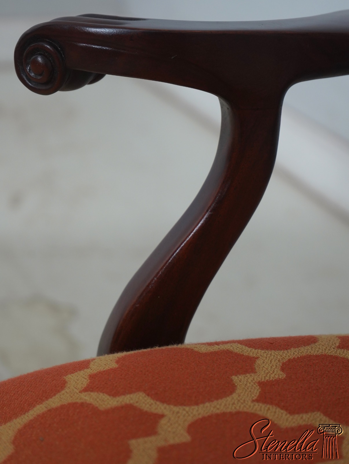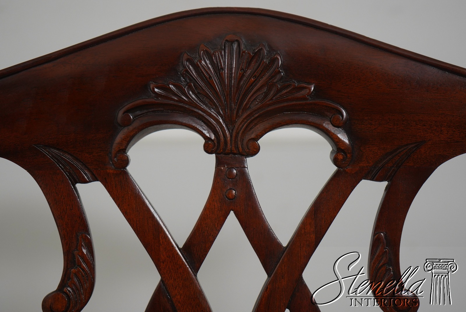 Details: Solid Mahogany Carved Details High Quality Construction 18 C. Design Chippendale Style Newly Reupholstered Seats Knuckle Arms Offered @ Fraction Original Retail Cost