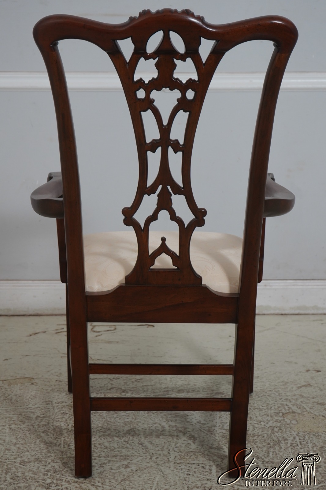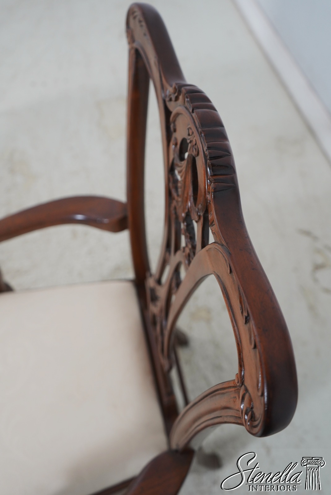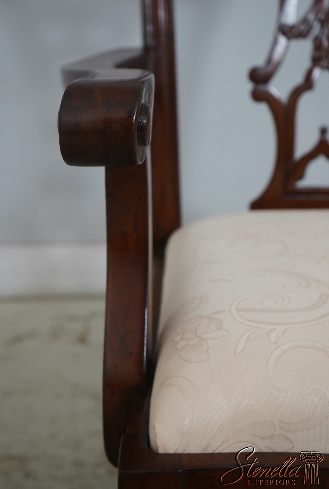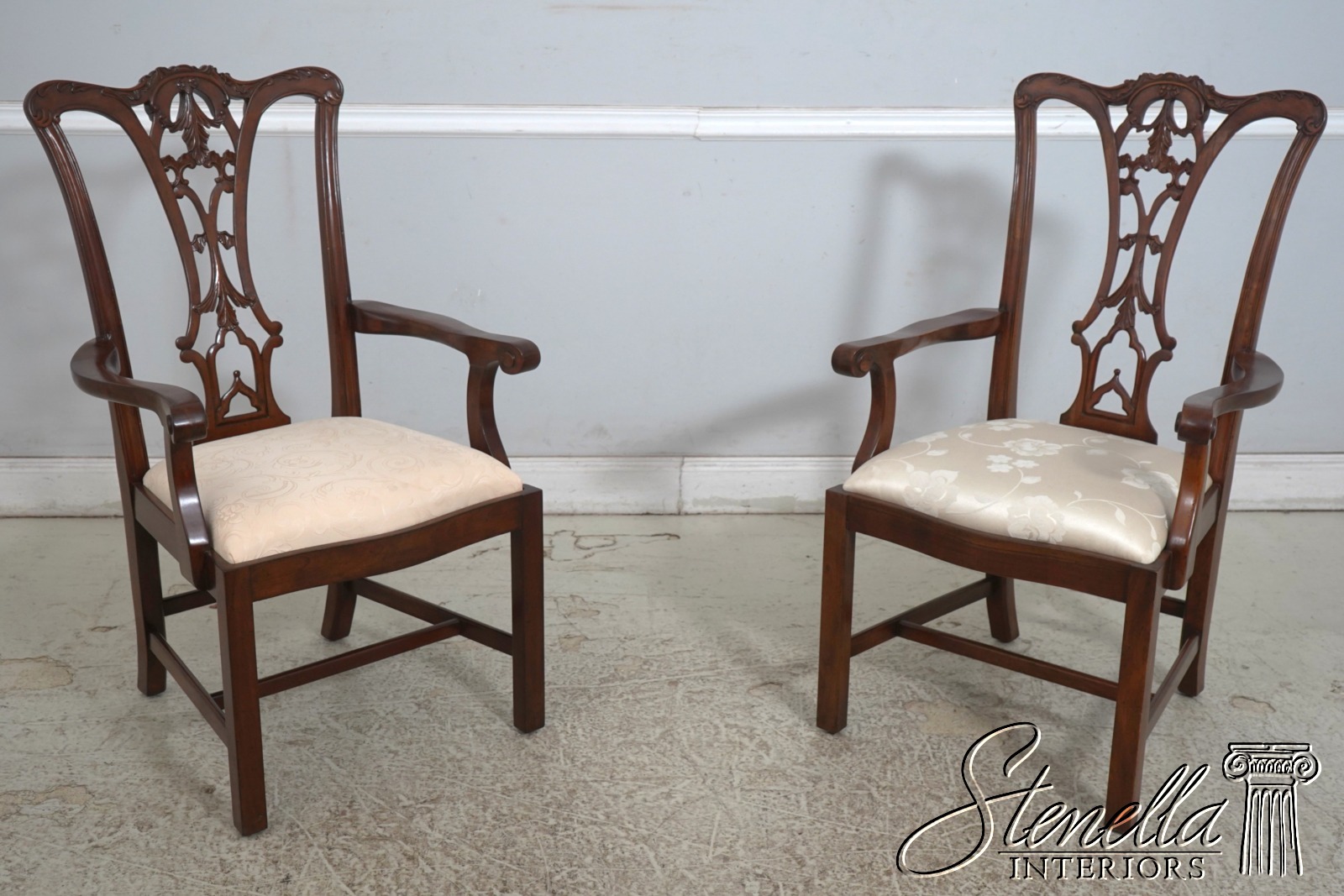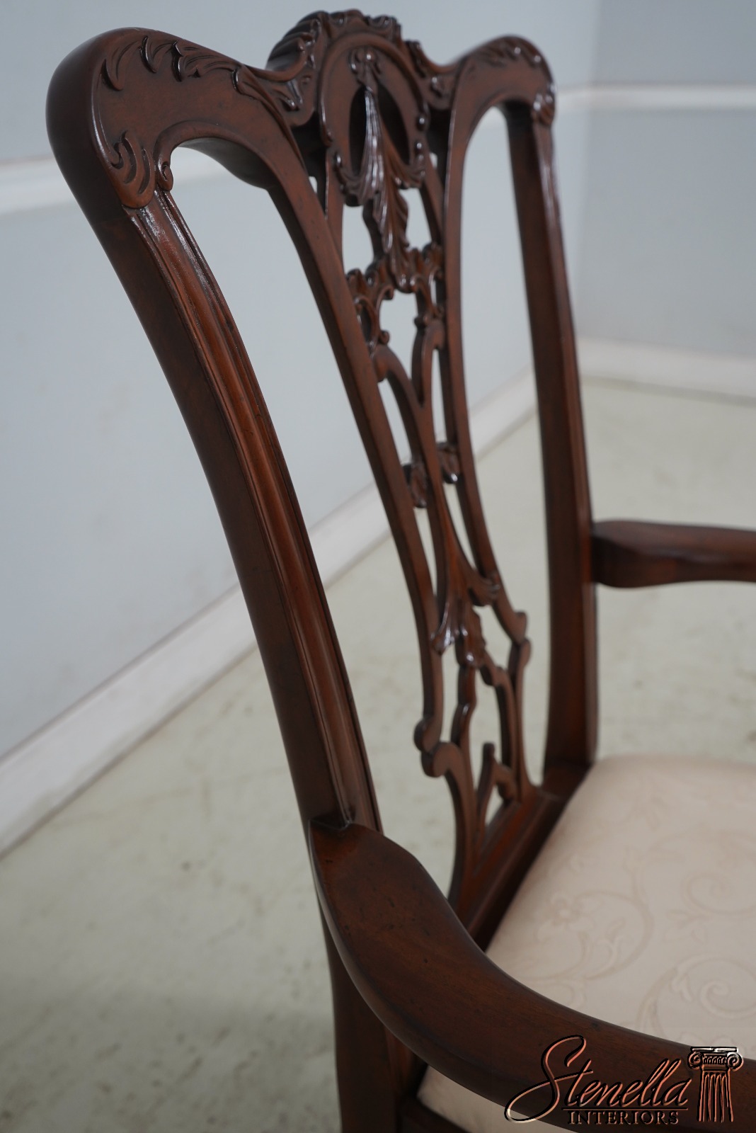 Details: Fine Carved Details High Quality Construction Set of 6 Armchairs 18 C. Design Chippendale Style New Floor Models Never Actually Used Traditional Style Stretcher Base Frame One Seat Covered In Different Upholstery Offered @ Fraction Original Retail Cost