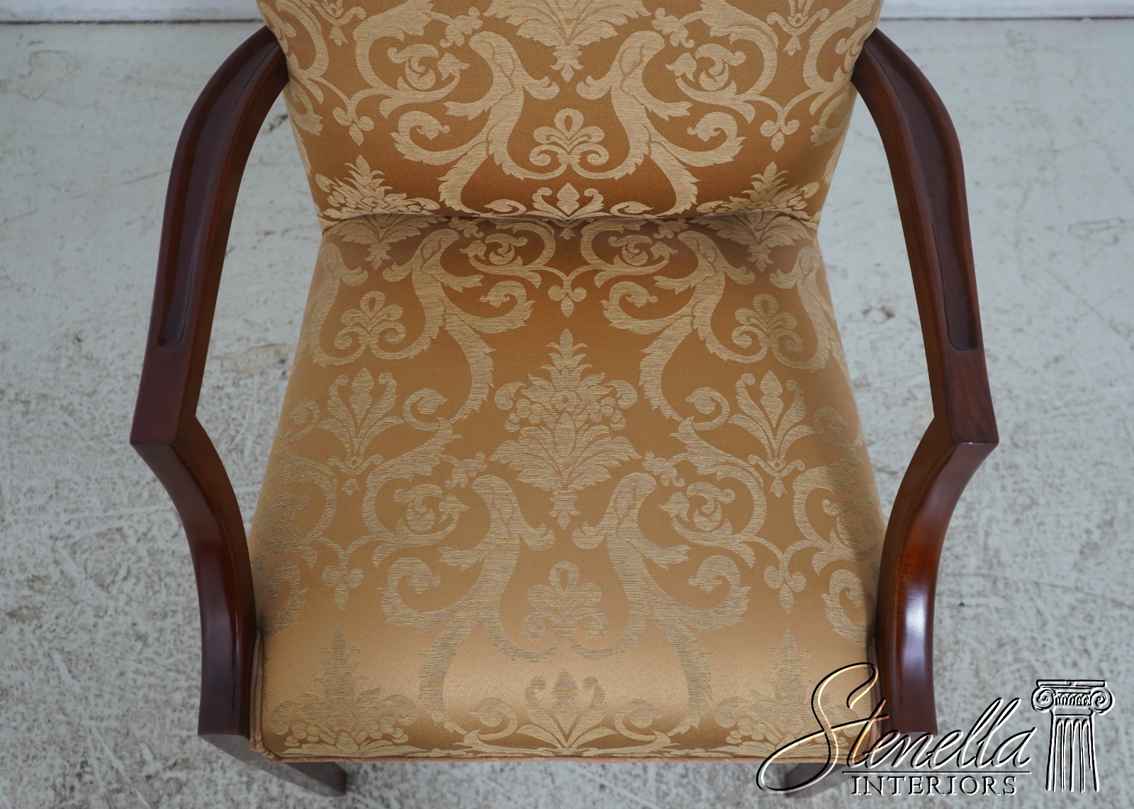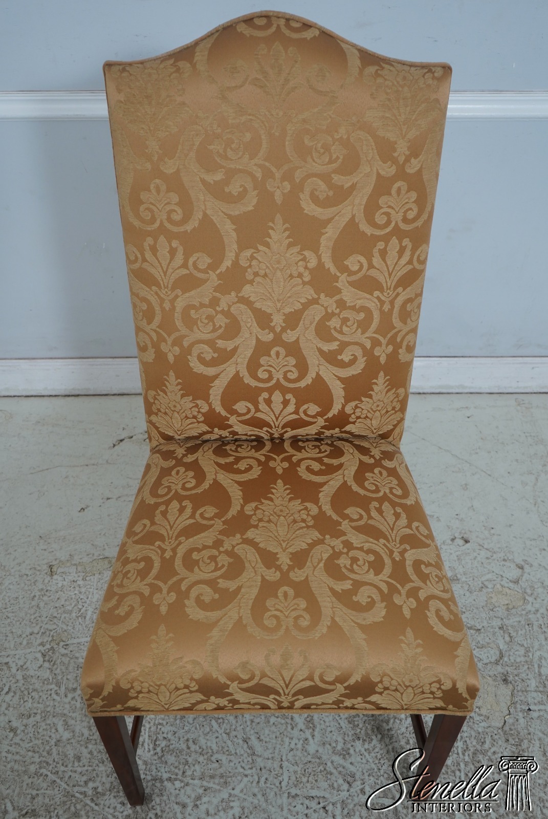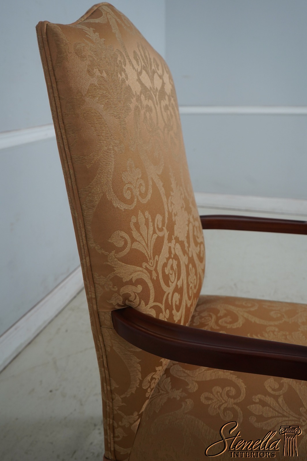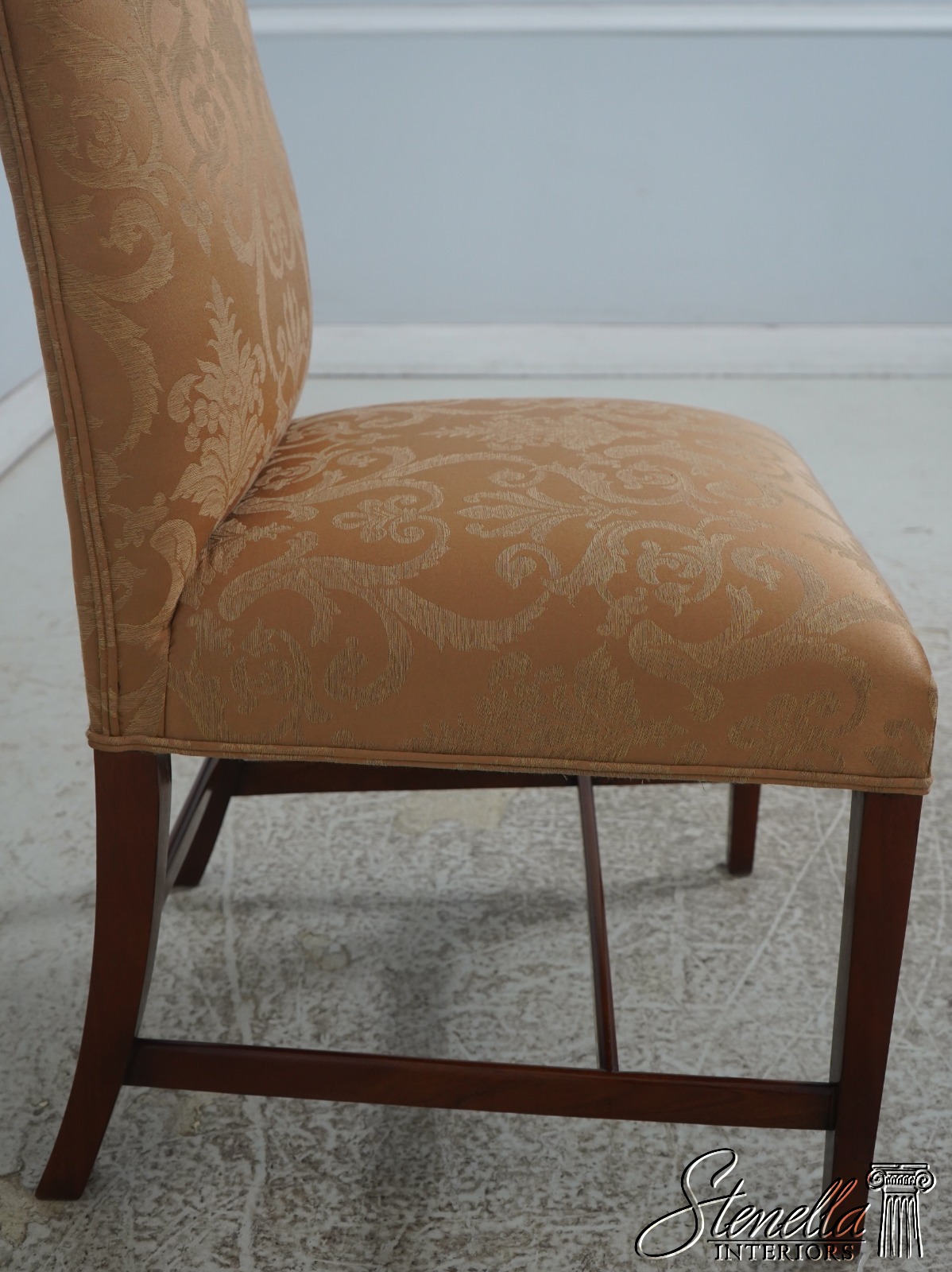 L70949: Set of 6 Mahogany Gold Damask Upholstered Dining Chairs