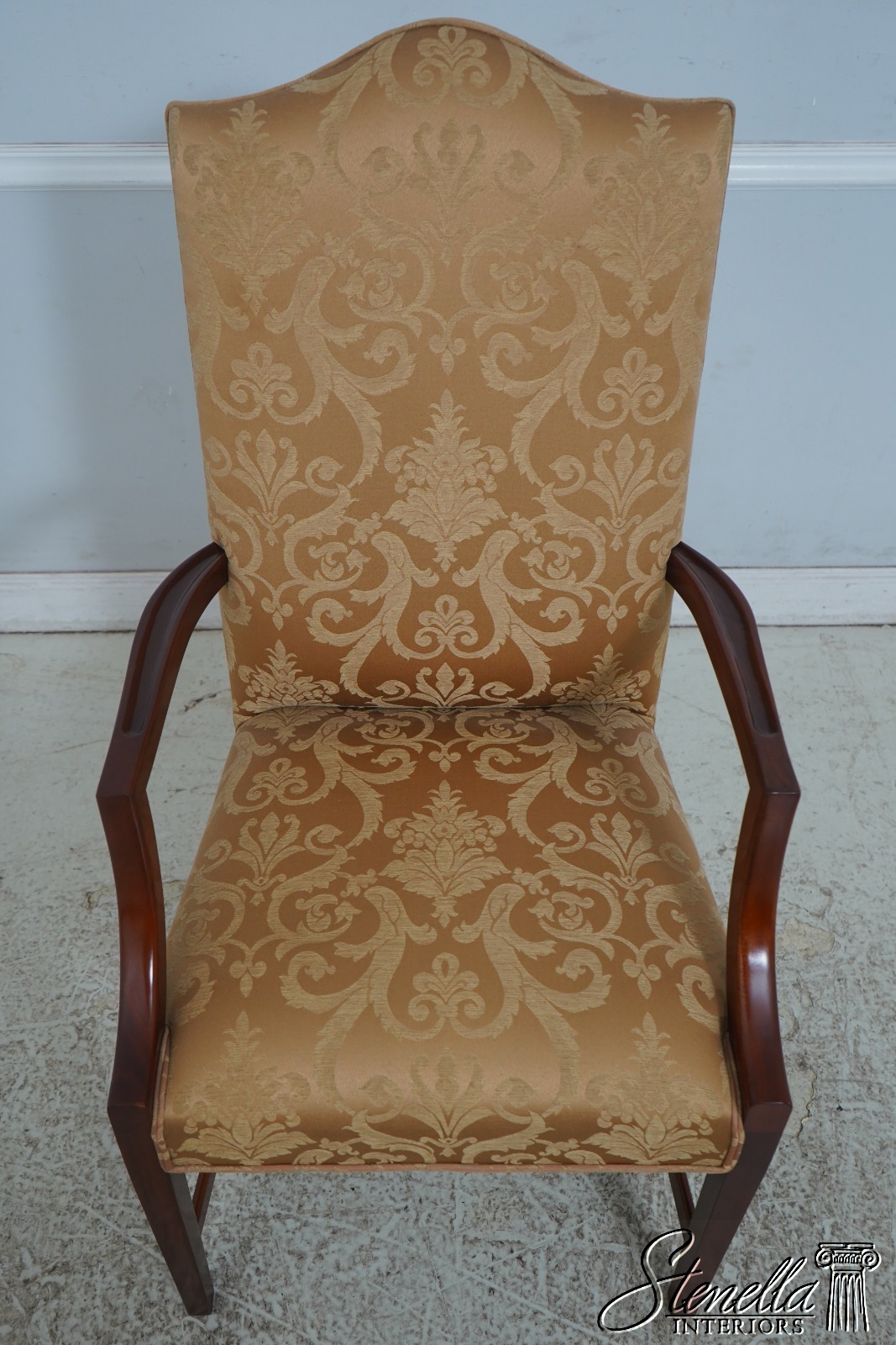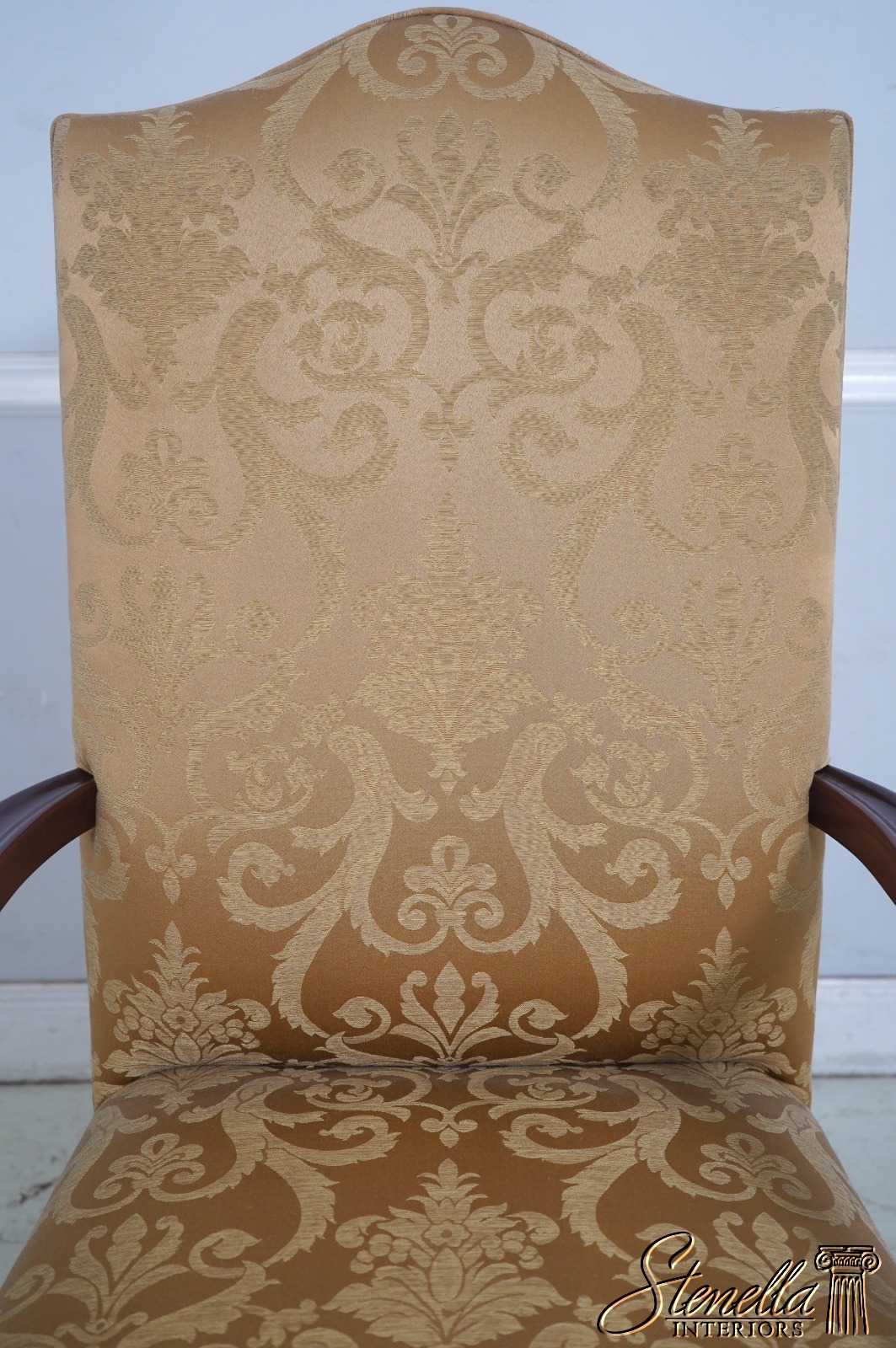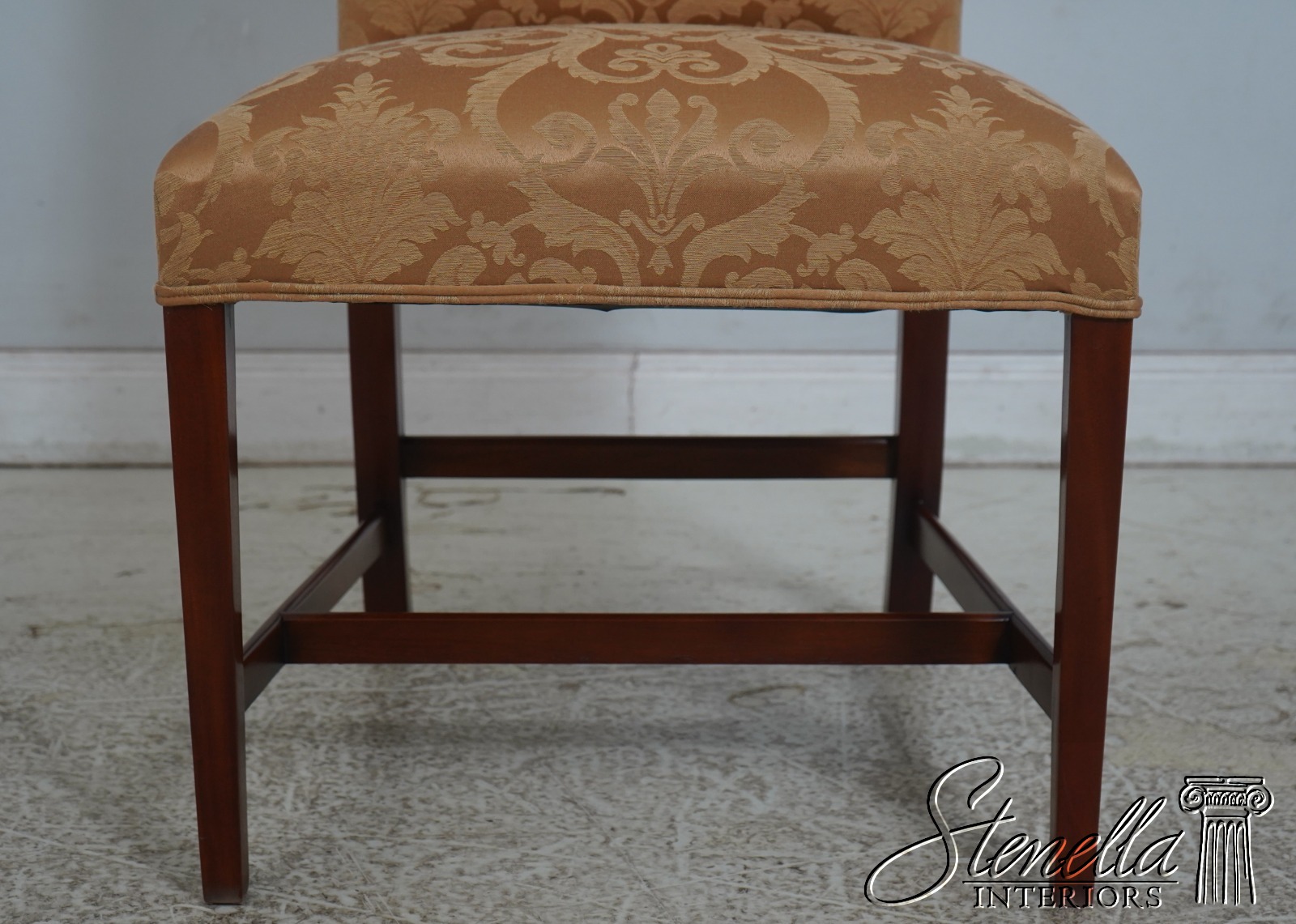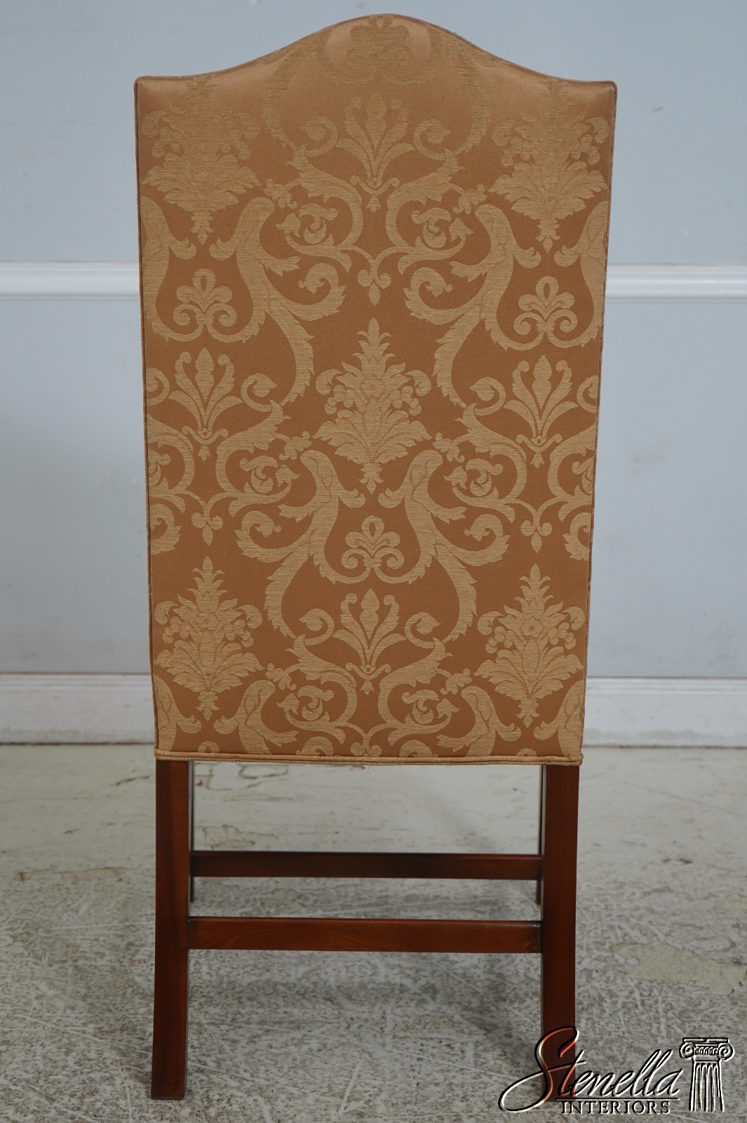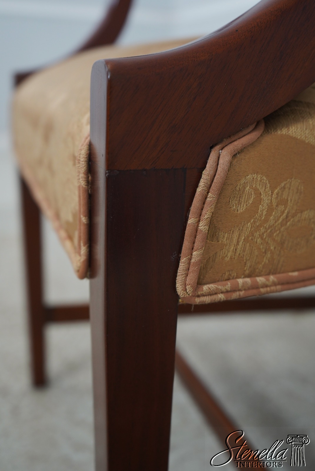 L70949: Set of 6 Mahogany Gold Damask Upholstered Dining Chairs