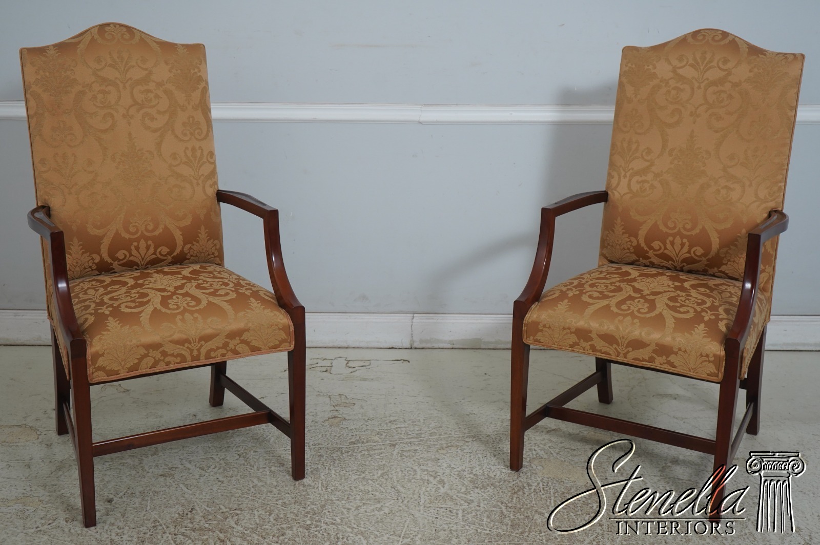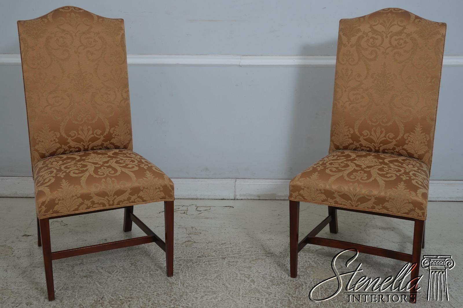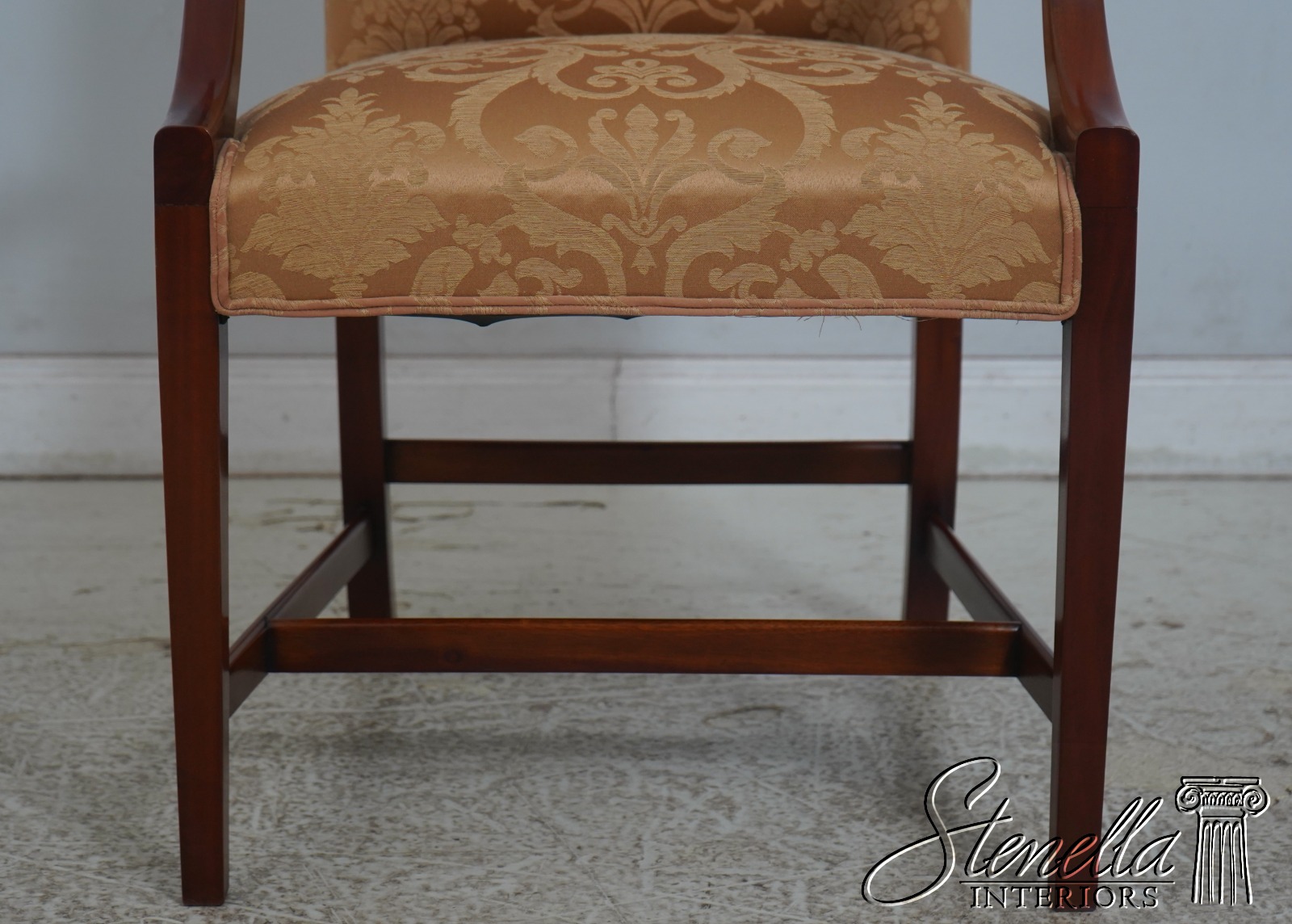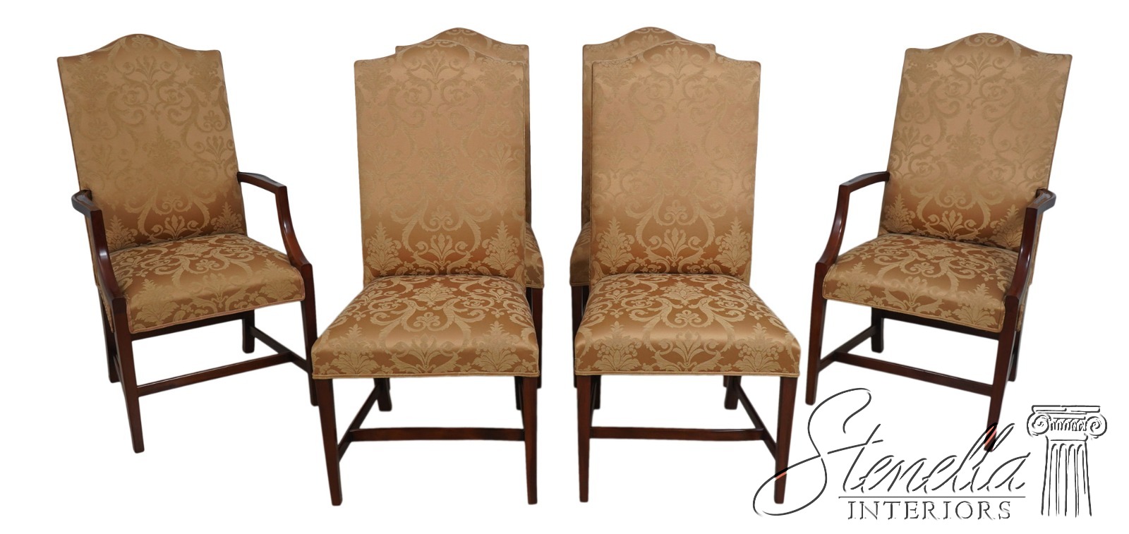 L70949: Set of 6 Mahogany Gold Damask Upholstered Dining Chairs