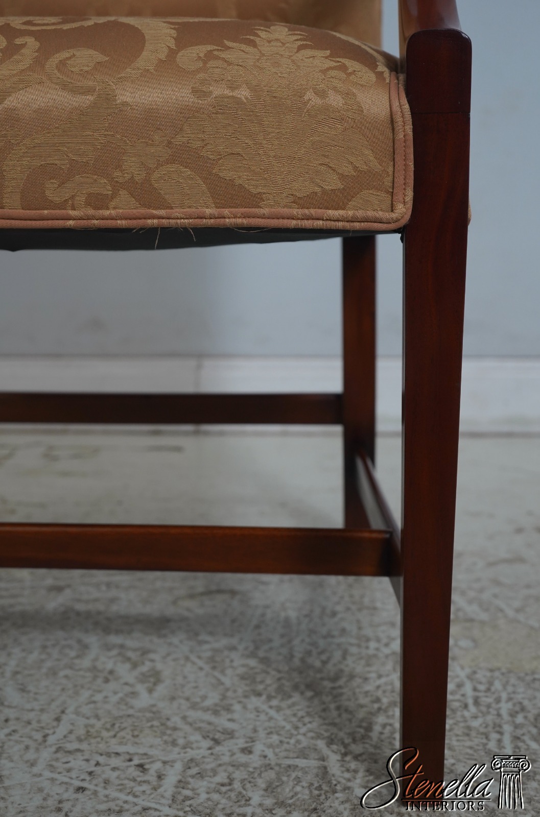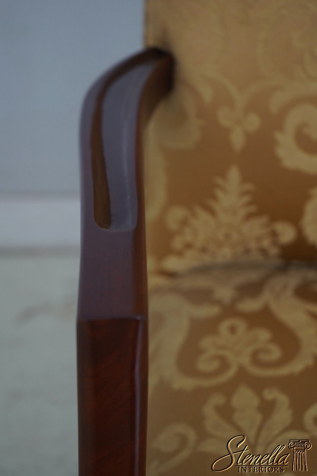 Details: Georgian Style Mahogany High Quality Construction Traditional Style Stretcher Base Frame Nice Gold Damask Upholstery Overall Clean Well Cared For Upholstery Un-Marked As To Manufacture Offered @ Fraction Original Retail Cost
