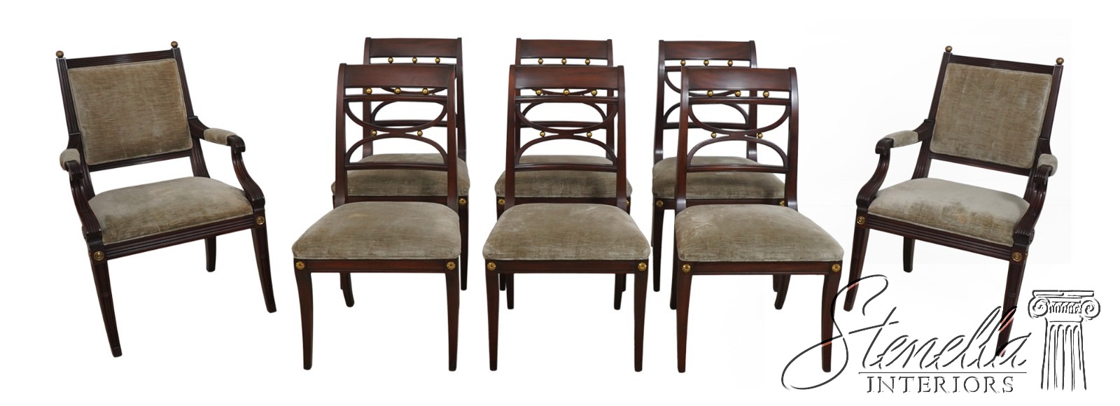 L70990: Set of 8 HENKEL HARRIS Model 106 Mahogany & Brass Dining Chairs