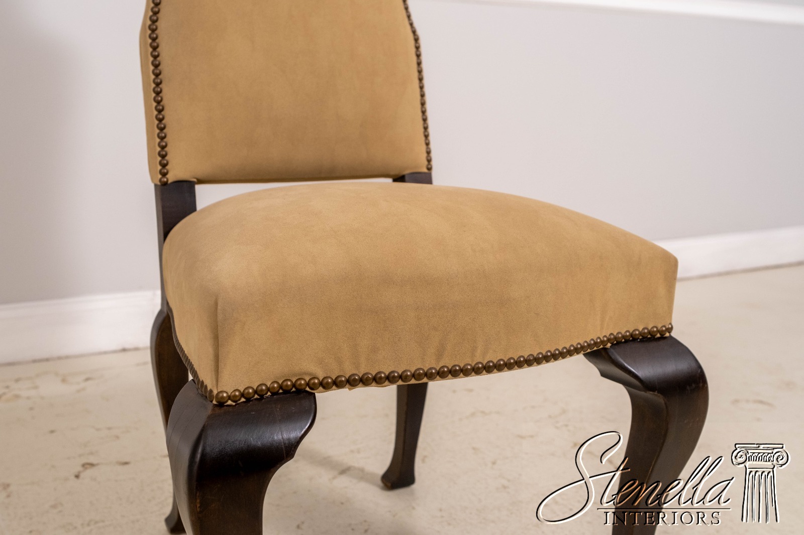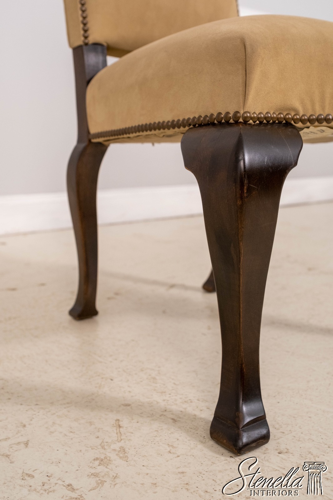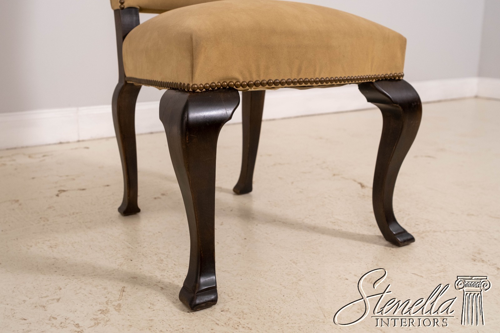 Details: High Quality Construction Queen Anne Legs & Pad Feet Chippendale Style Suede Like Covering Tack Head Trim Offered @ Fraction Original Retail Cost