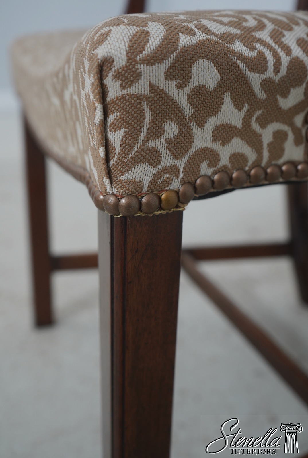 Details: Solid Mahogany Shapley Curved Seats Fine Carved Details High Quality Construction Stunning 18th C. English Form Vintage Set of Baker Chairs No Tags Or Labels Un-Marked as To Manufacture Professionally Reupholstered In Quality Upholstery Offered @ Fraction Original Retail Cost