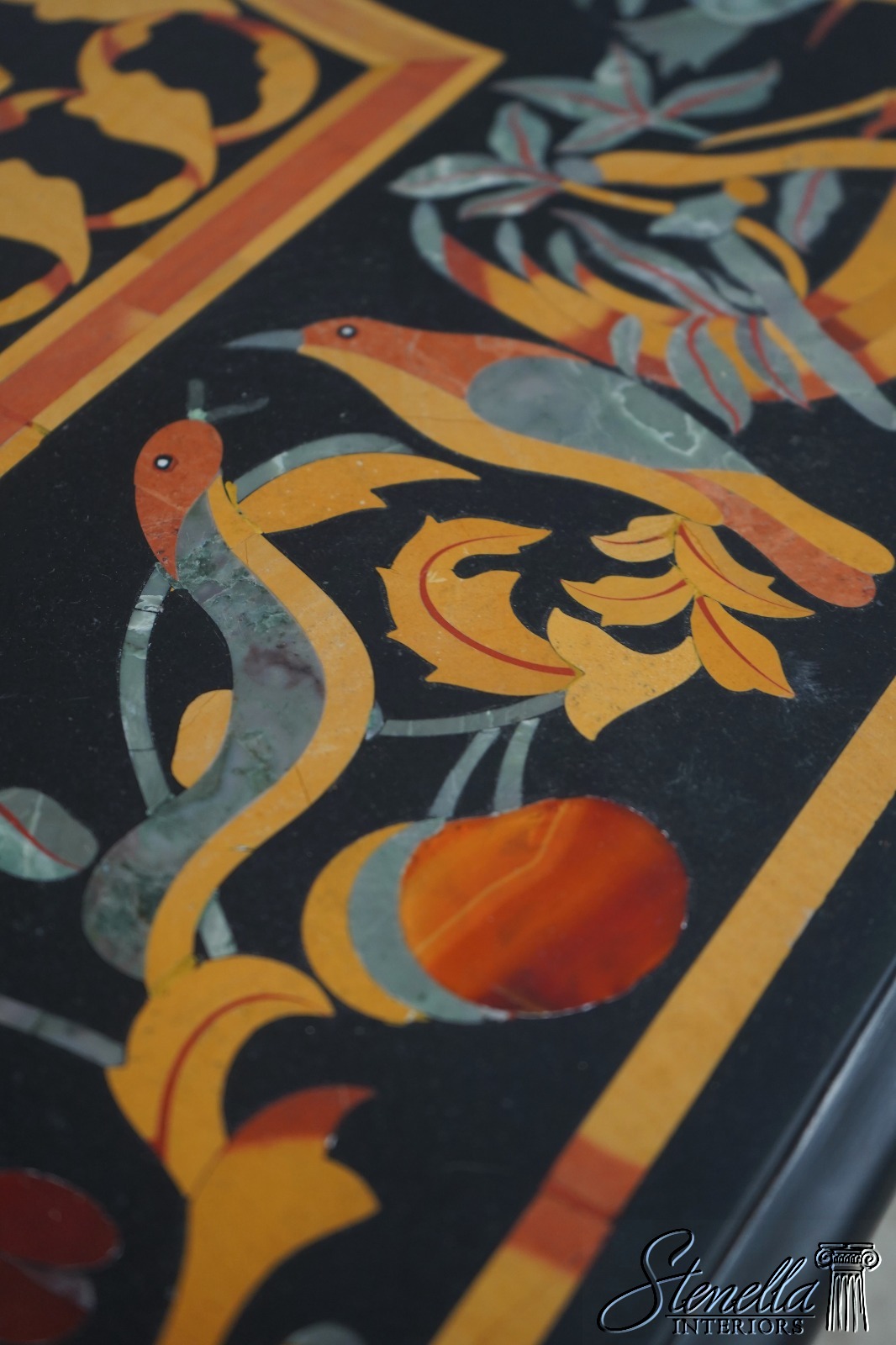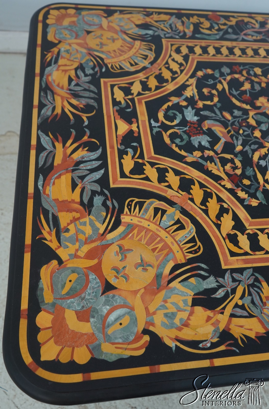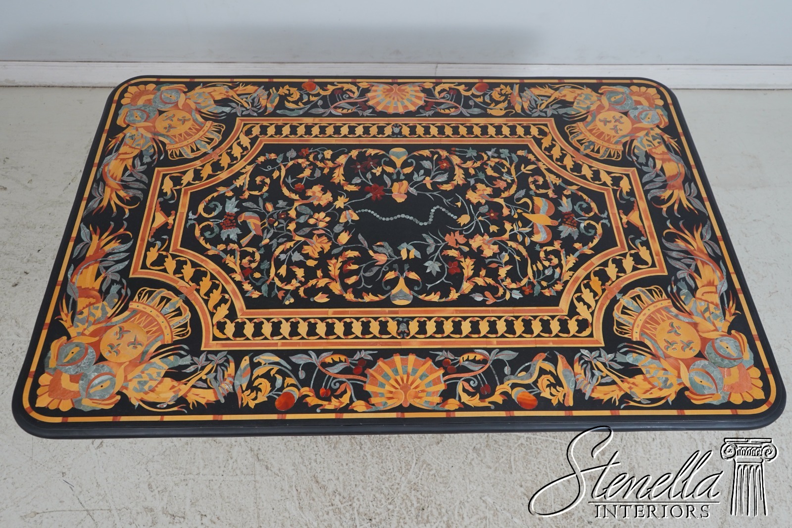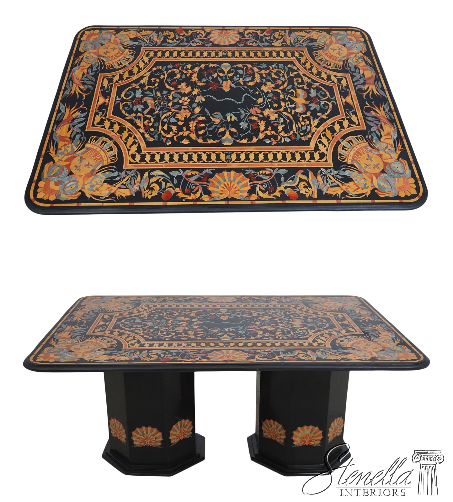 70630: PIETRA DURA Inlaid Marble Top Italian Dining Room Table