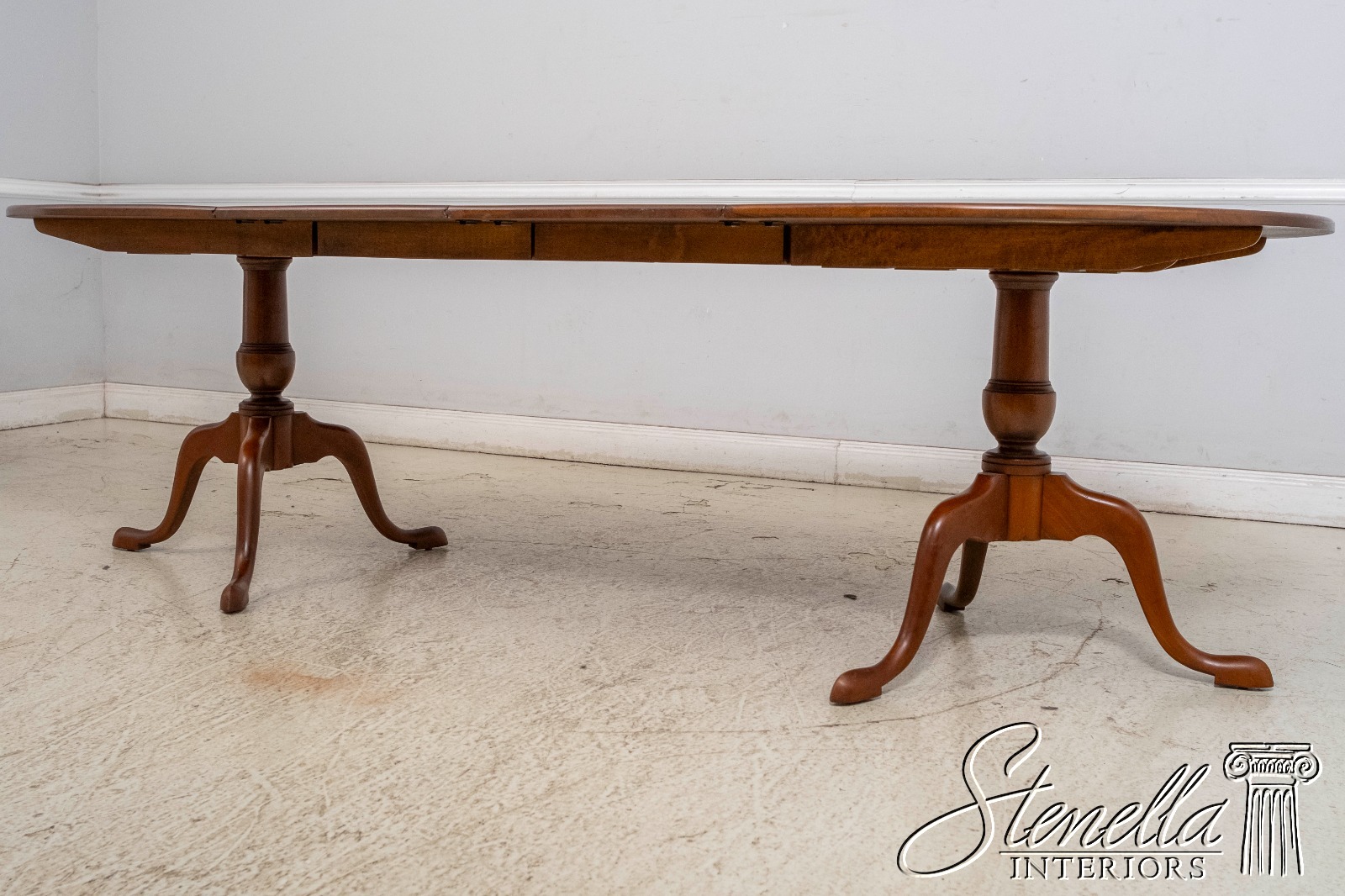 Details: Cherry Bench Made Hand Crafted High Quality Construction Queen Anne Legs & Pad Feet Rich High Sheen Finish Country Style Double Pedestals Tilt Ends Offered @ Fraction Original Retail Cost