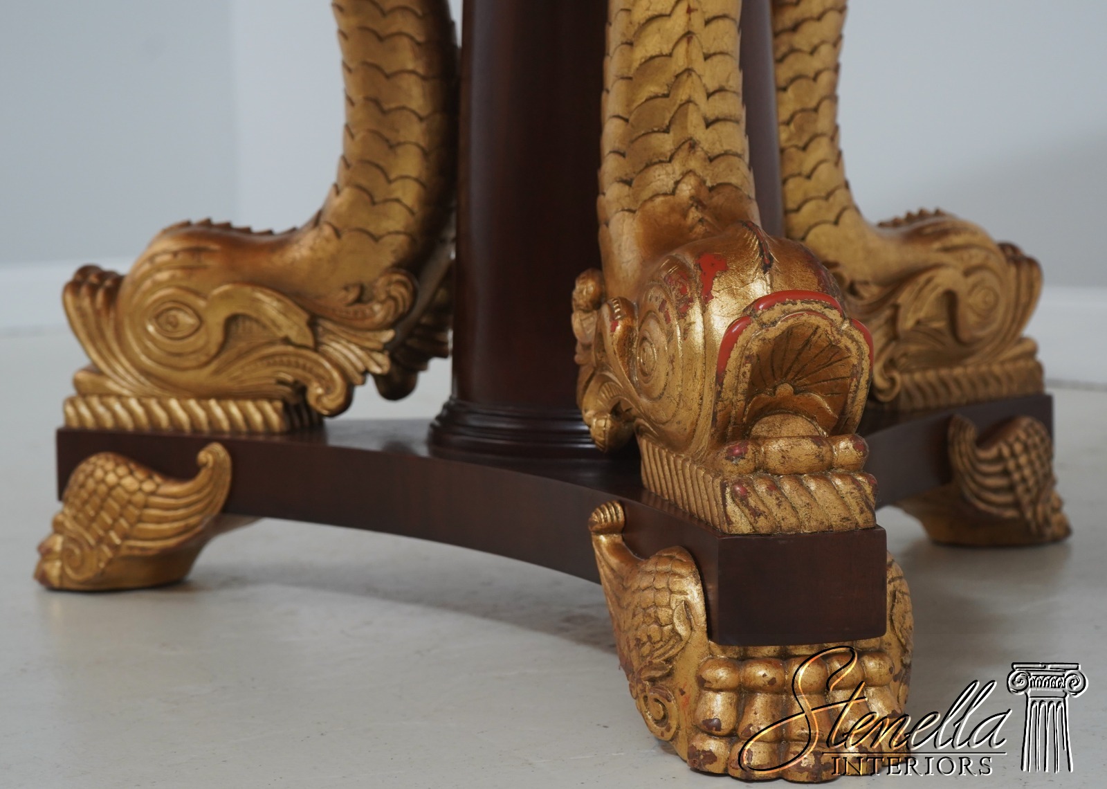 Details: Gorgeous Figural Mahogany Top Fine Carved Details High Quality Construction Carved Gilt Dolphin Base Neoclassical Style Un-Marked As To Manufacture Offered @ Fraction Original Retail Cost