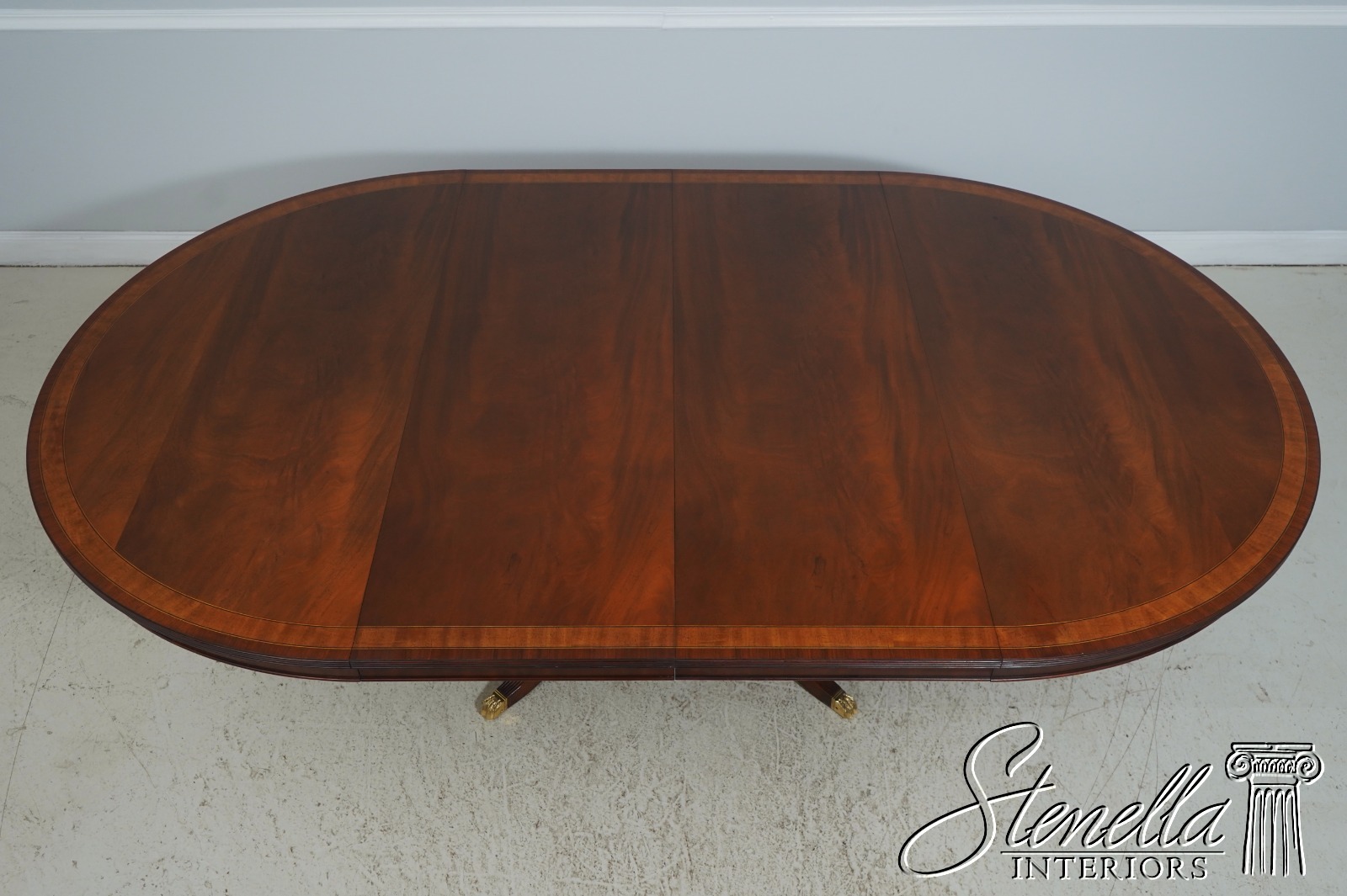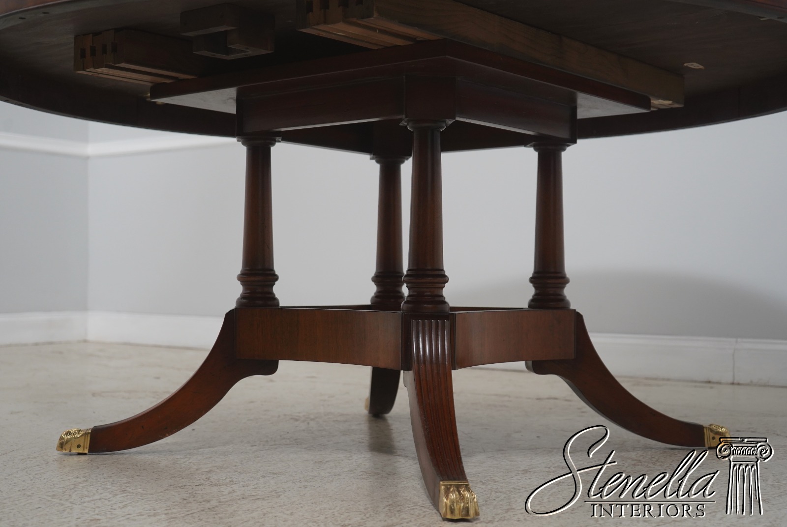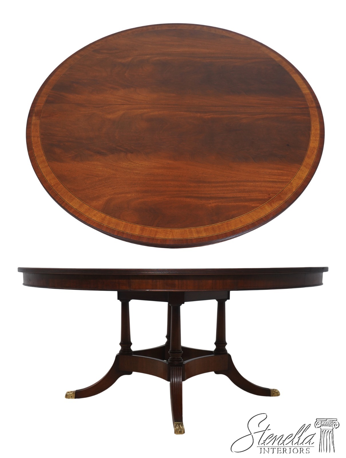 Details: By Wayne Pratt Mahogany Ball & Claw Feet Brass Capped Feet High Quality Construction Large Impressive Table Nice Inlay Work Throughout Traditional Style Pedestal Base w. Leg Supports Satinwood Inlays Offered @ Fraction Original Retail Cost