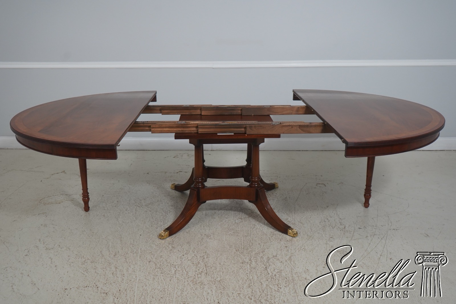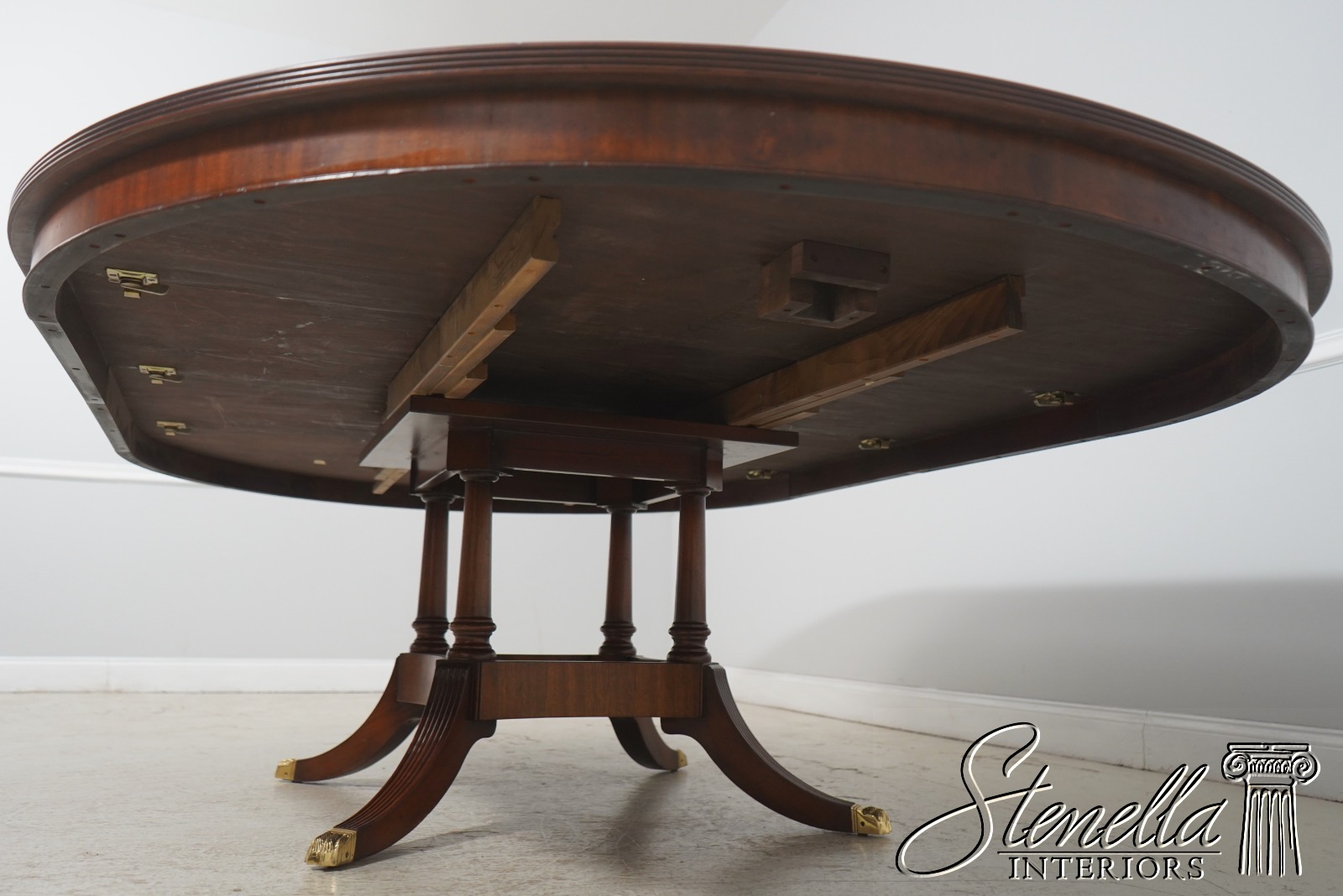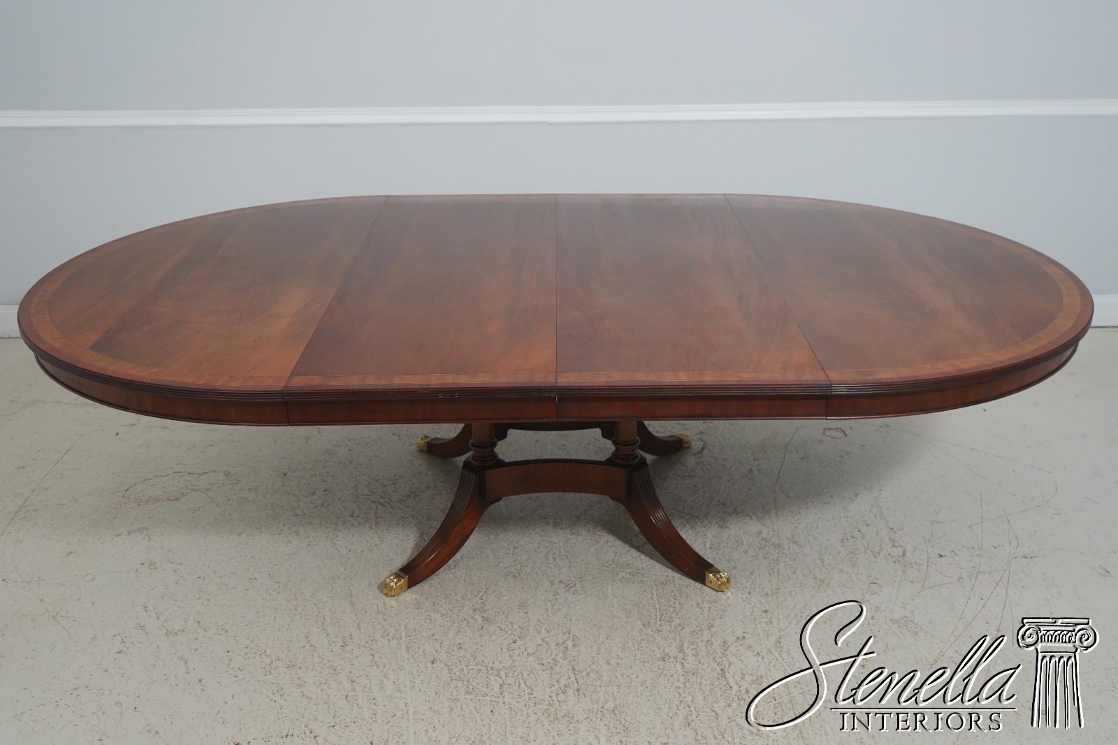 Details: By Wayne Pratt Mahogany Ball & Claw Feet Brass Capped Feet High Quality Construction Large Impressive Table Nice Inlay Work Throughout Traditional Style Pedestal Base w. Leg Supports Satinwood Inlays Offered @ Fraction Original Retail Cost