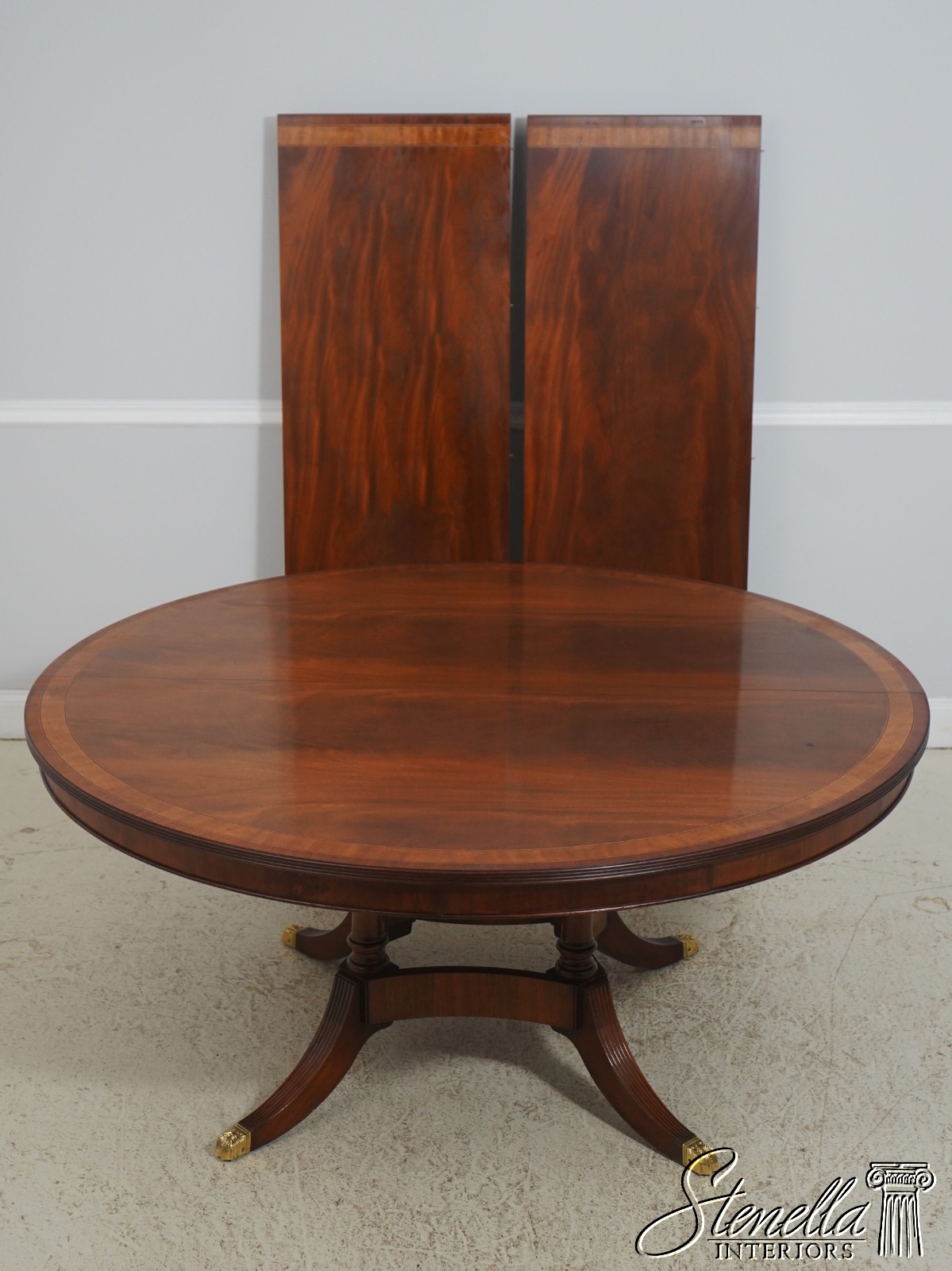 L71108: Vintage Round Mahogany Inlaid Dining Table w. 2 Leaves