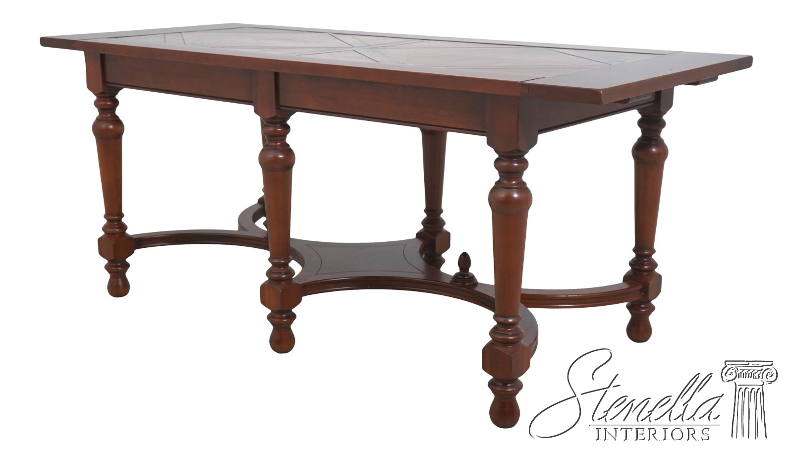 Details: Factory Distressed Cherry w. Burl Elm Inlaid Top Quality Construction Can Be Used As Small Dining Table Or Library Table Offered @ Fraction Original Retail Cost