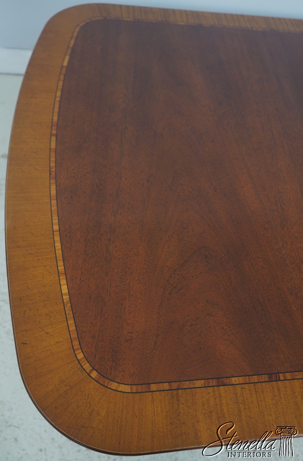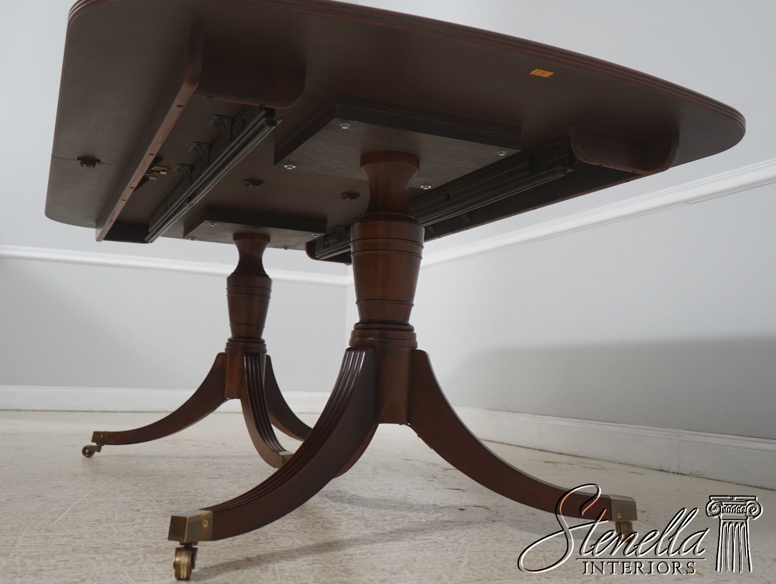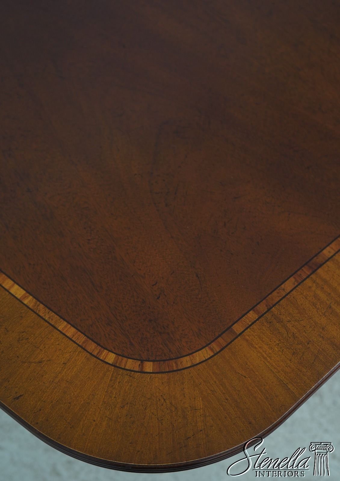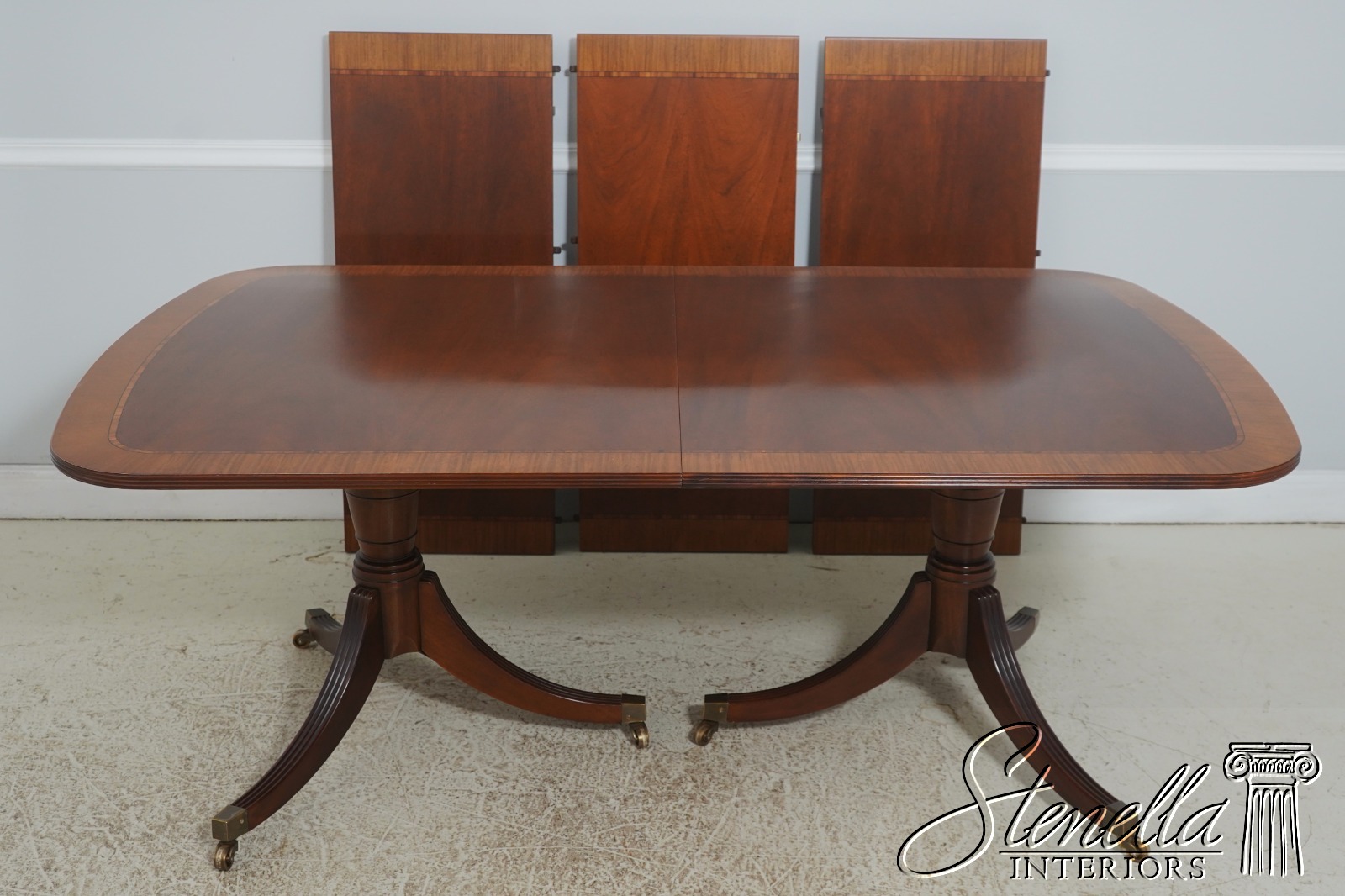Details: Bill Scofield Collection Georgian Style Mahogany Brass Capped Feet & Casters High Quality Construction Large Impressive Table Nice Inlay Work Throughout Traditional Style Double Pedestal Reeded Edge Banded Line Inlay Satinwood Cross Banded Borders Offered @ Fraction Original Retail Cost