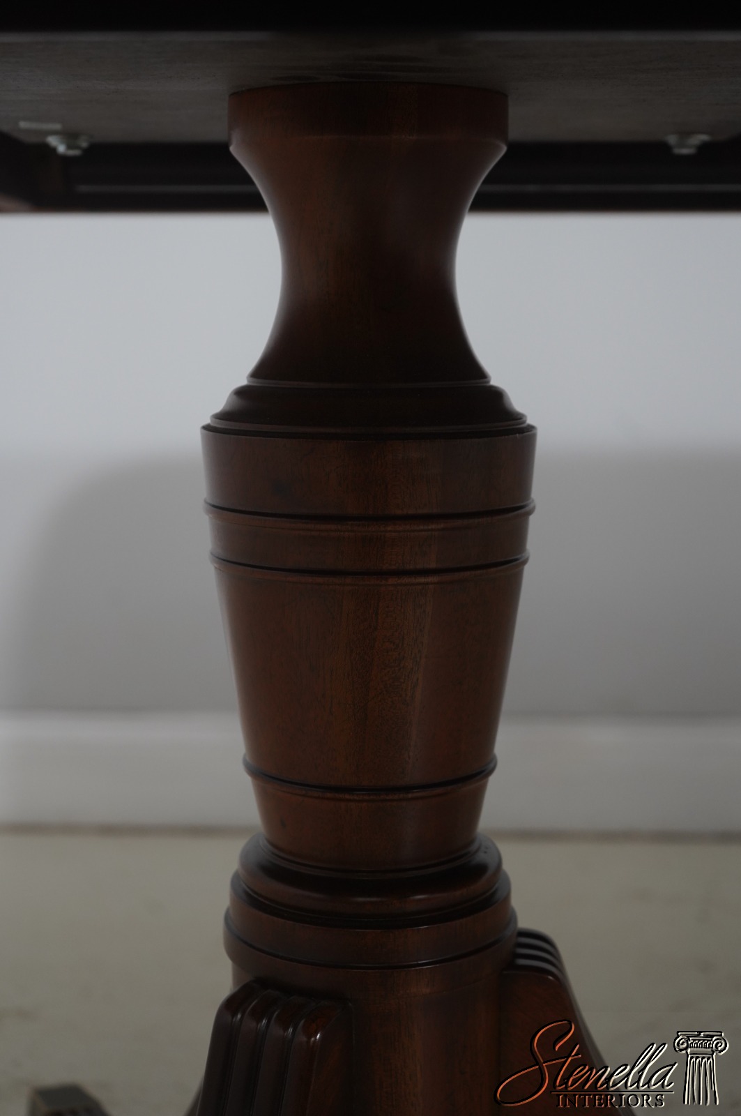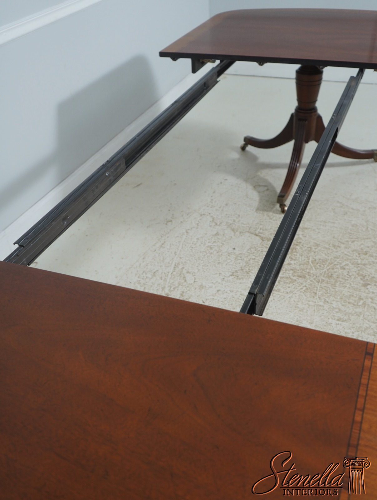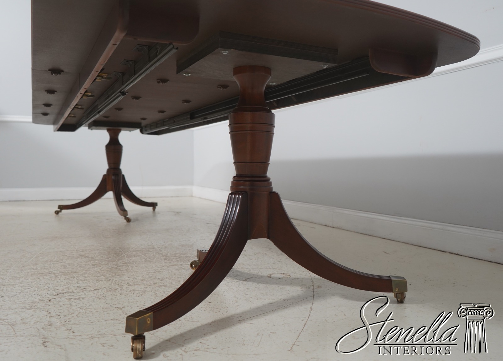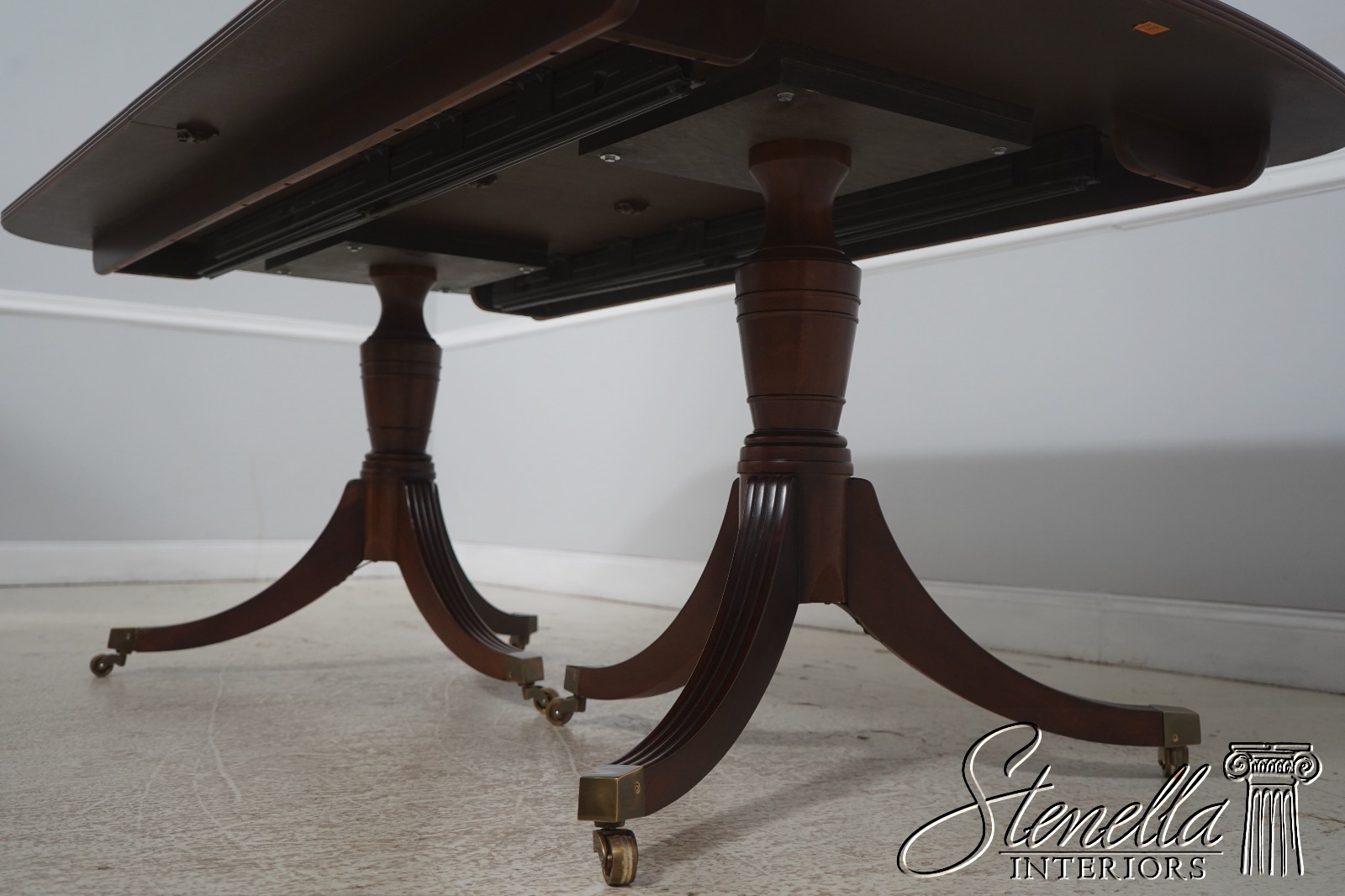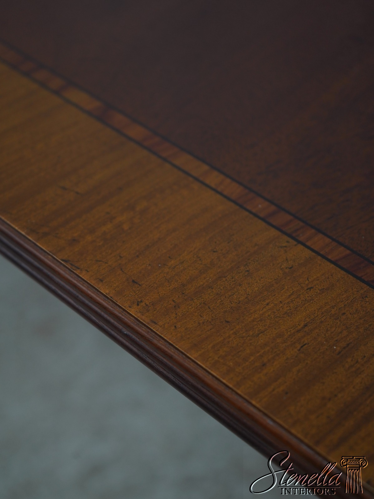 Details: Bill Scofield Collection Georgian Style Mahogany Brass Capped Feet & Casters High Quality Construction Large Impressive Table Nice Inlay Work Throughout Traditional Style Double Pedestal Reeded Edge Banded Line Inlay Satinwood Cross Banded Borders Offered @ Fraction Original Retail Cost