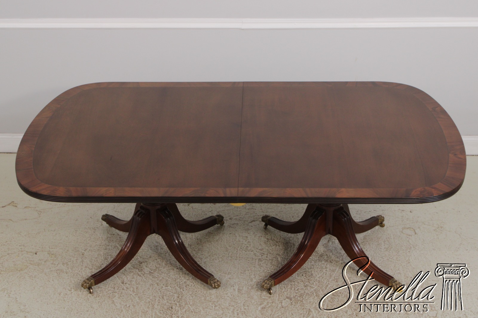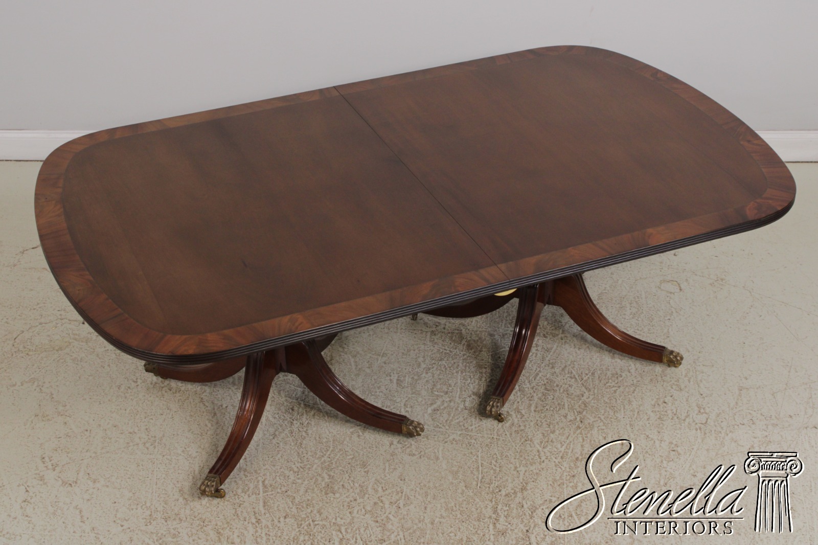 L72157: SMITH & WATSON Banded Inlaid Mahogany Pedestal Double Dining Table
