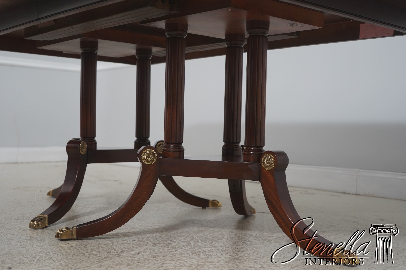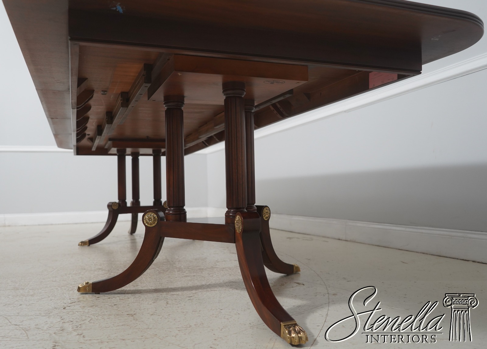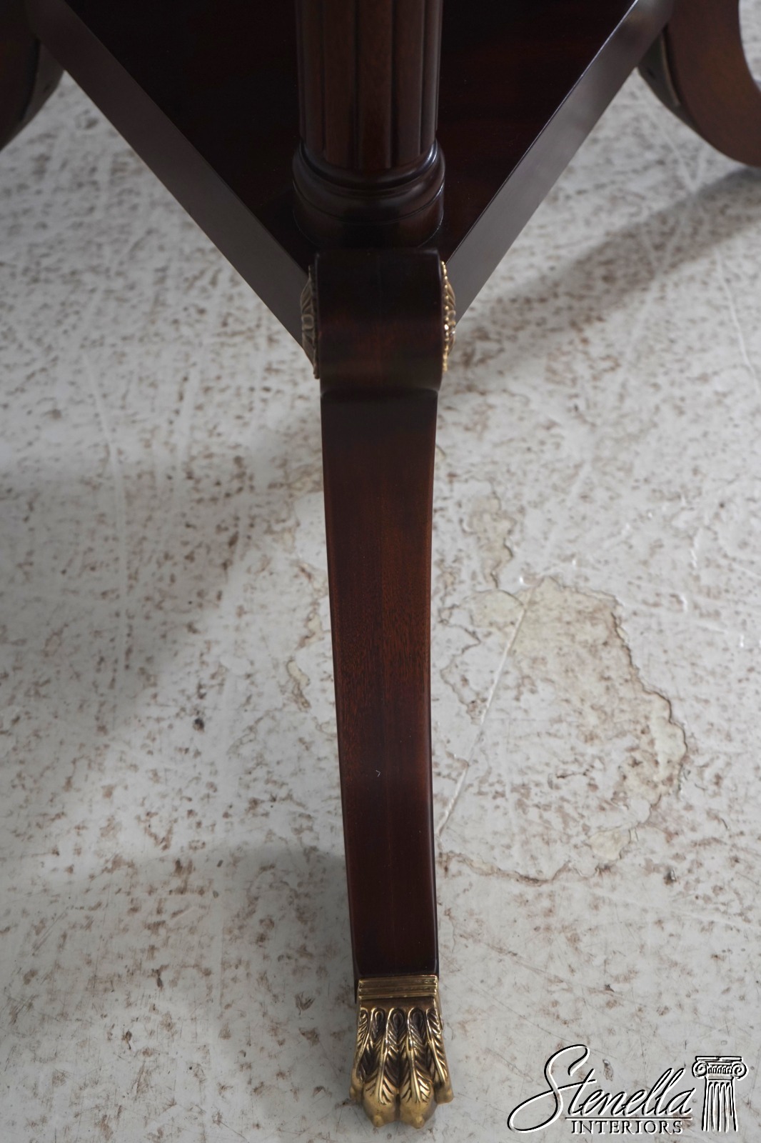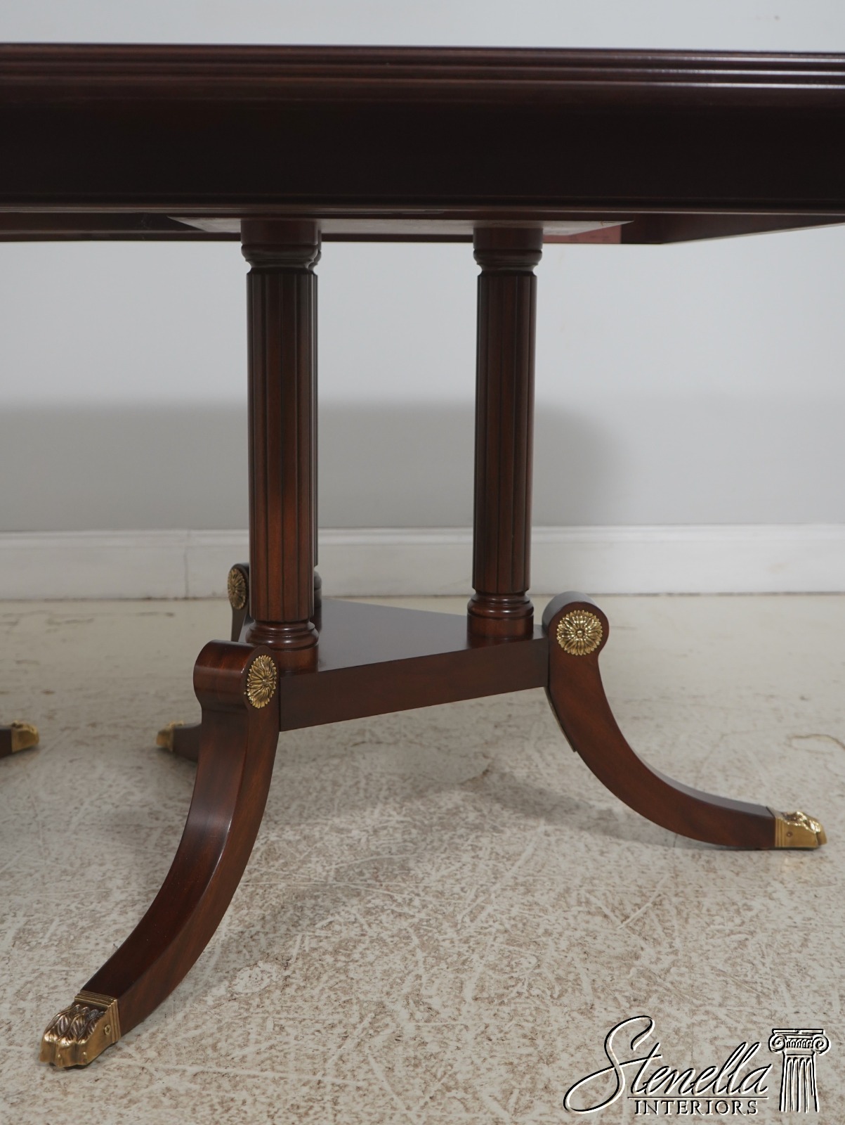 Details: Finish Number 29 Model 2276 Mahogany Ball And Claw Feet Brass Capped Feet Fine Carved Details High Quality Construction Regency Pedestal Base Large Impressive Table Nice Inlay Work Throughout Solid Brass Hardware Fluted Columns Brass Medallion Accents Gorgeous Figural Mahogany Top Offered At A Fraction Of The Original Retail Cost