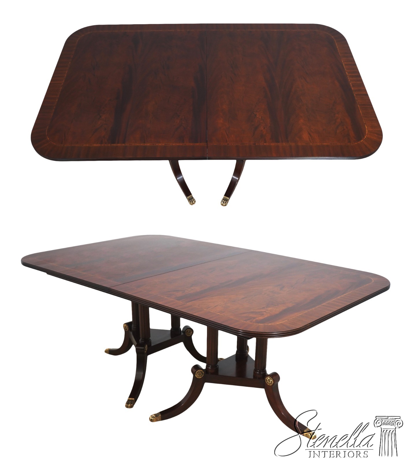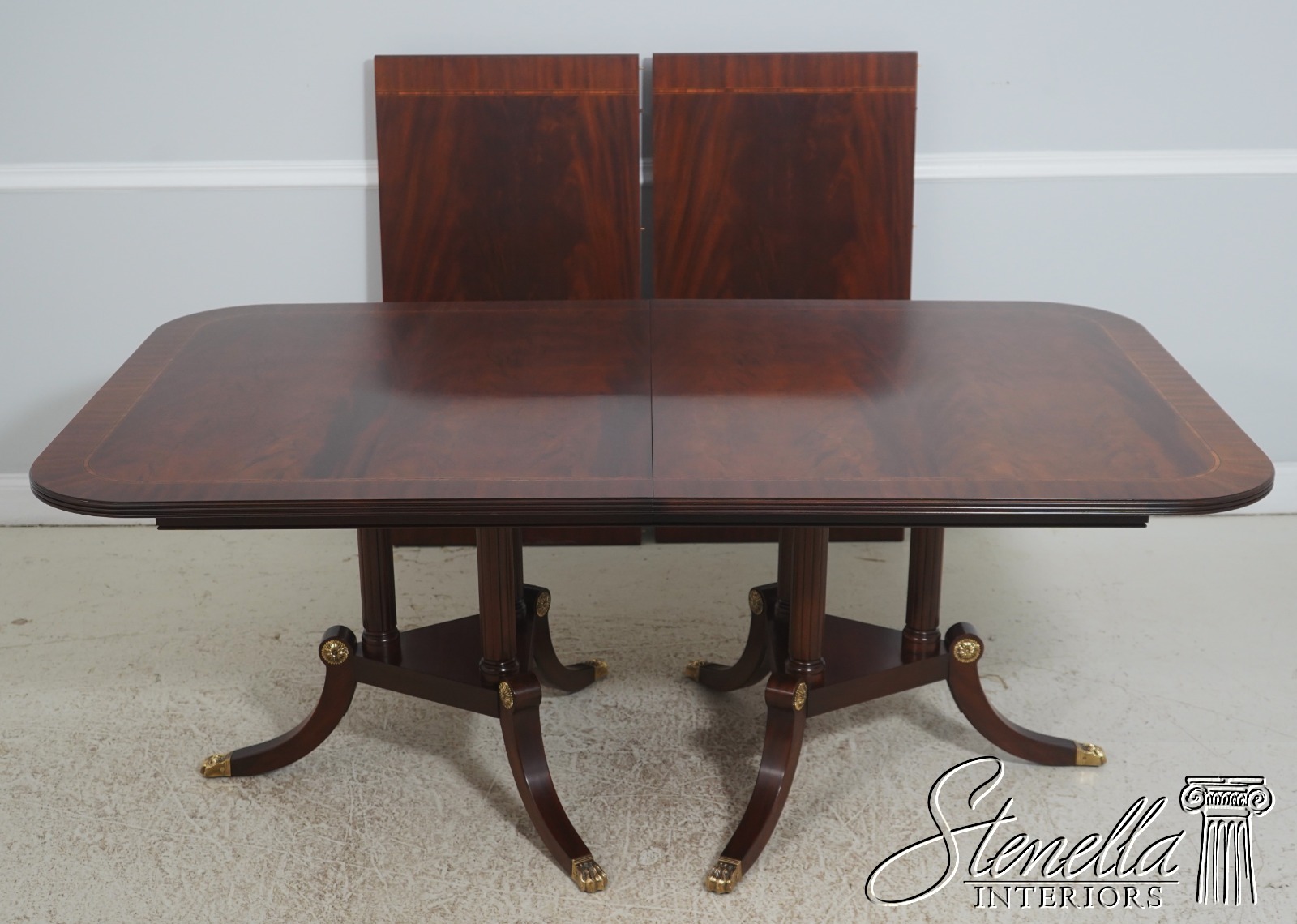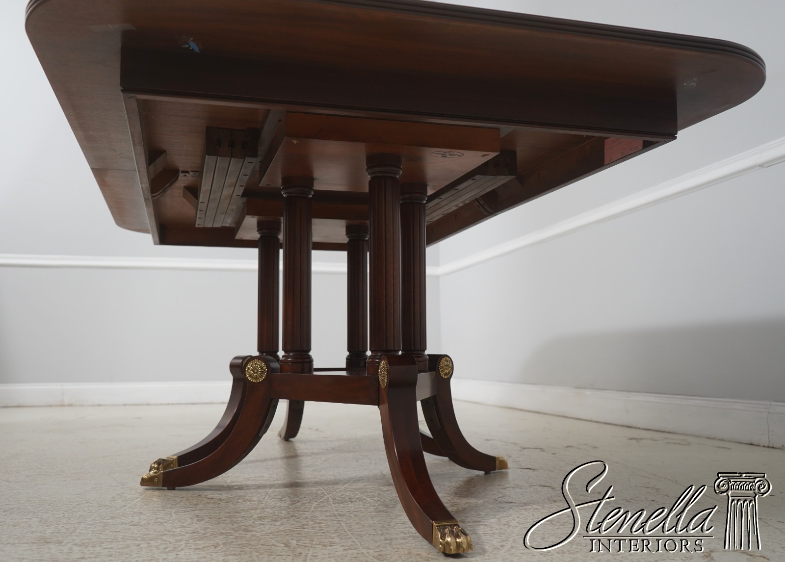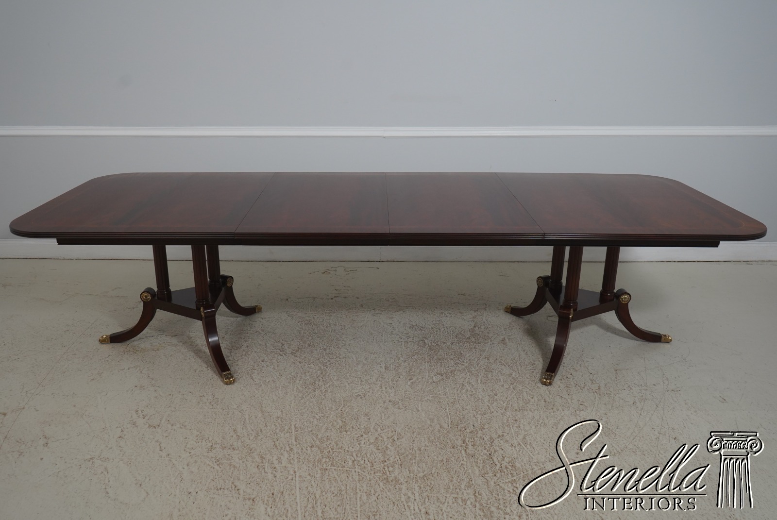Details: Finish Number 29 Model 2276 Mahogany Ball And Claw Feet Brass Capped Feet Fine Carved Details High Quality Construction Regency Pedestal Base Large Impressive Table Nice Inlay Work Throughout Solid Brass Hardware Fluted Columns Brass Medallion Accents Gorgeous Figural Mahogany Top Offered At A Fraction Of The Original Retail Cost