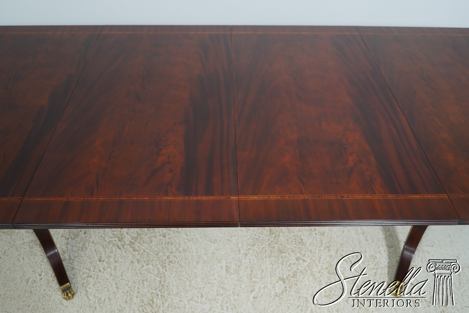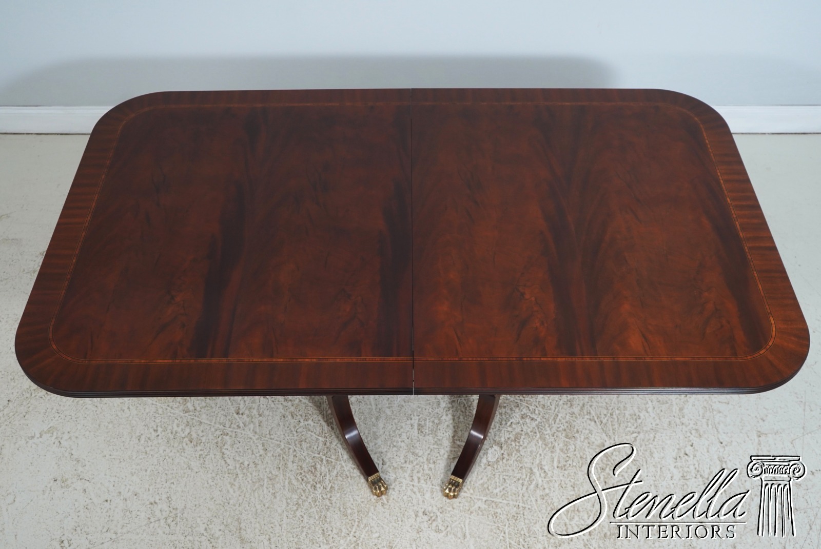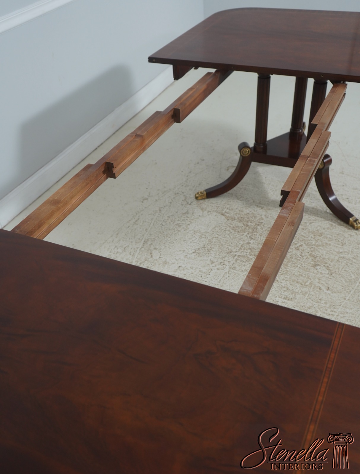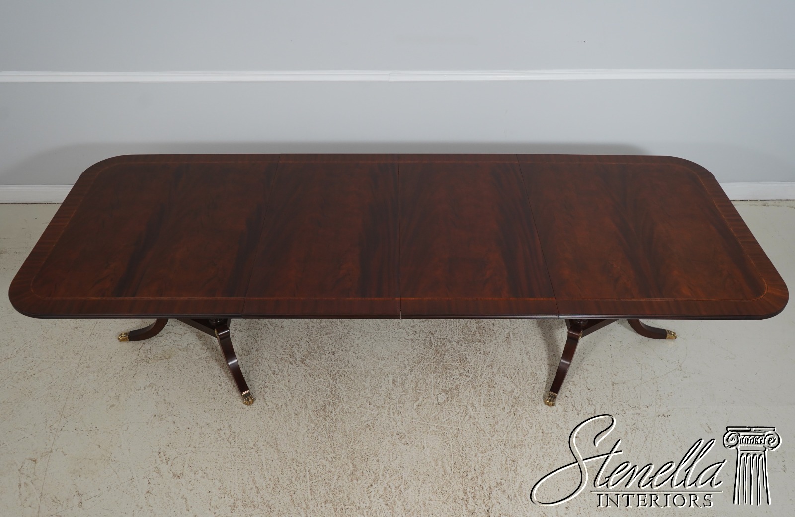 Details: Finish Number 29 Model 2276 Mahogany Ball And Claw Feet Brass Capped Feet Fine Carved Details High Quality Construction Regency Pedestal Base Large Impressive Table Nice Inlay Work Throughout Solid Brass Hardware Fluted Columns Brass Medallion Accents Gorgeous Figural Mahogany Top Offered At A Fraction Of The Original Retail Cost