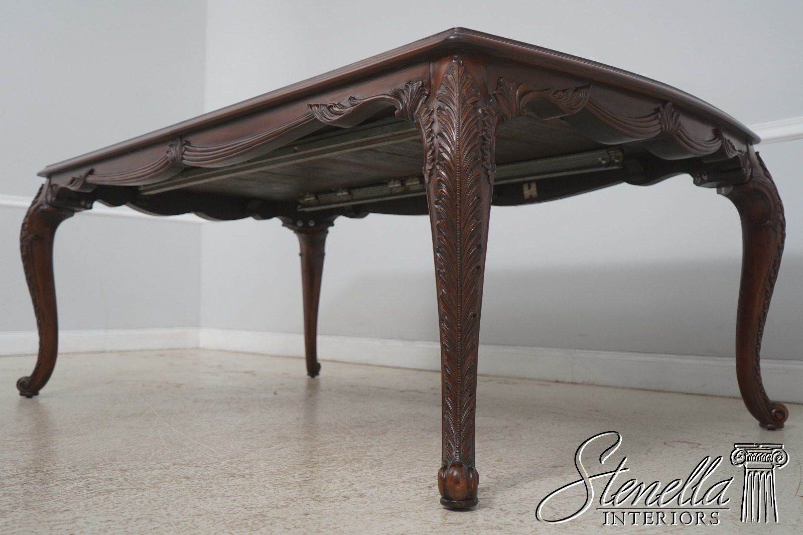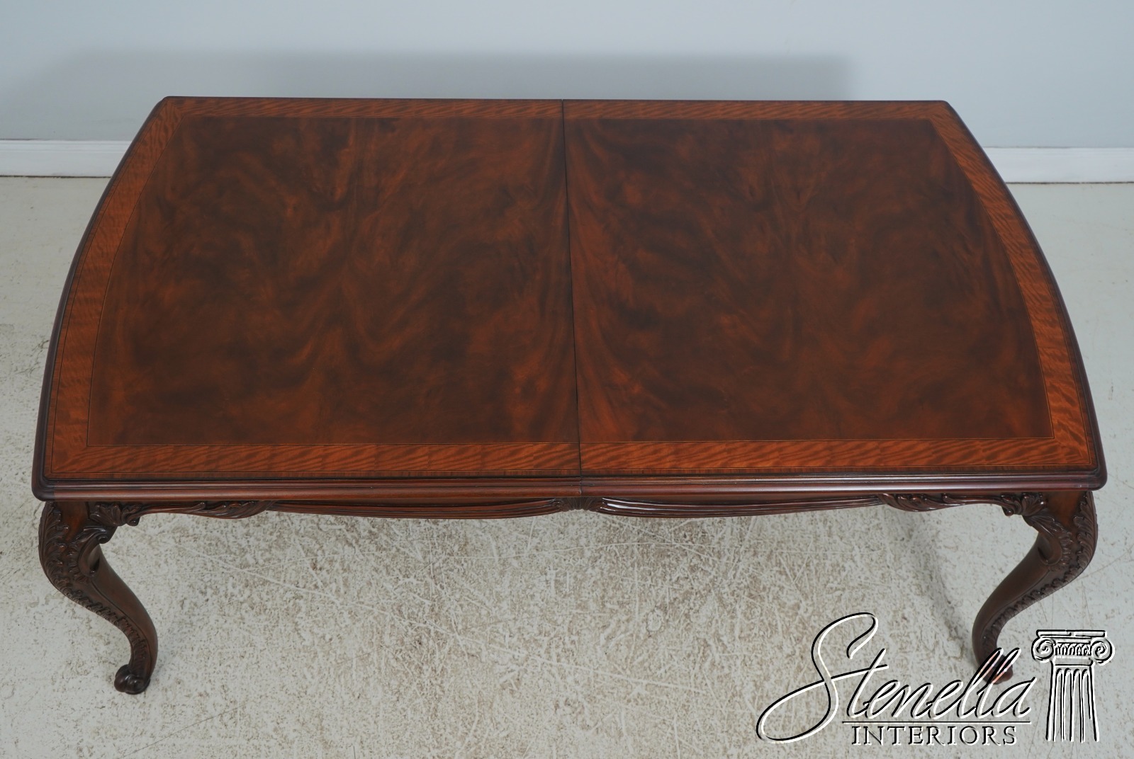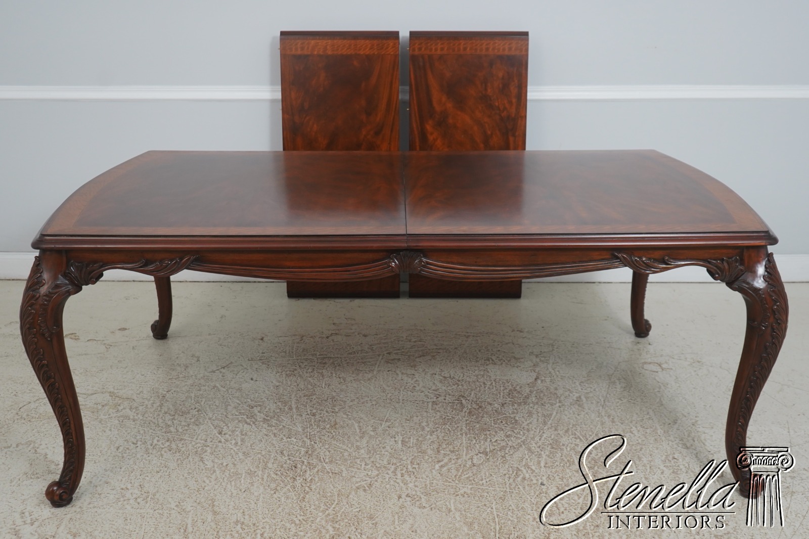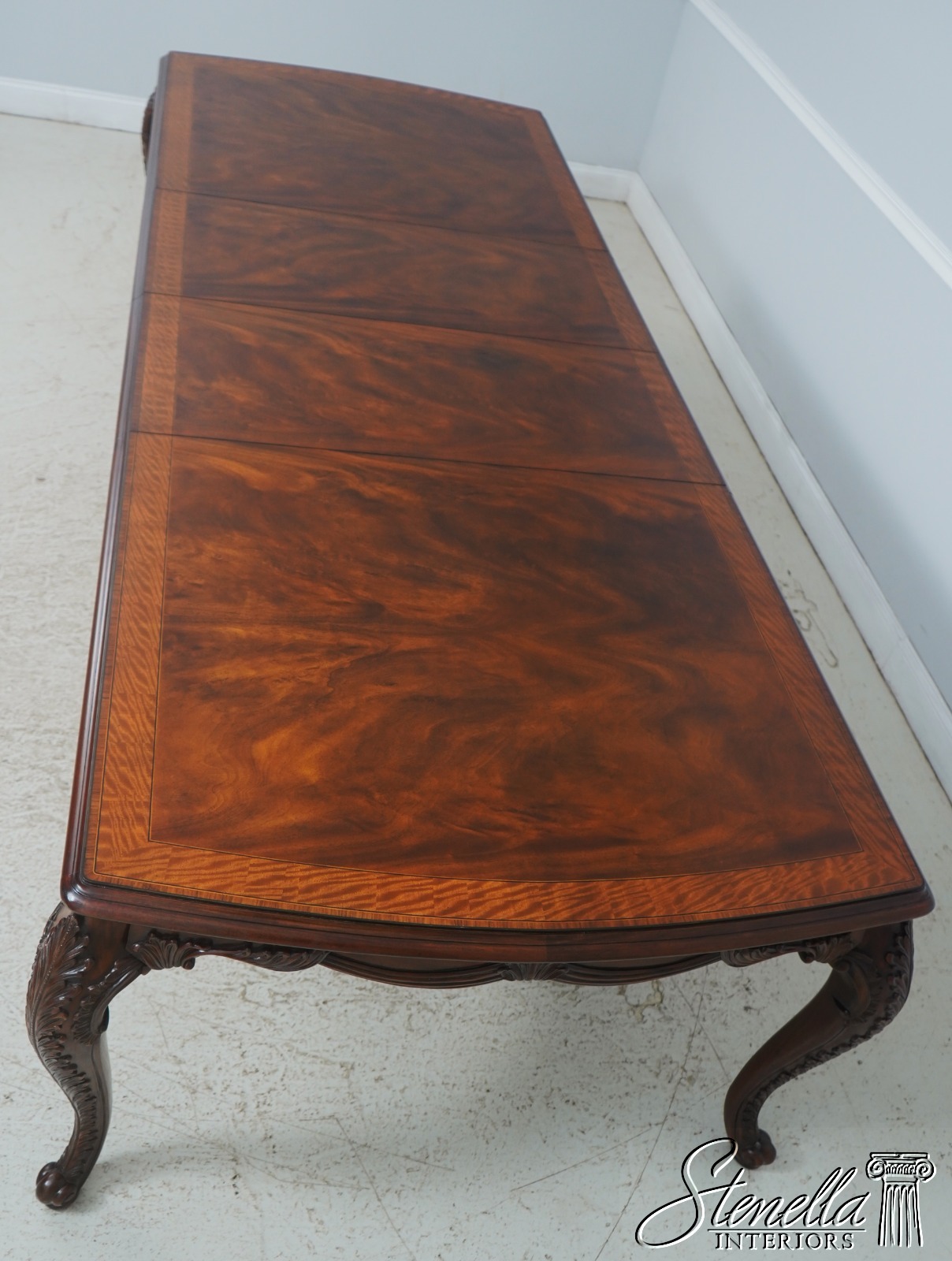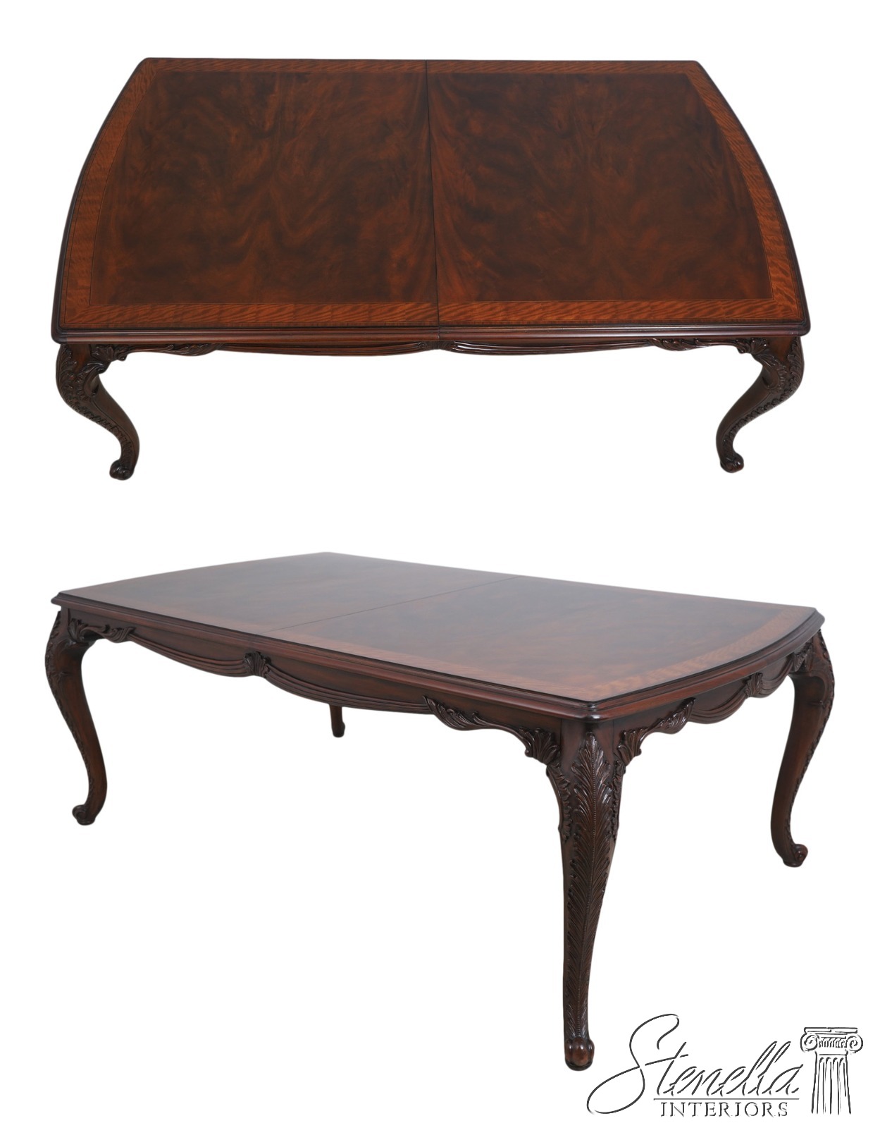 Details: Mahogany Fine Carved Details High Quality Construction Large Impressive Table Nice Inlay Work Throughout Queen Anne Legs & Pad Feet French Style Gorgeous Figural Mahogany Top Scroll Feet Offered @ Fraction Original Retail Cost