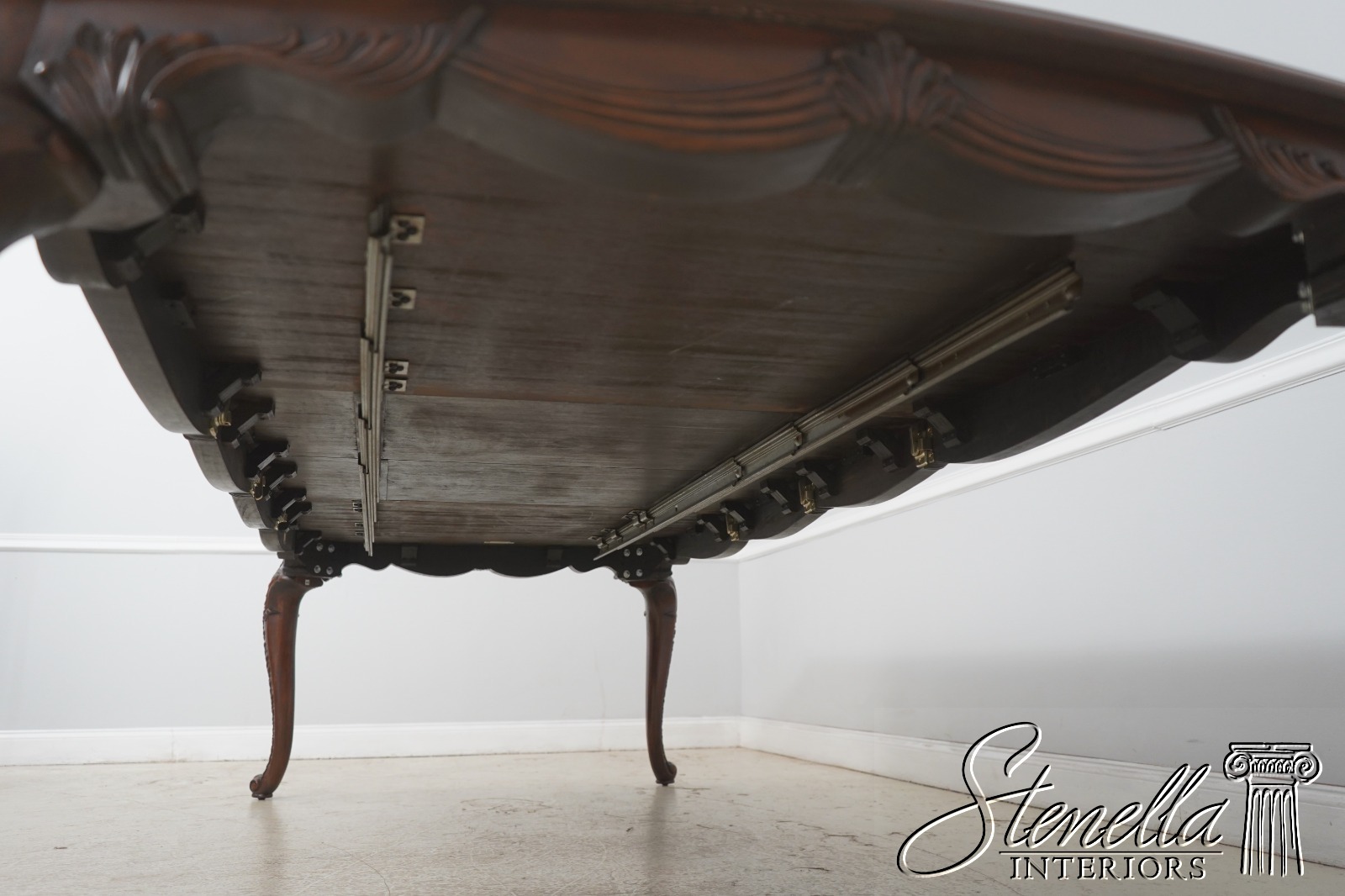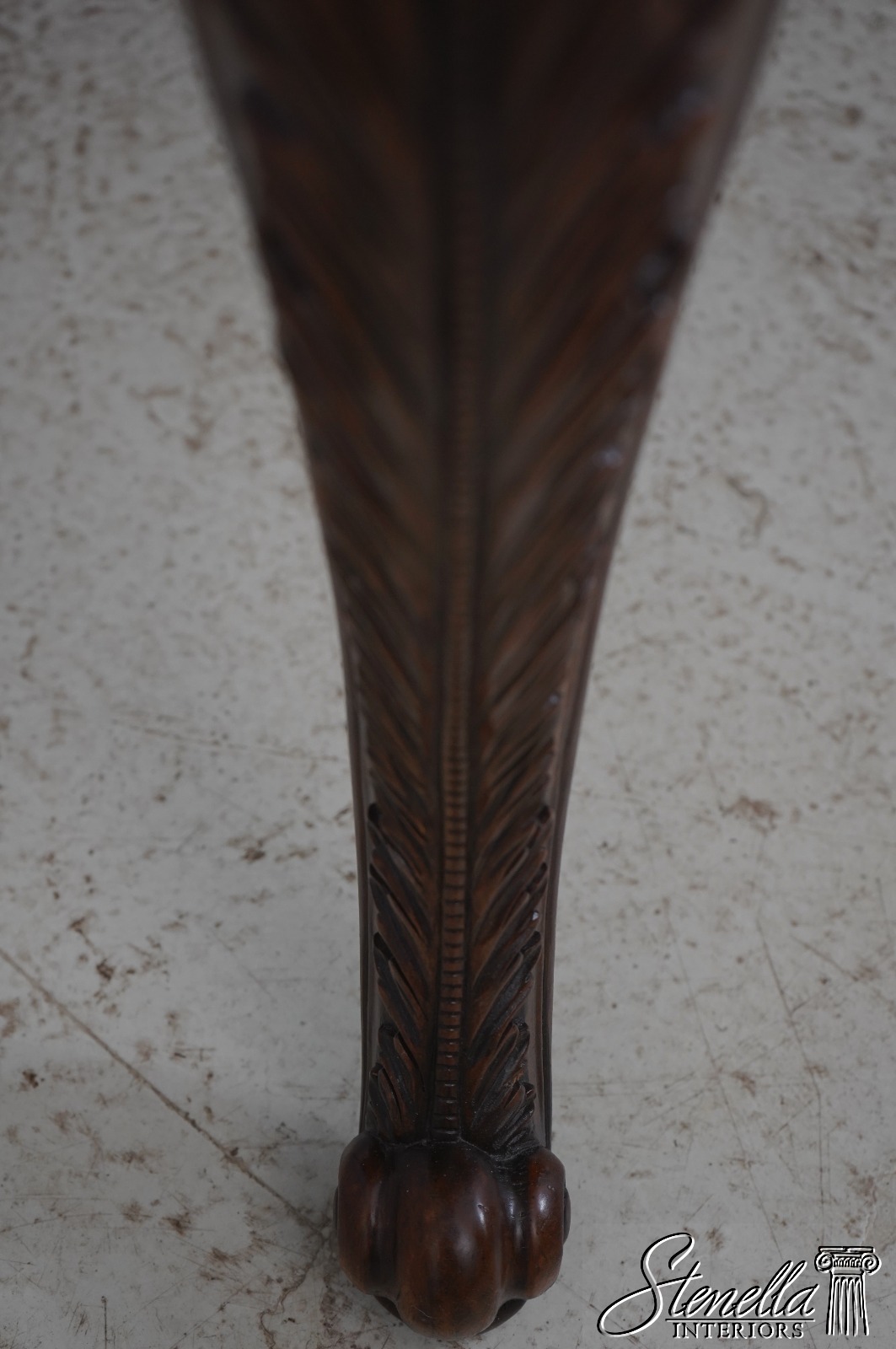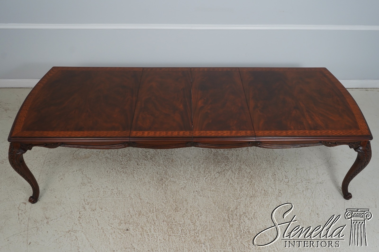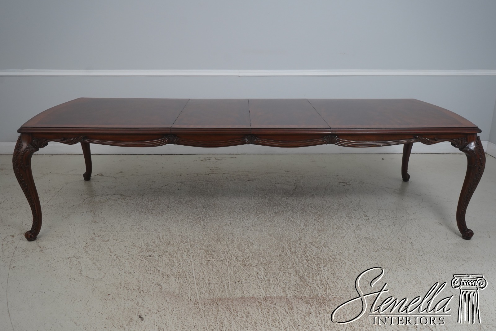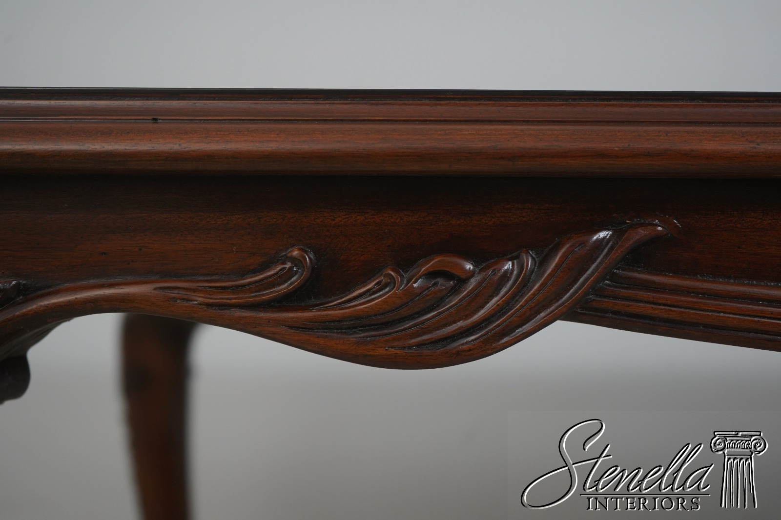 Details: Mahogany Fine Carved Details High Quality Construction Large Impressive Table Nice Inlay Work Throughout Queen Anne Legs & Pad Feet French Style Gorgeous Figural Mahogany Top Scroll Feet Offered @ Fraction Original Retail Cost