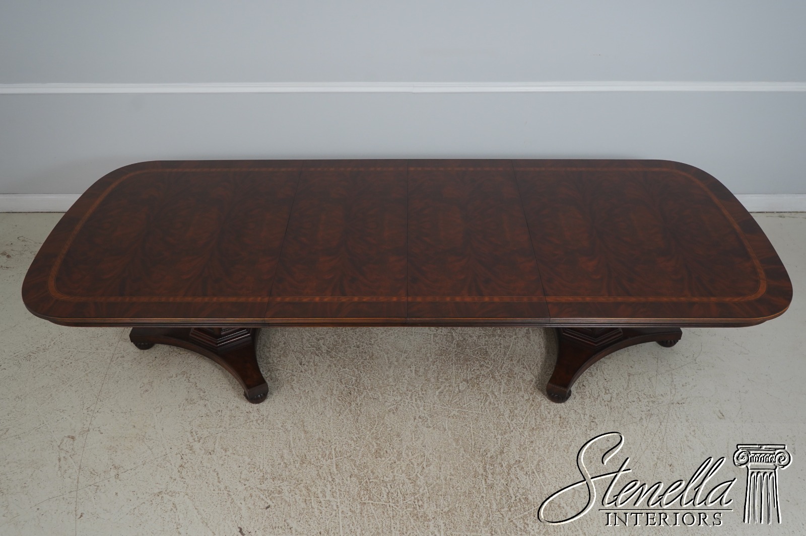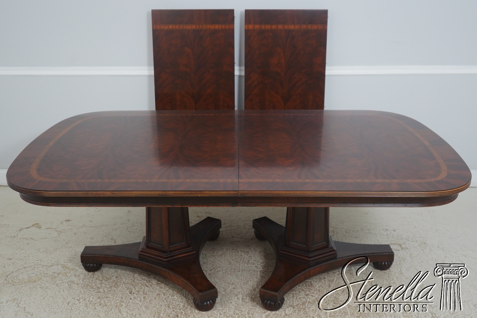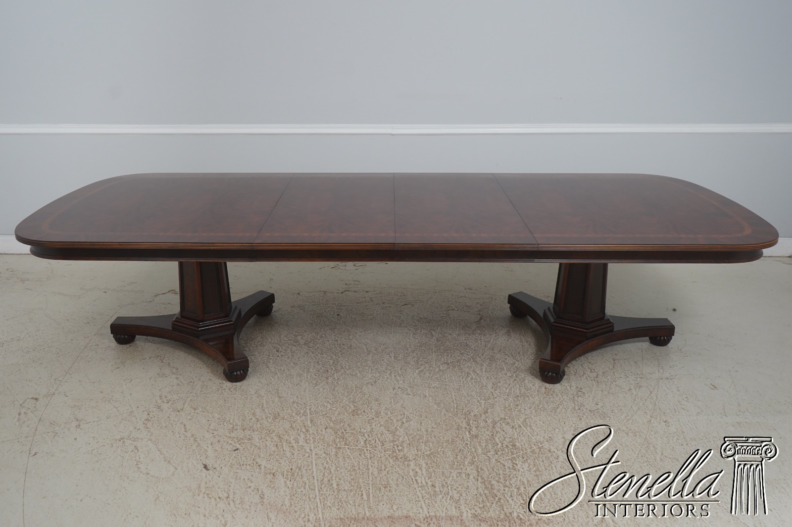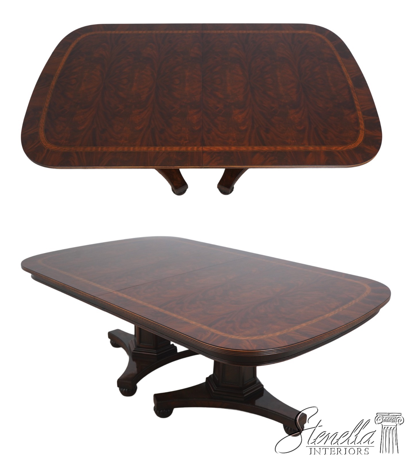 L72448: HENREDON Mahogany Double Pedestal Inlaid Dining Table