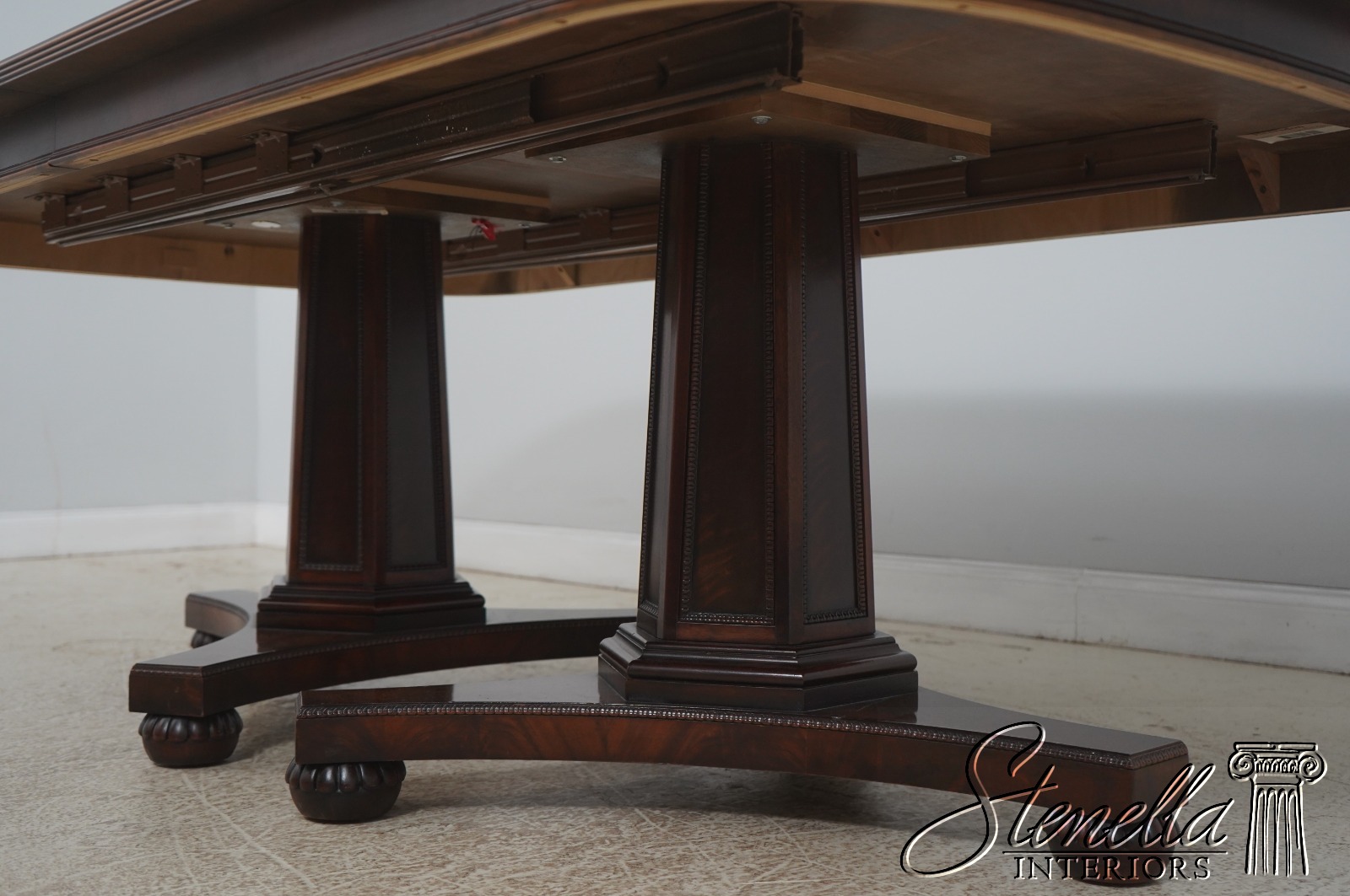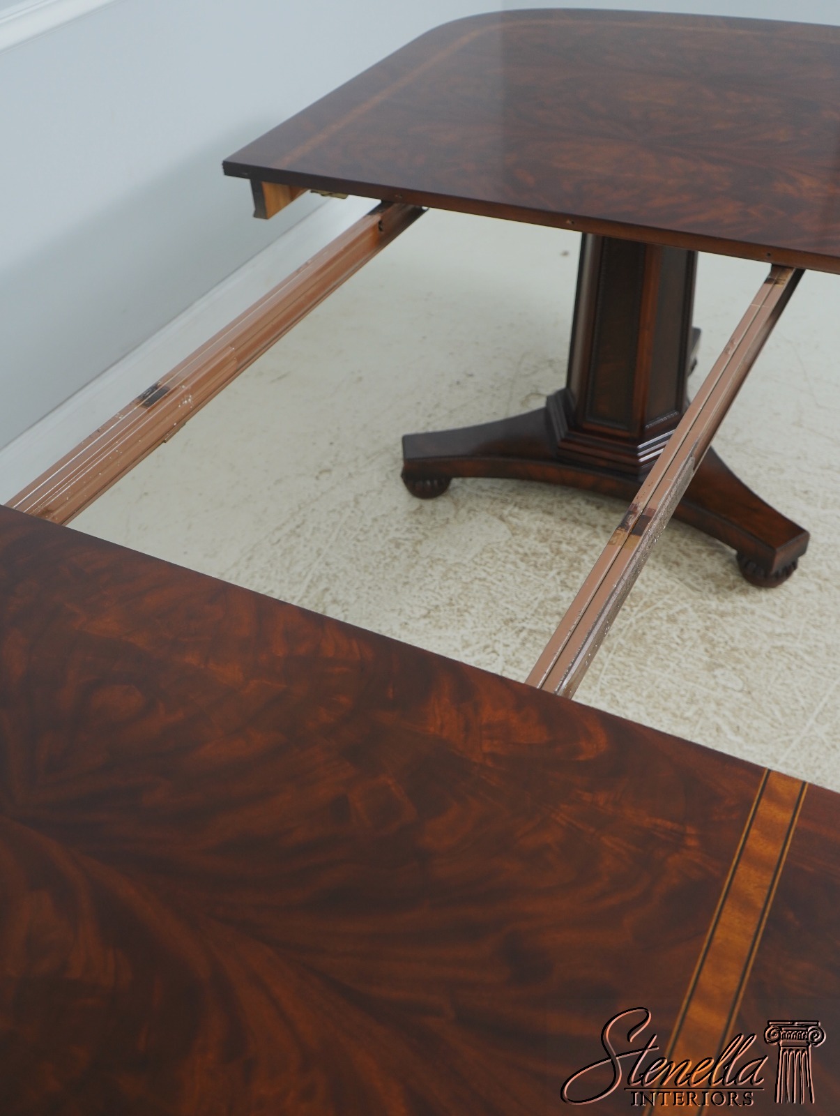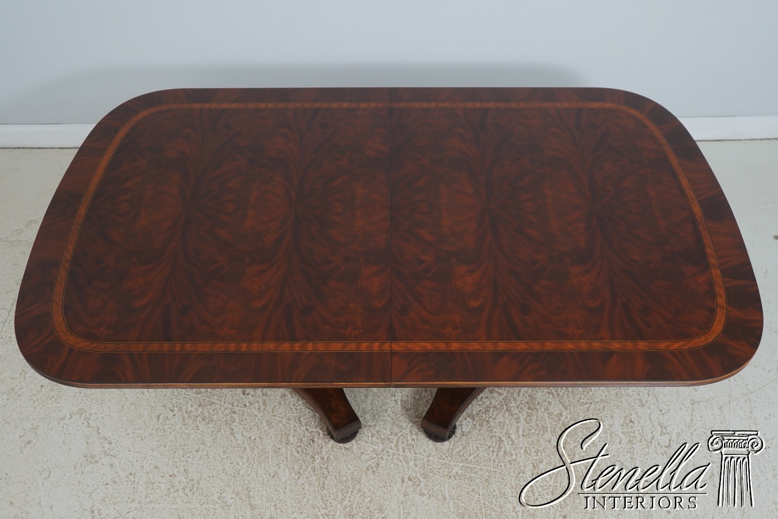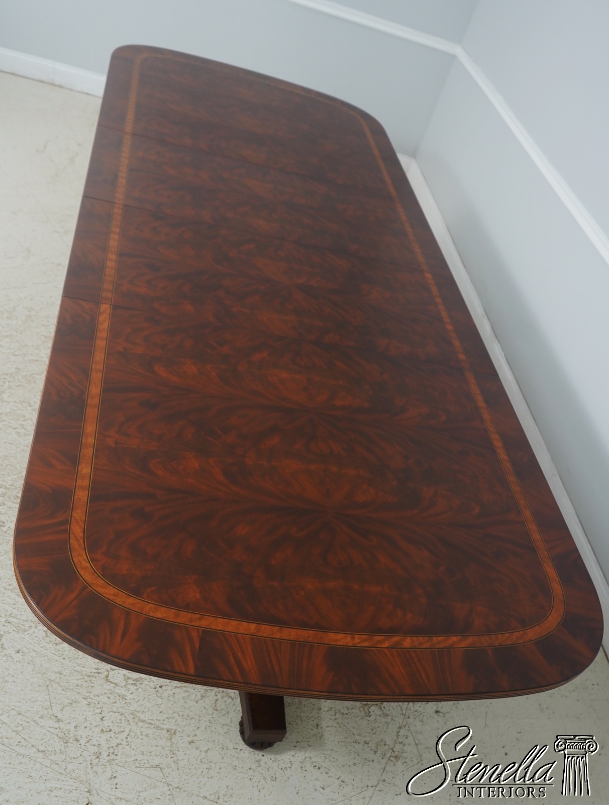 L72448: HENREDON Mahogany Double Pedestal Inlaid Dining Table