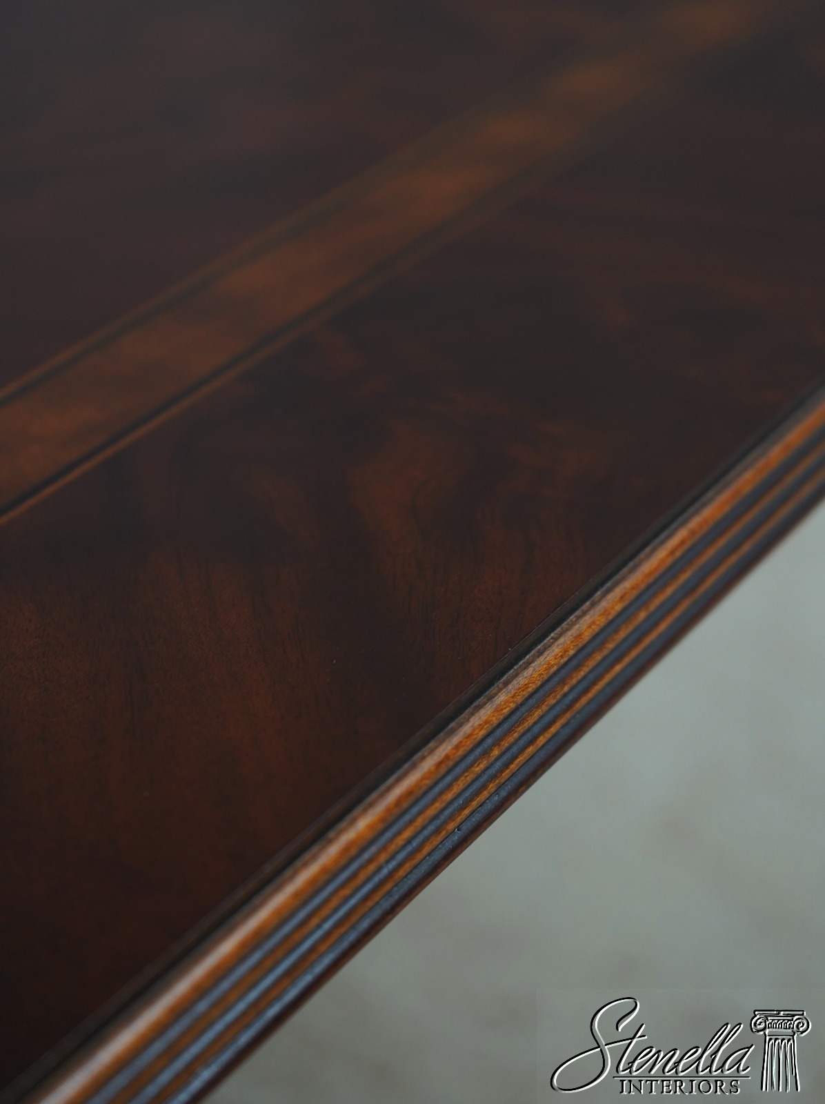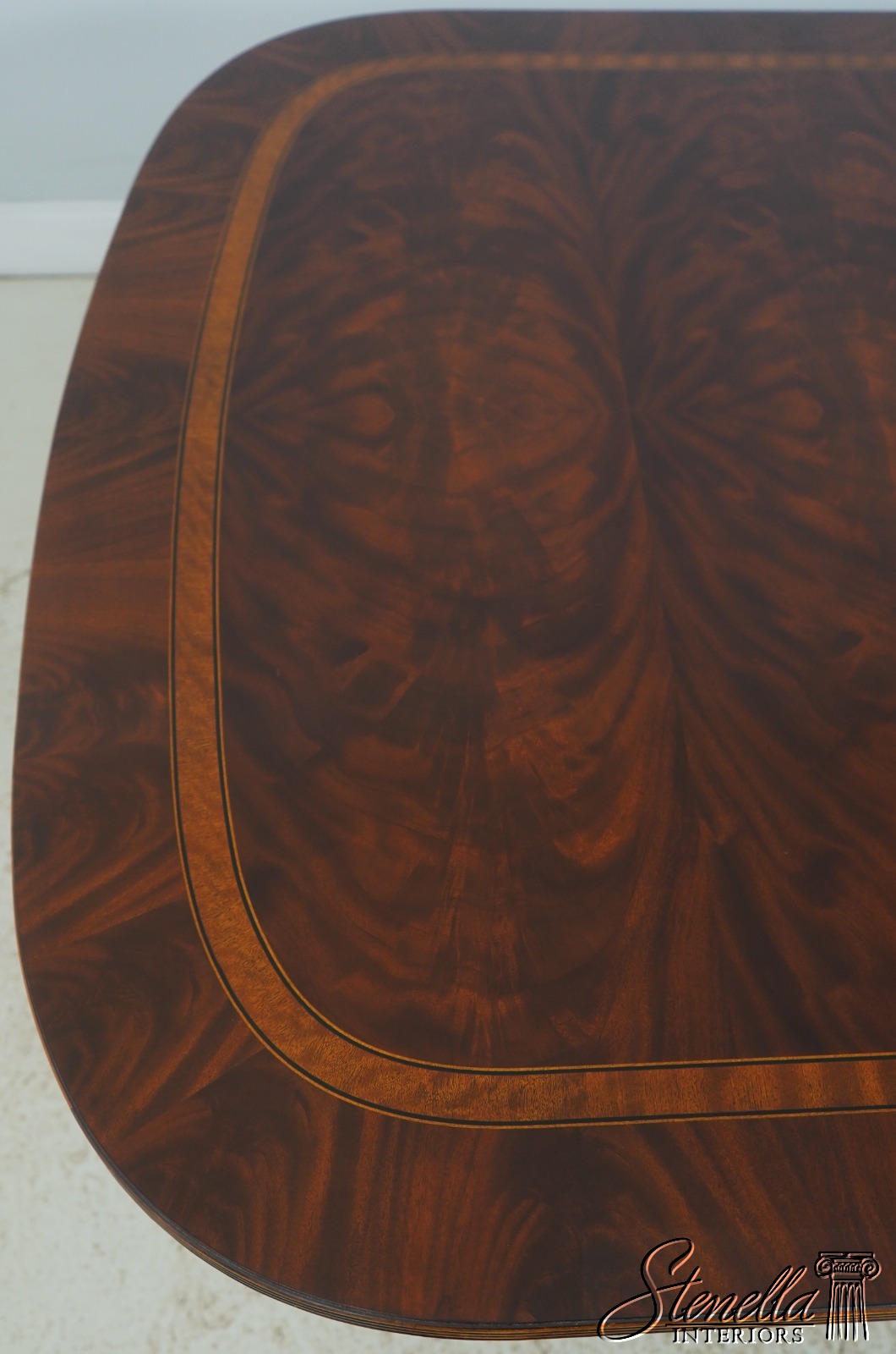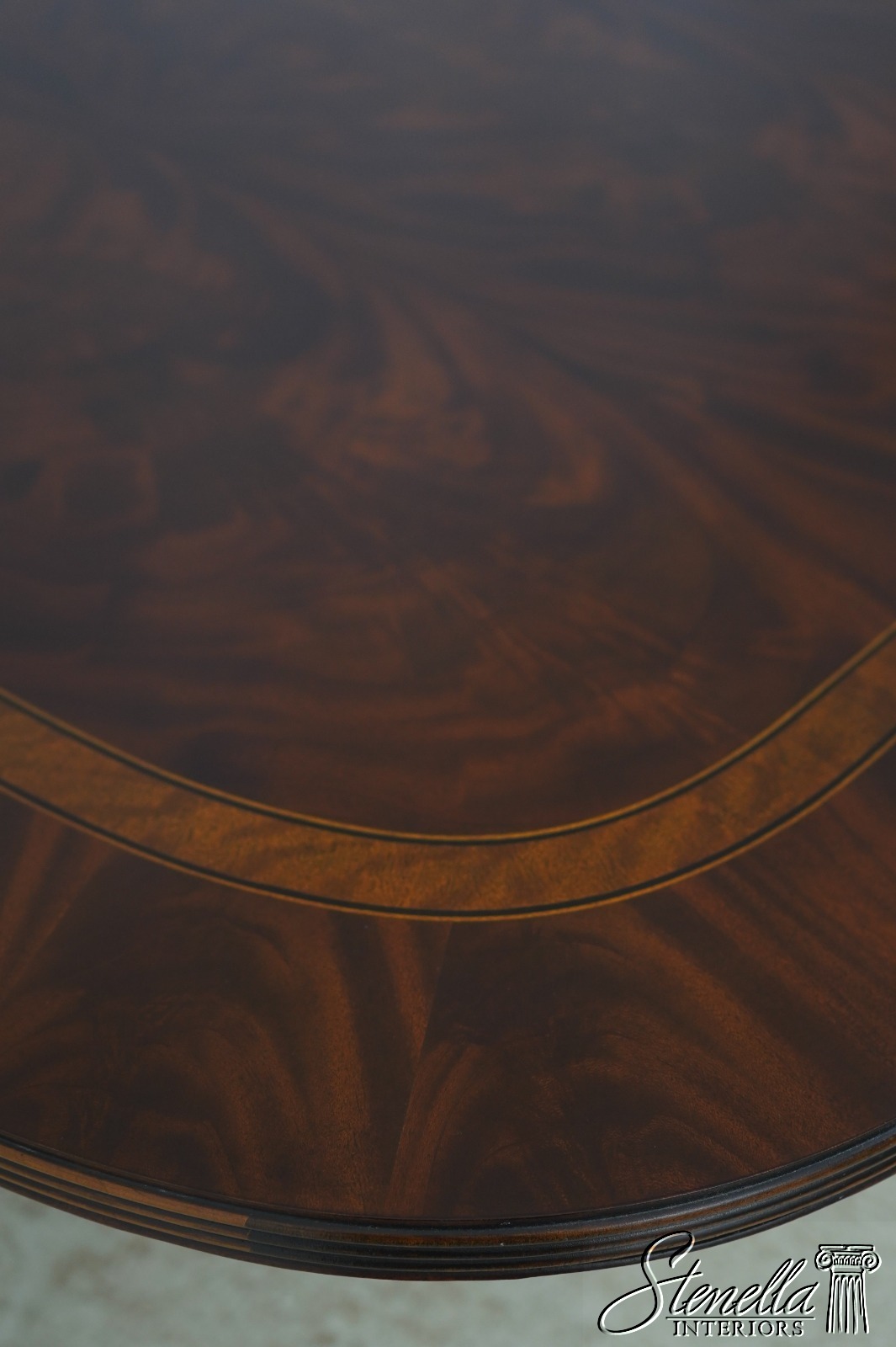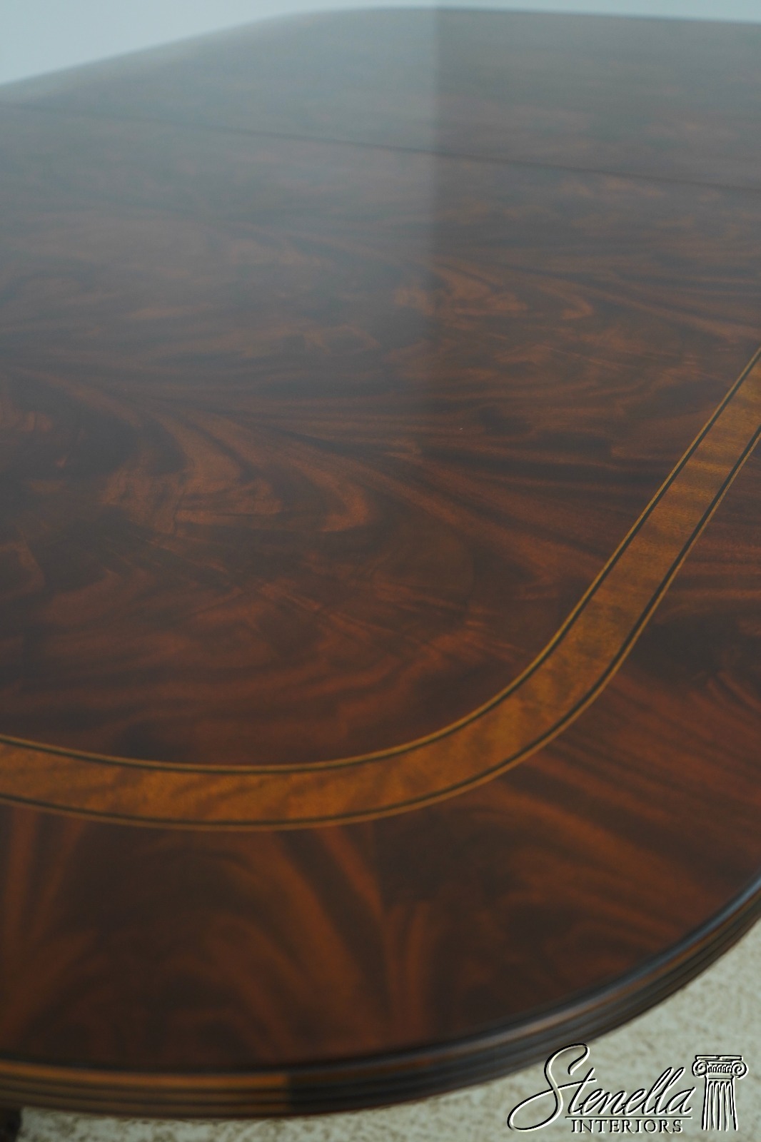 Details: Historic Natchez Collection Flame Mahogany High Quality Construction Large Impressive Table Nice Inlay Work Throughout Rich High Sheen Finish Traditional Style Gorgeous Figural Mahogany Top Fluted Edge Clean Well Cared For Ready For Your Home Offered @ Fraction Original Retail Cost