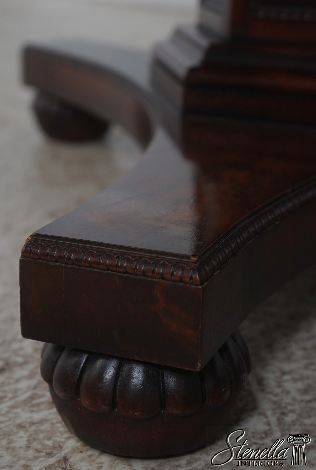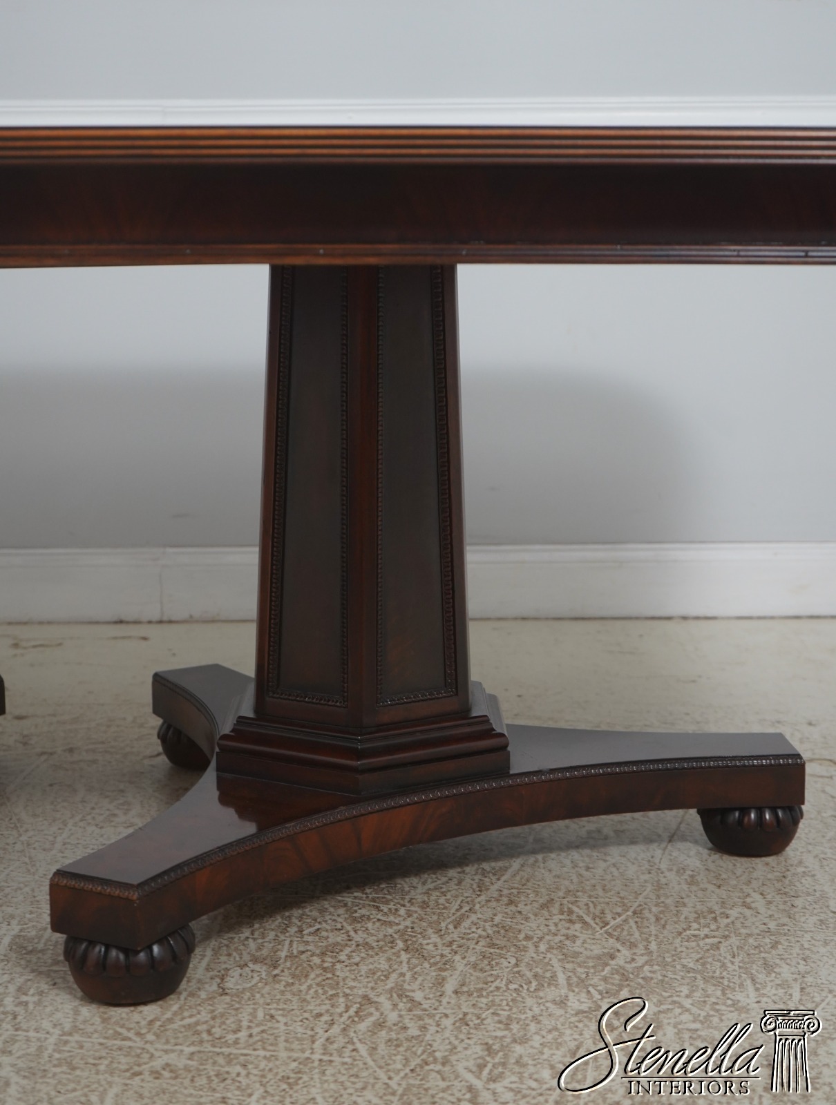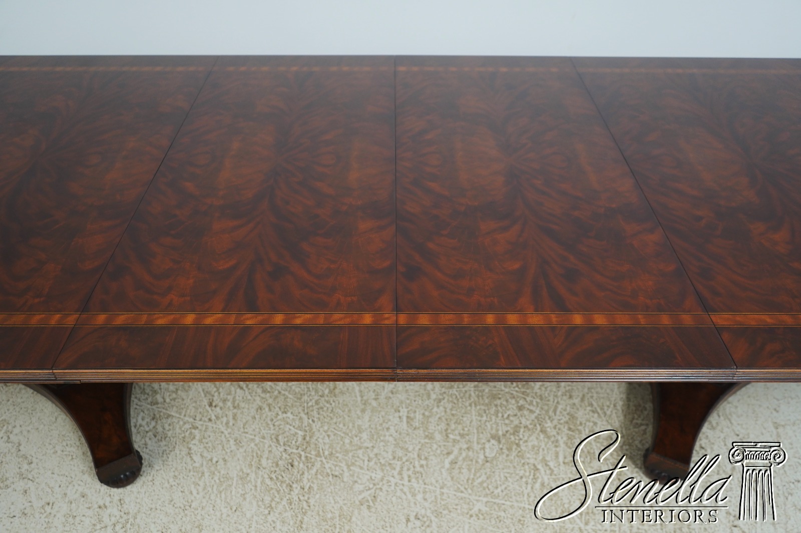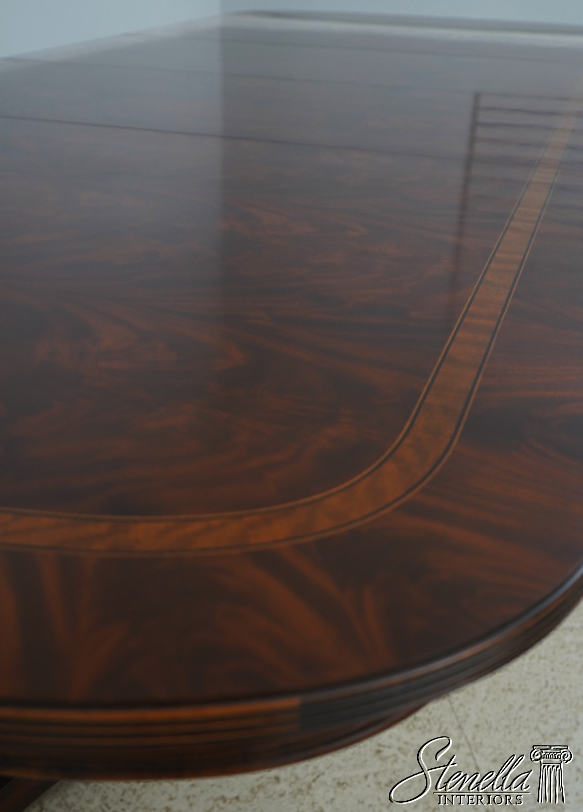 Details: Historic Natchez Collection Flame Mahogany High Quality Construction Large Impressive Table Nice Inlay Work Throughout Rich High Sheen Finish Traditional Style Gorgeous Figural Mahogany Top Fluted Edge Clean Well Cared For Ready For Your Home Offered @ Fraction Original Retail Cost