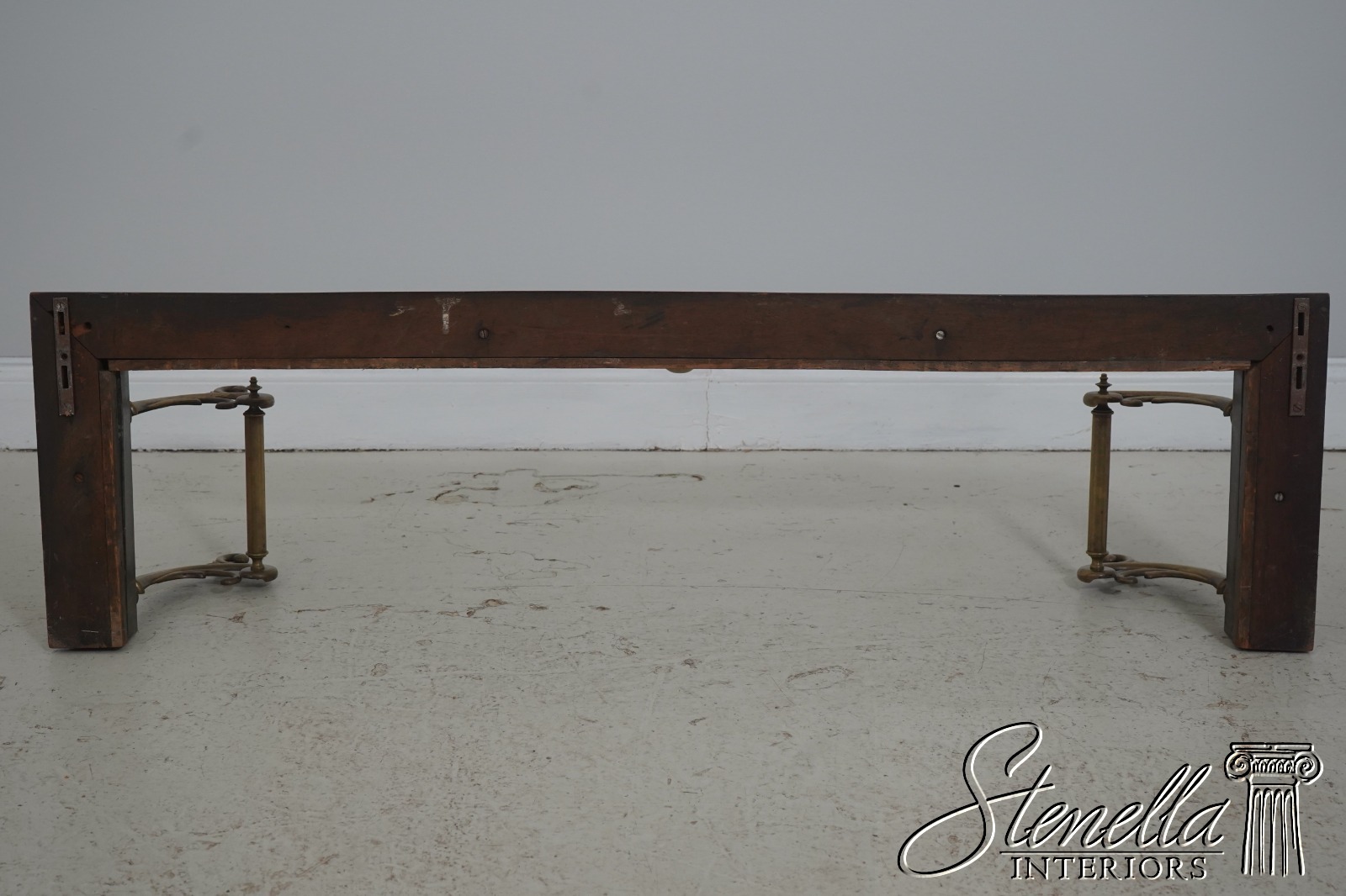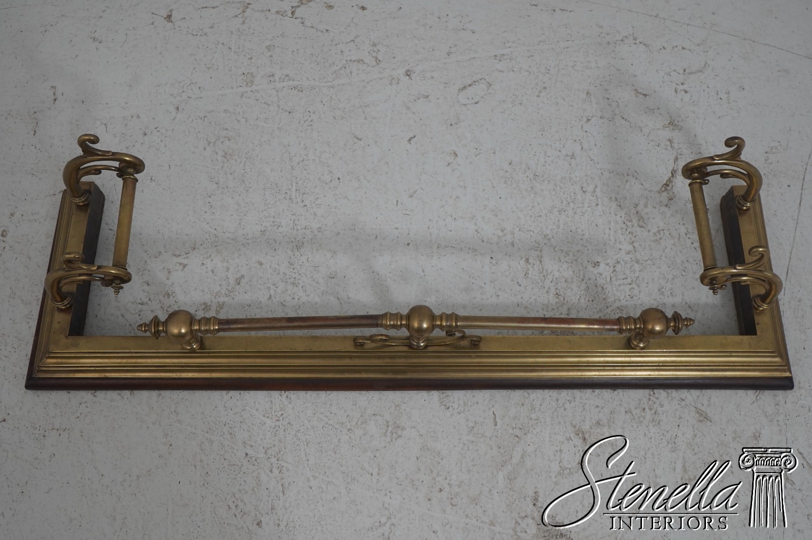 • F71599: Antique English Brass Fireplace Fender On Wood Base