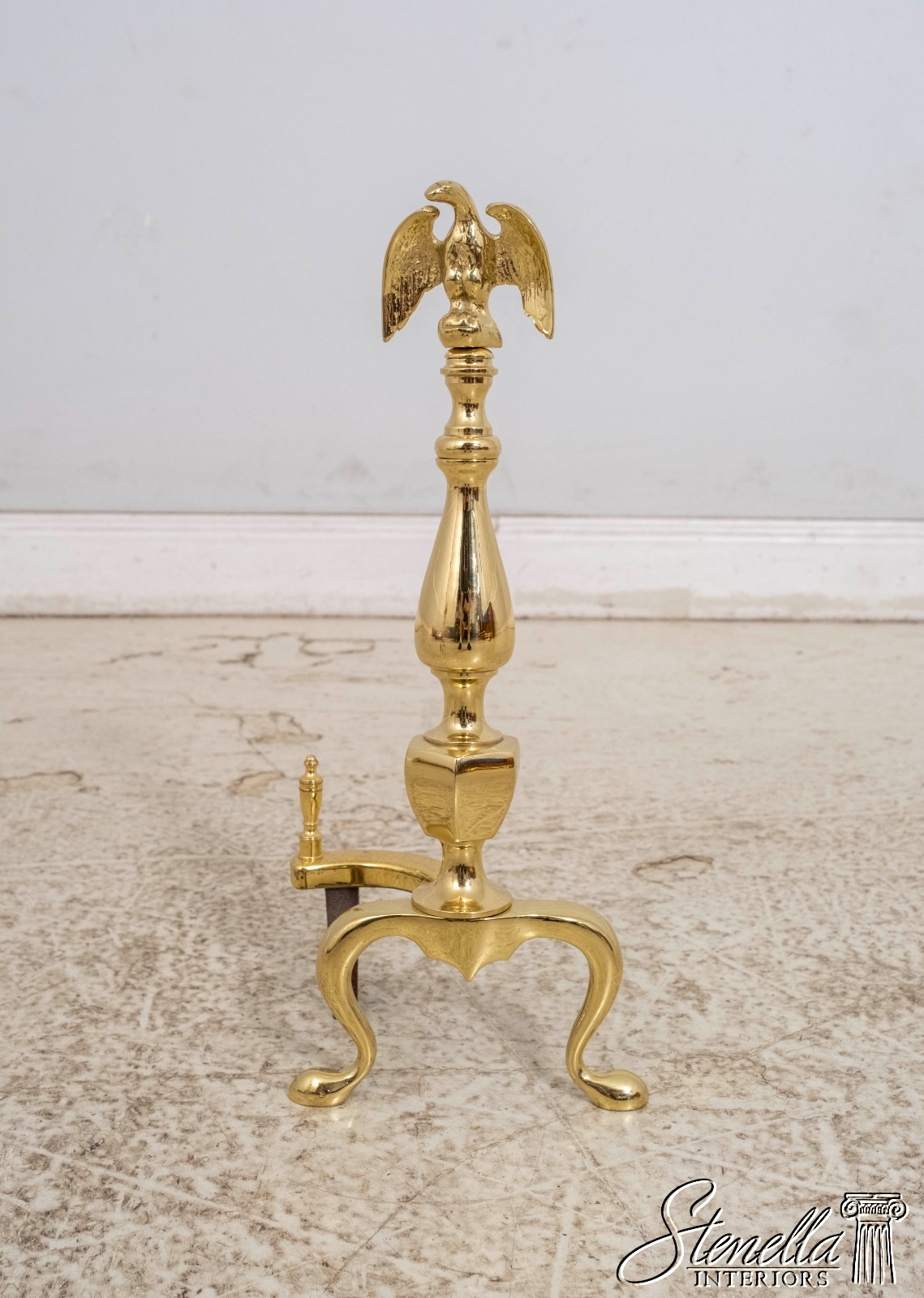 F70365: Pair Of Brass Eagle Top Federal Style Fireplace Andirons