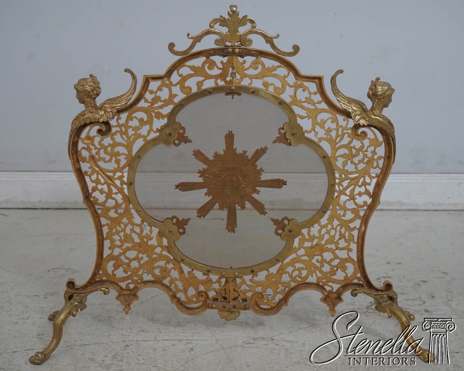 L69464: French Bronze Fireplace Screen w. Lady Face Mounts