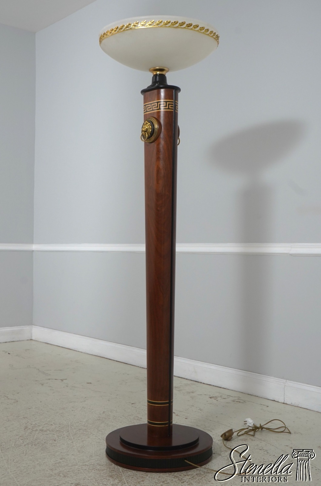 71922: Italian VERSACE Inlaid Mahogany Torchiere Floor Lamp